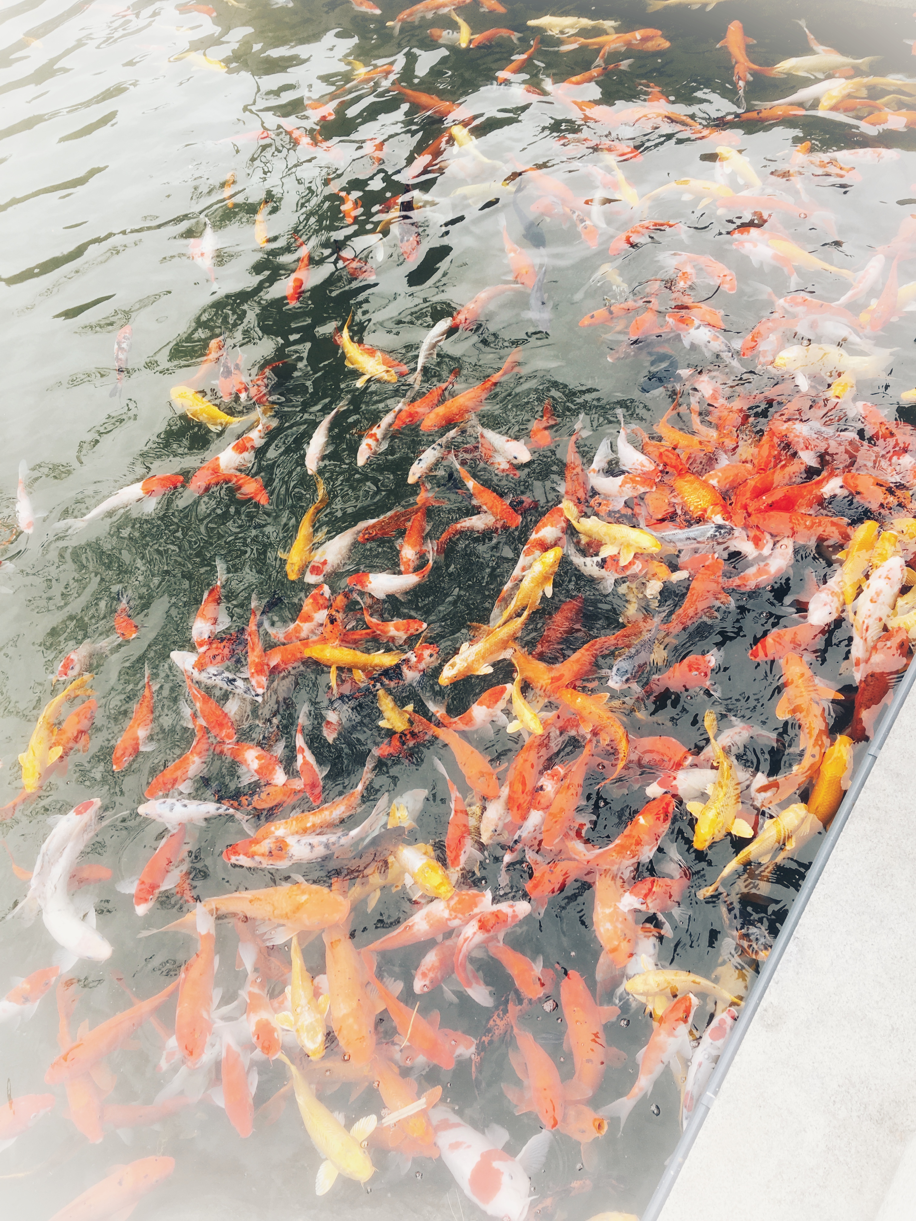 院子里的鱼估计是被喂惯了,哪里人多就往哪里跑