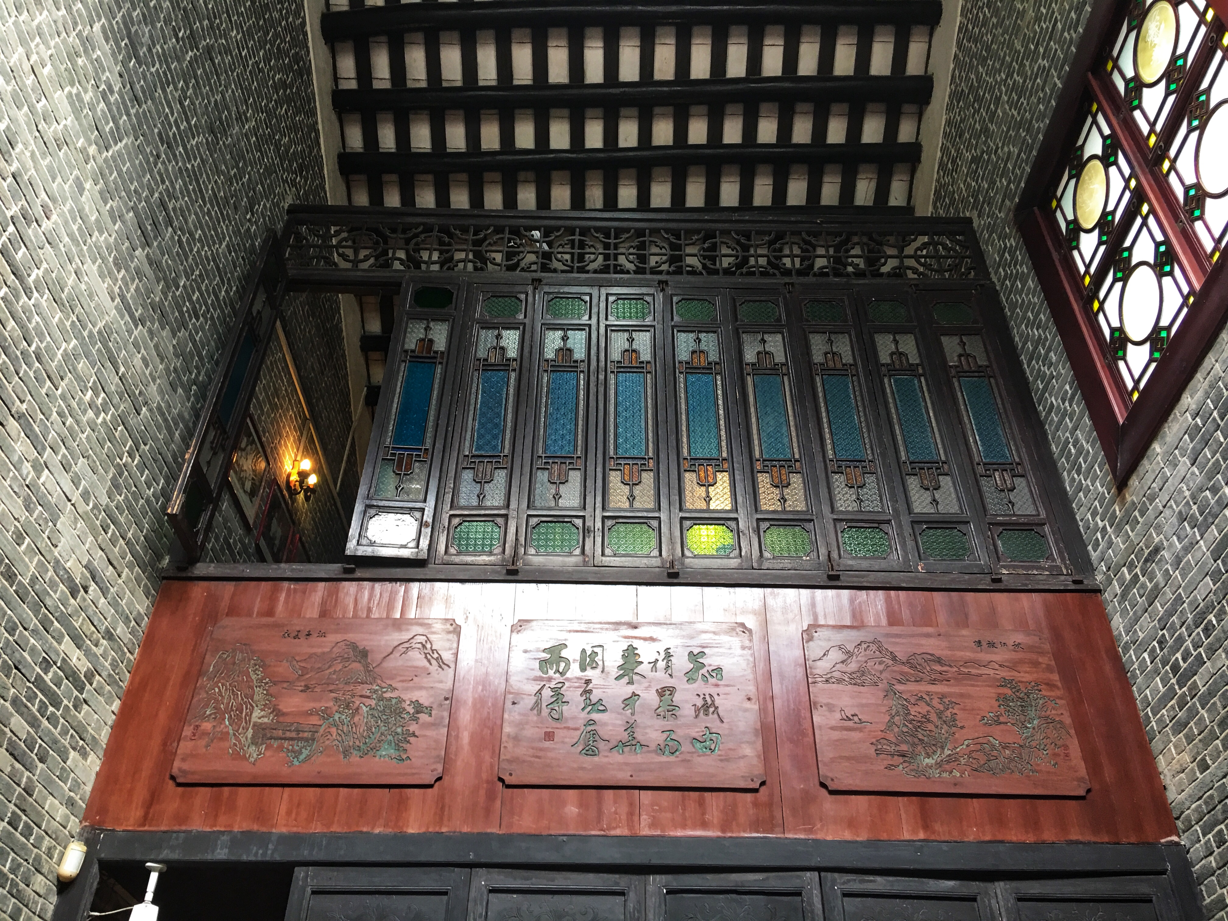三重门最外一重是脚门,中间的叫趟栊,木头的条数只用单数,因为双数的双字在粤语里和“丧”同音。木头越多越大代表这户人家就越有钱。趟栊之后才是真正的大门。每一重都有独特的作用和意义,听地胆领队讲的真是有意思极了。