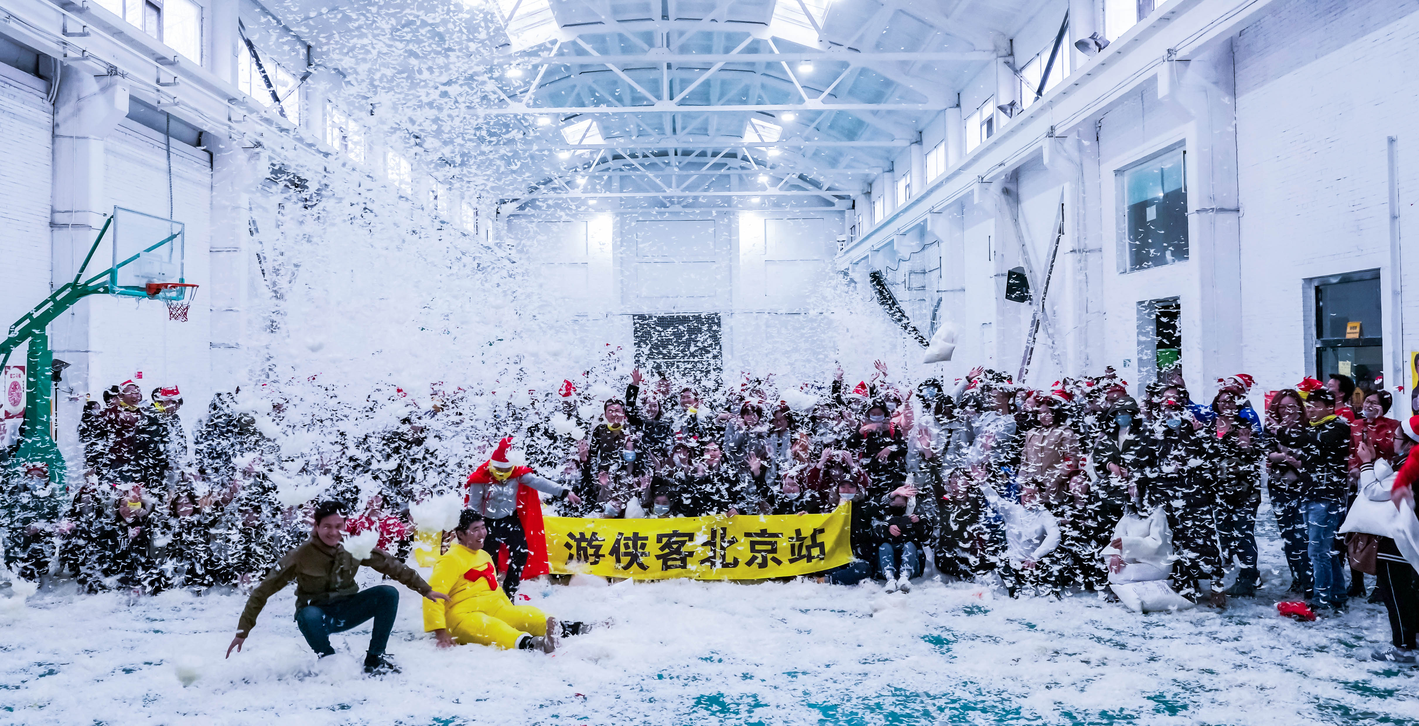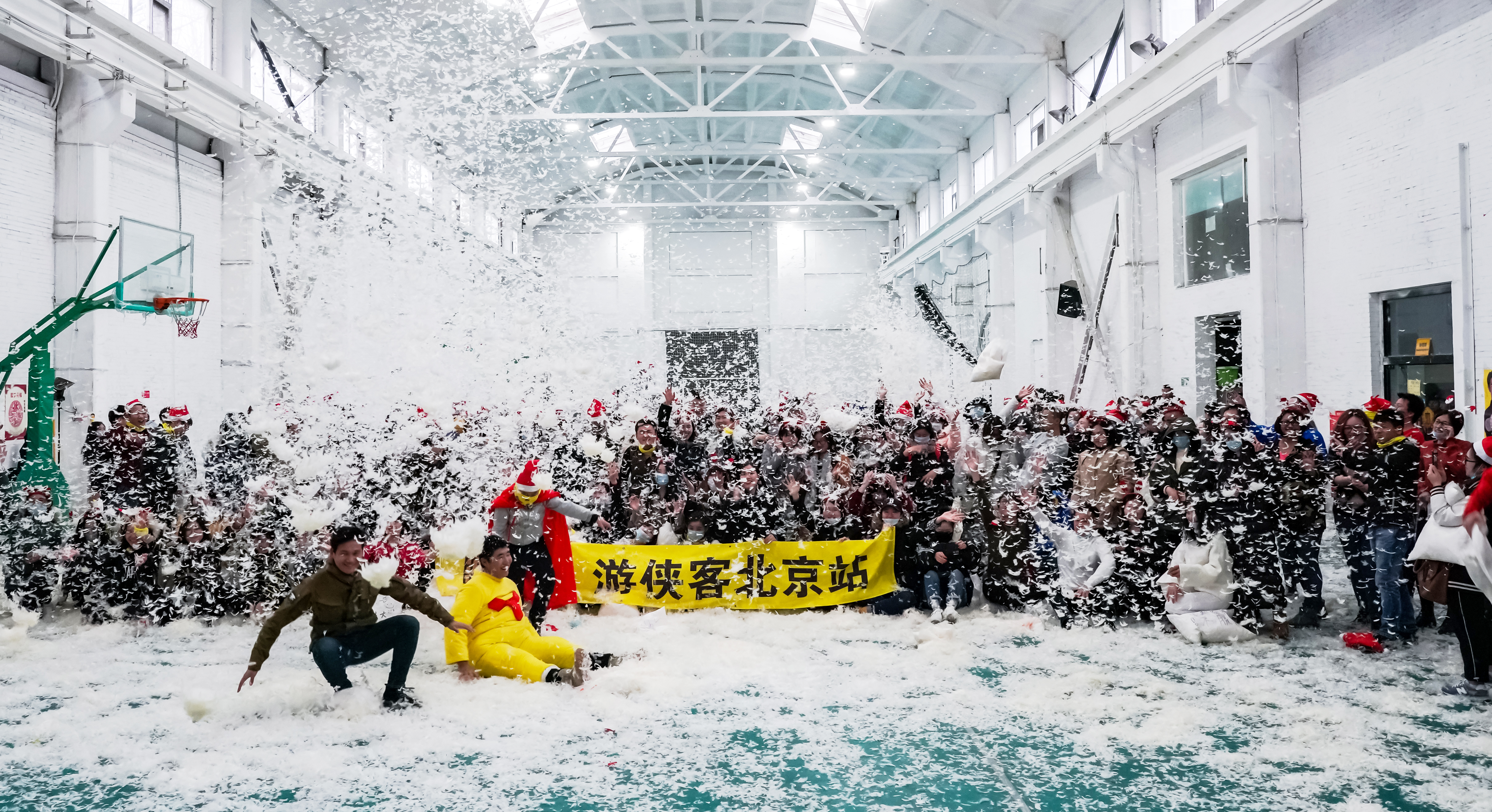 故事讲完了,这场事件幕后的策划者们要出现了,就是他们--游侠客北京站工作人员和志愿者小伙伴们,为了给帝都的人民营造一场2017年最后的一场大雪,他们早早地来到了现场,布置场地,准备物料,在和大家狂欢之后,还要打扫战场,清理数以万计的羽毛,羽毛在扫把的划过下,又飞舞起来,不想离开这片场地,进入垃圾袋里,不忍说再见。一年一次的枕头大战就这样在工作人员的辛勤付出下悄悄落幕了,帝都的这场鹅毛大雪飘在了每个人的心里,暖暖的,融化成了快乐的情者