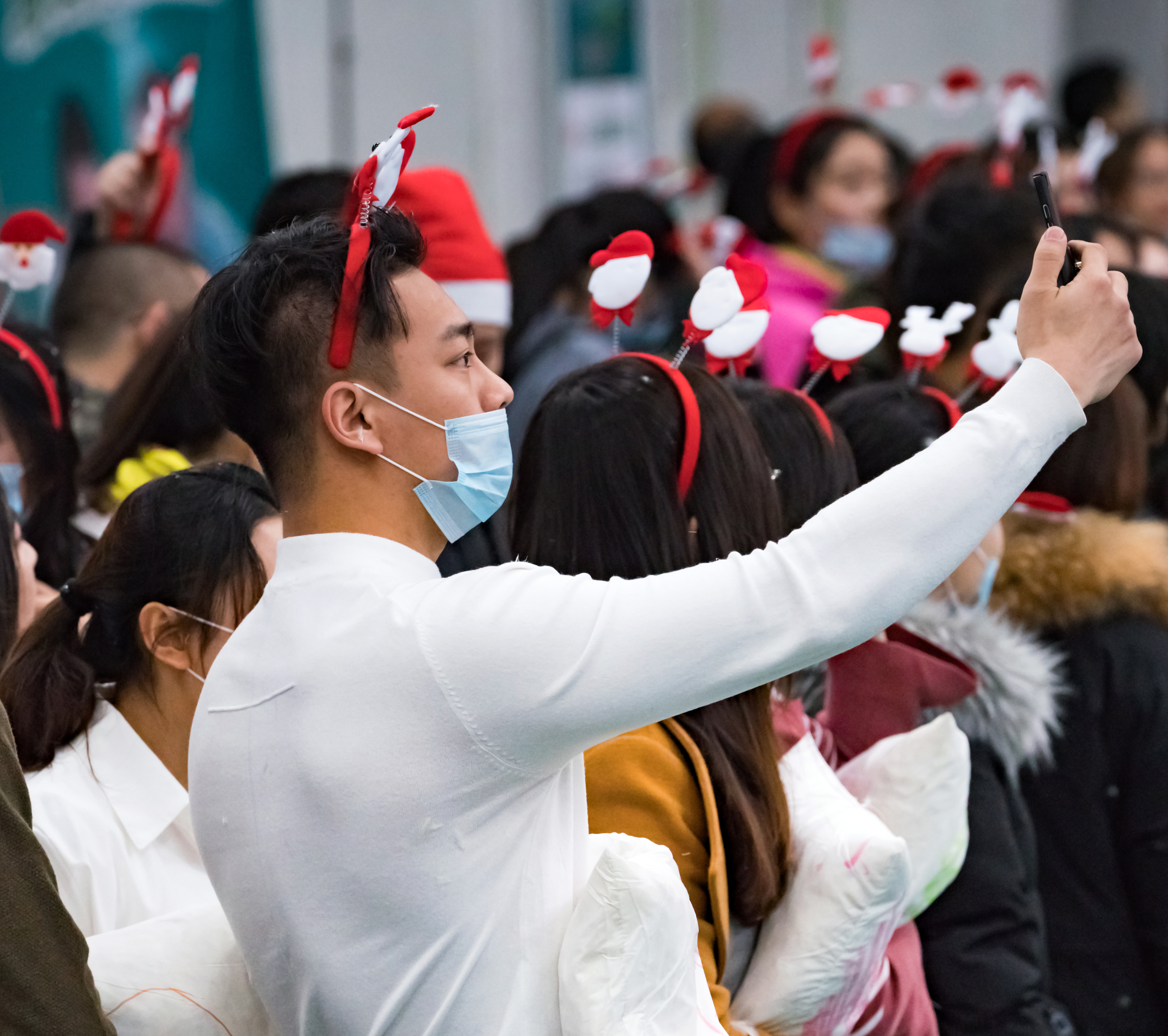 据说这次事件是由游侠客北京站精心策划的,14:30分左右来自帝都各个区的游侠陆续来到事发现场,有年轻的,有年长的,有 宅男、土豪、高帅富,也有萝莉、女神、白富美、小清新,他们入场后,身穿黄色马甲的人员组织、有纪律的依次给他们分发了枕头、圣诞帽、圣诞头饰、画笔,还有魔术头巾,具体画面呈现如下图