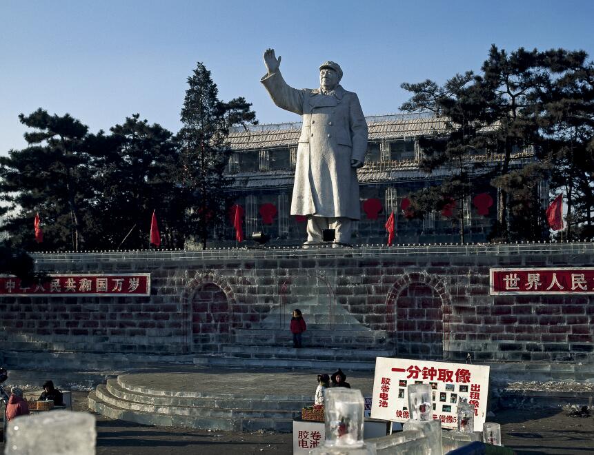 东北-吉林长春胜利公园的毛泽东塑像周边建起冰灯-2003