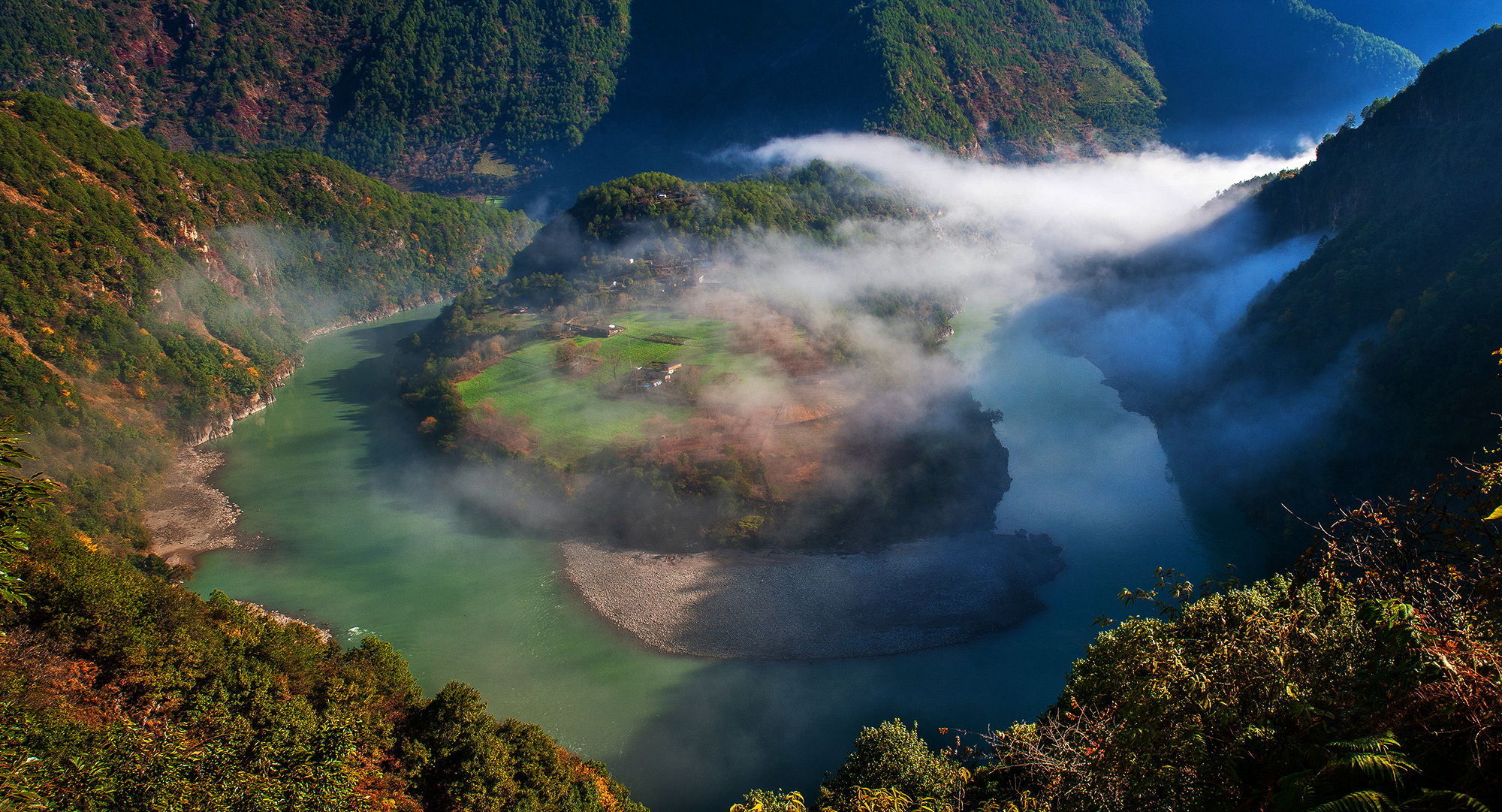 在中国大部分地方已进入隆冬季节,万物凋零之际,在西南边陲的云南腾冲,金色的秋意正上演着浓浓的一幕:金光灿灿的银杏林浓烈似火,吹落黄花满地金;数百公里外的无量山谷中,盎然的春意却已悄然到来,粉红娇柔的樱花尽相绽放,千株万片绕林垂。在腾冲和无量山的西侧,横断山区三江并流地带,有着举世闻名的怒江大峡谷,峡谷全长约600公里,其中云南段300多公里。2017年12月,我带领游侠客的22位朋友,从大理出发,在领略腾冲和无量山的金叶粉樱之际,走进这条神秘的大峡谷,感受它独特的民俗风情,品味它幽静深邃的历史。