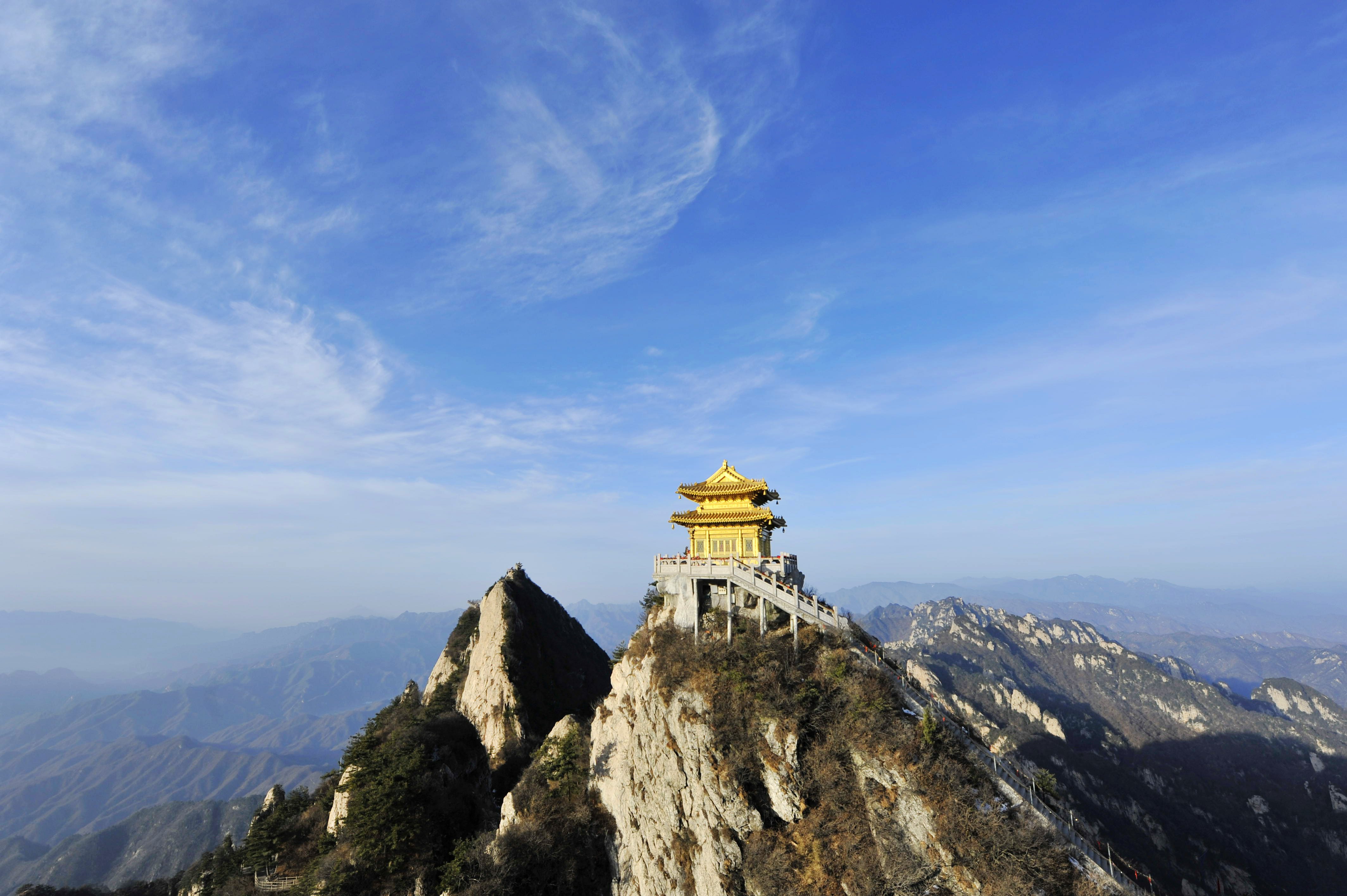 老君山,原名景室山,位于河南省洛阳市栾川县城东南3千米处,是秦岭余脉八百里伏牛山脉的主峰,海拔2297米。西周时期,因“守藏室史”李耳(著名的“老子”)到此归隐修炼,被道教尊为太上老君,唐太宗易名为“老君山”,沿袭至今,成为道教主流全真派圣地。
