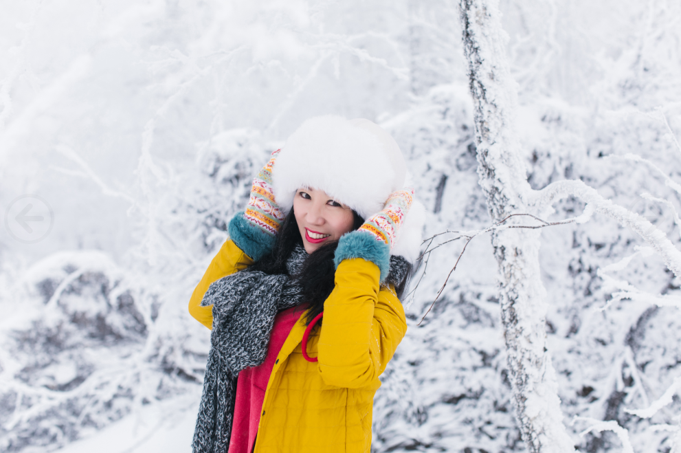 04.雪景背景单一,除了彩色的服饰,借用一些小道具,也有肖想不到的效果