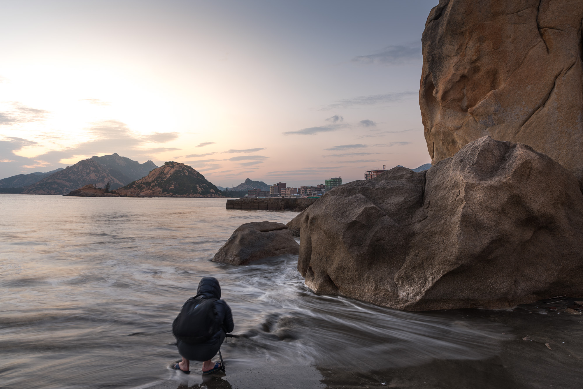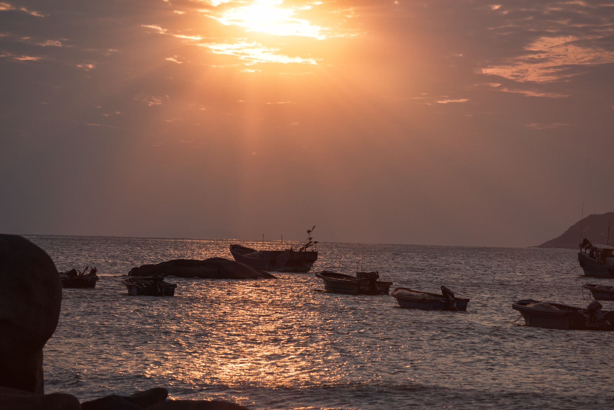海滩有许多巨大的礁石,在4、5点的太阳的照耀下金光灿灿,十分具有质感。