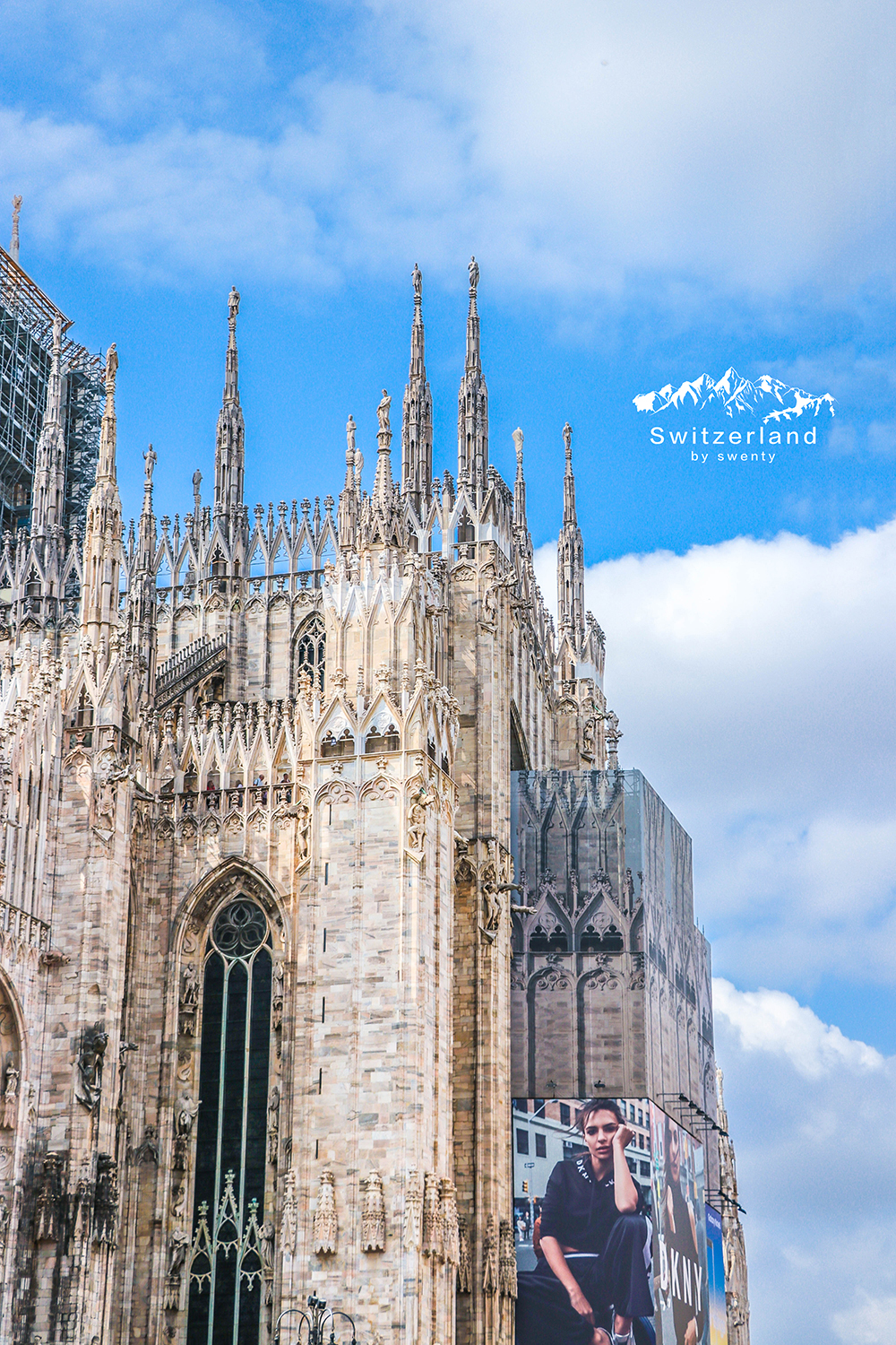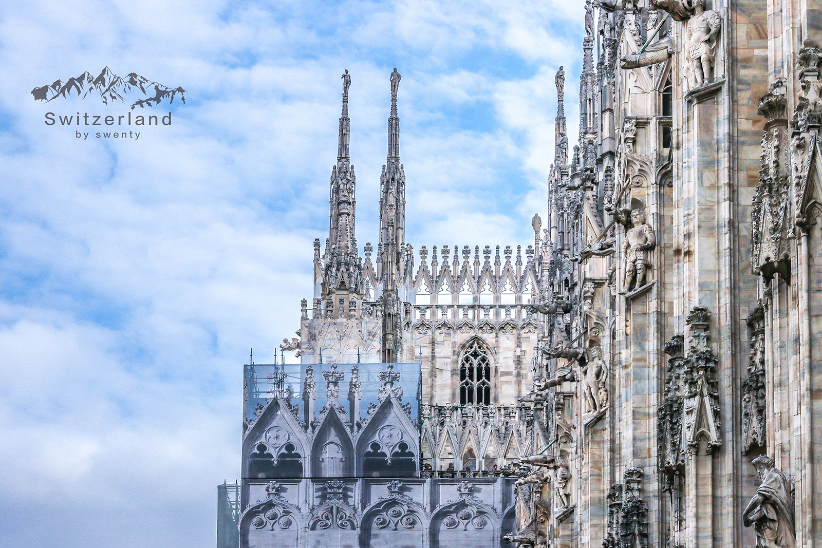 玫瑰窗,尖塔,飞扶壁,眼前是米兰大教堂里经典的哥特式建筑;偶尔广场上传来隐约飘荡的歌声,