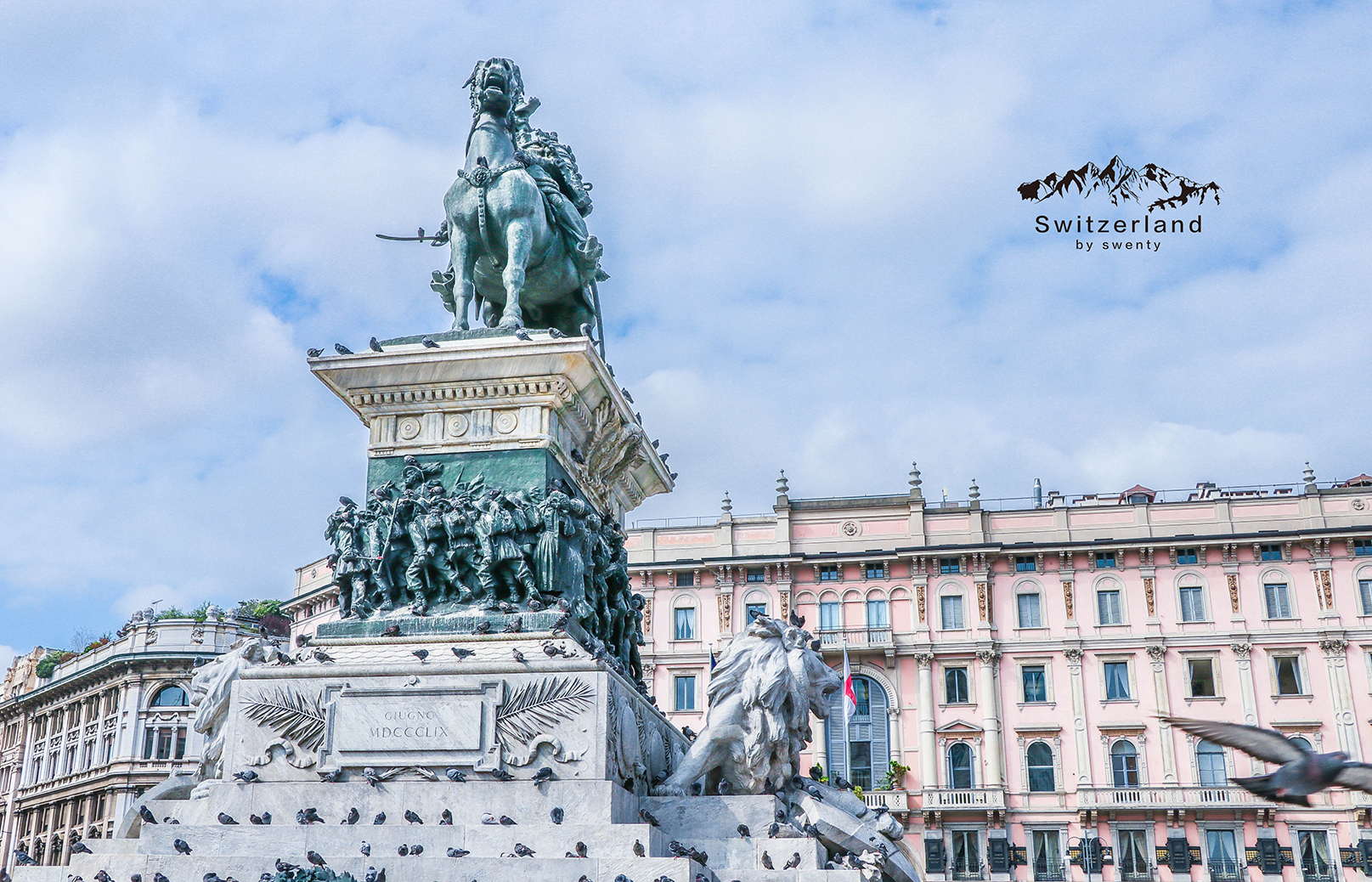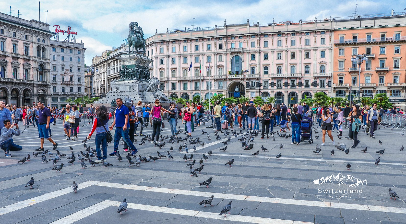 而米兰教堂前的广场,却更有意式风情~这里是米兰市的中心,广场中央是意大利王国第一个国王维多利奥·埃玛努埃尔二世的骑马铜像,再现了圣马尔帝诺战役中骑马冲锋的场景;在川流的人潮中,守护着眼前的米兰大教堂。