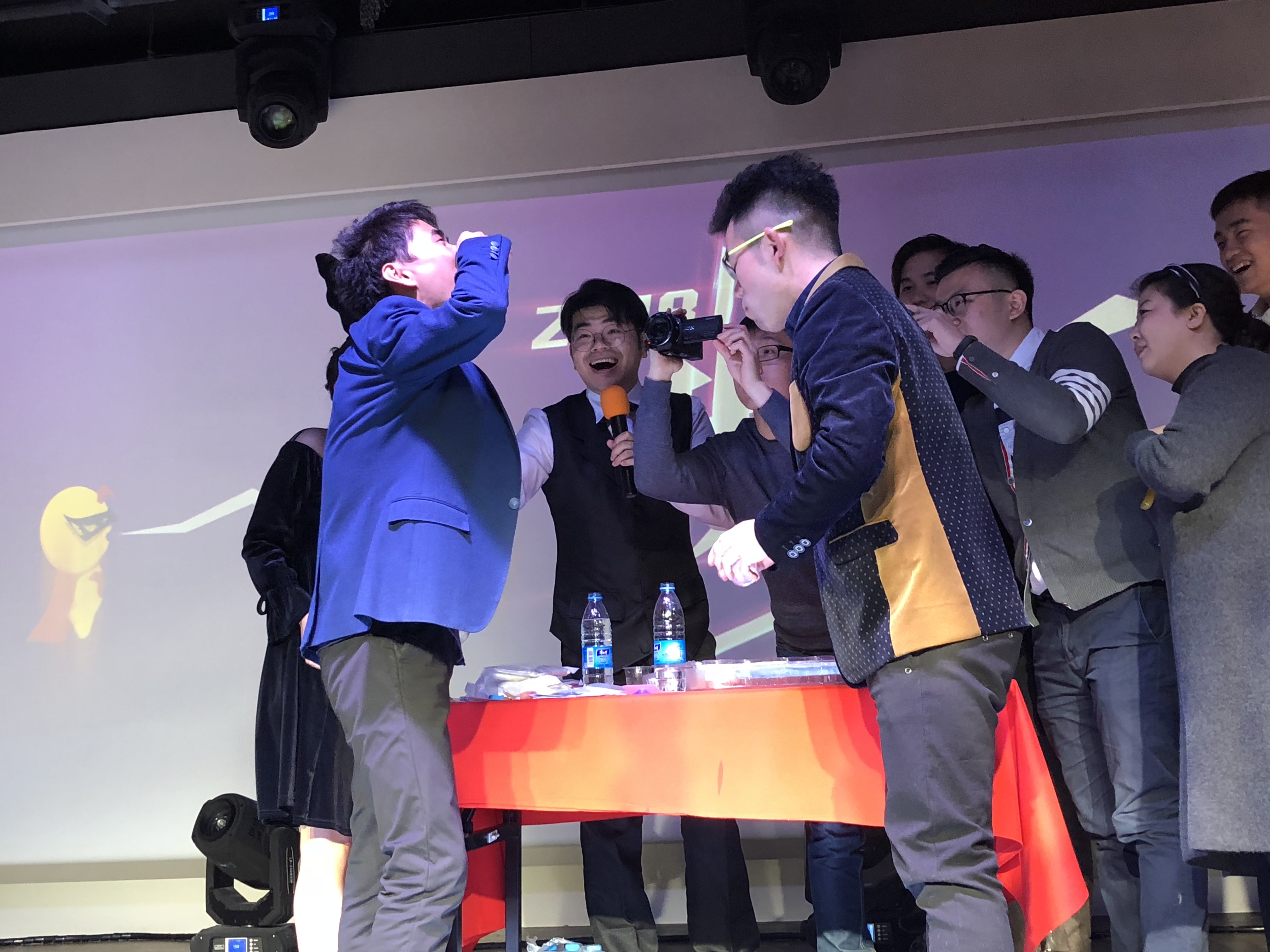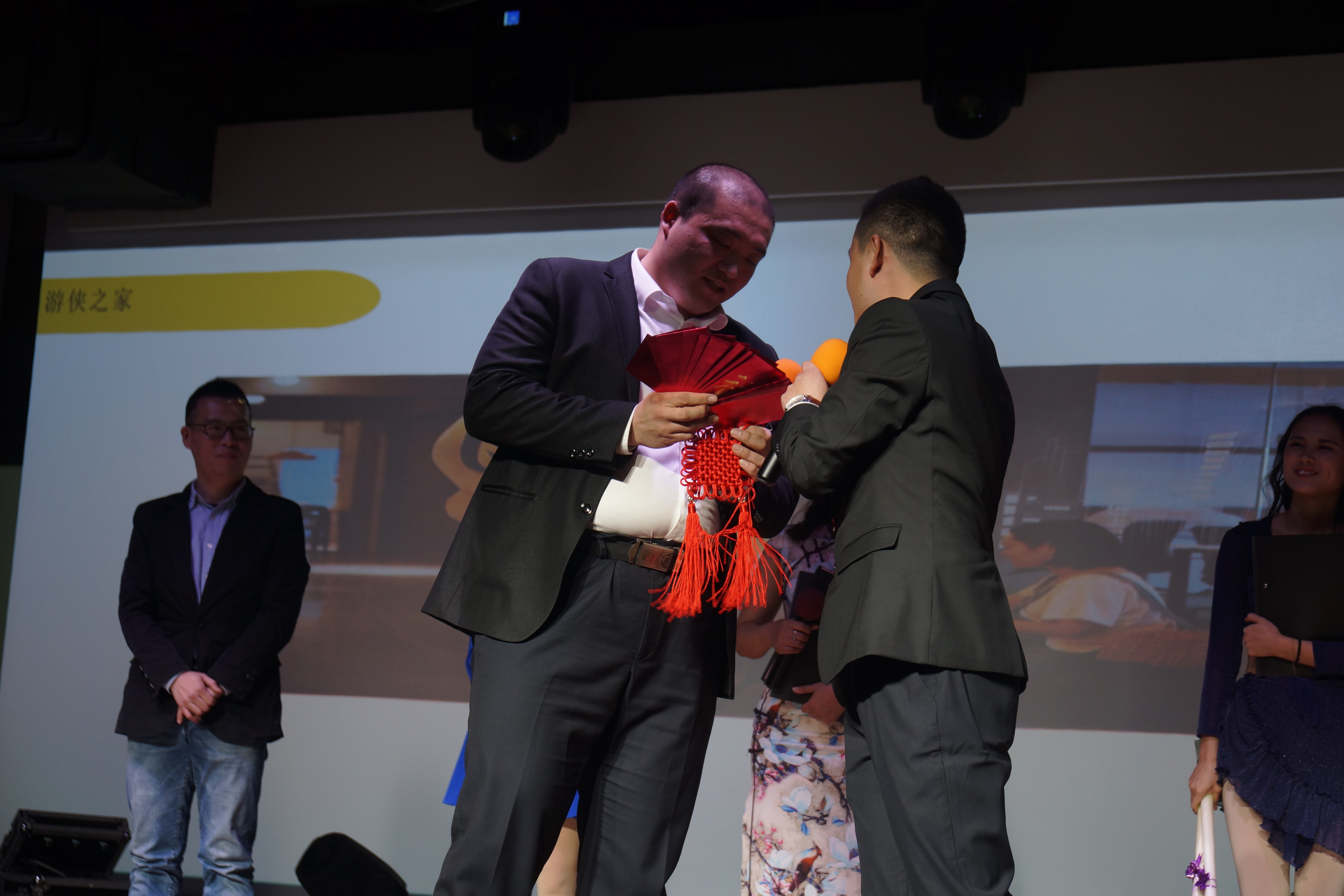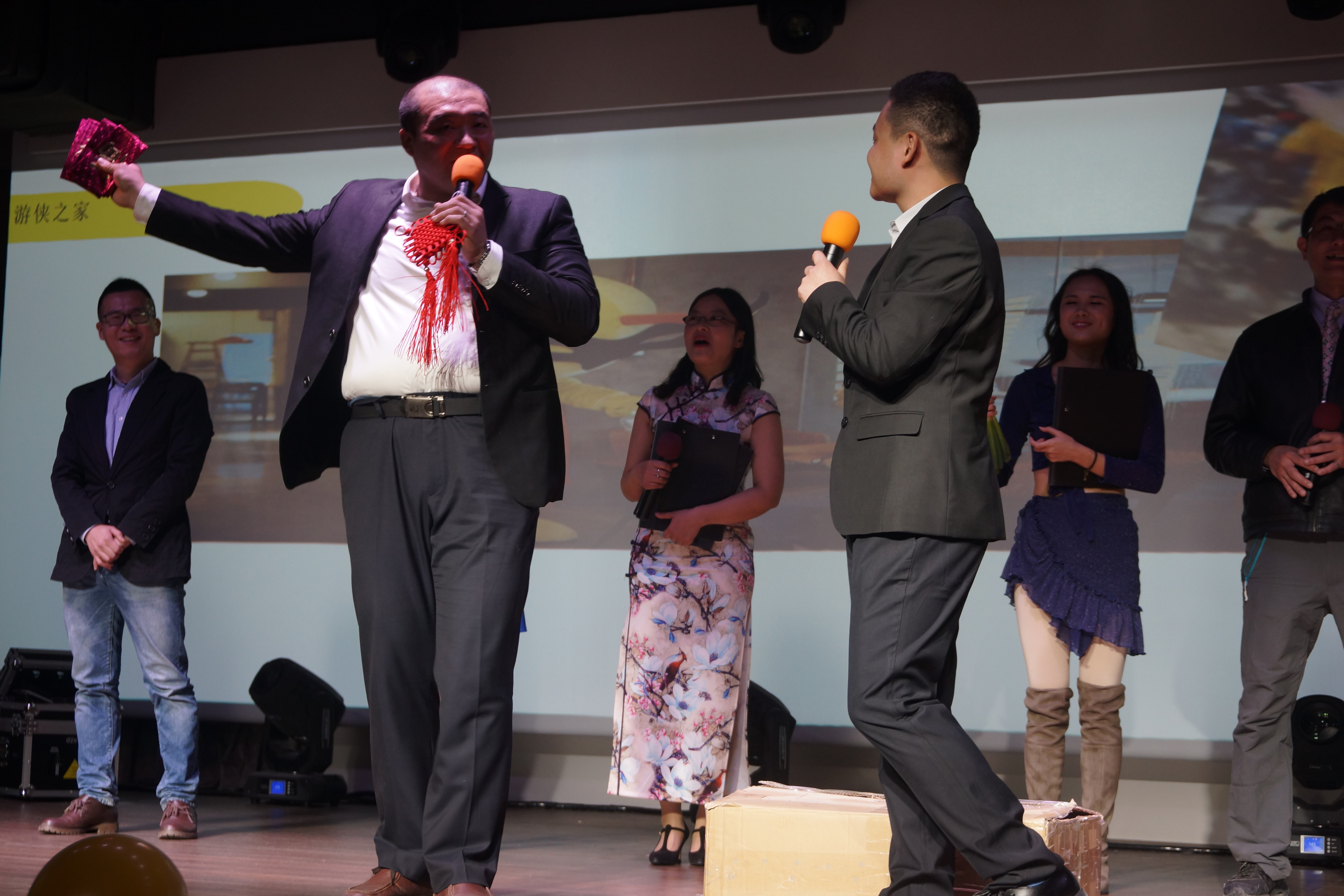 哈哈,我们的游大侠也耐不住寂寞了,上台抽奖助兴。