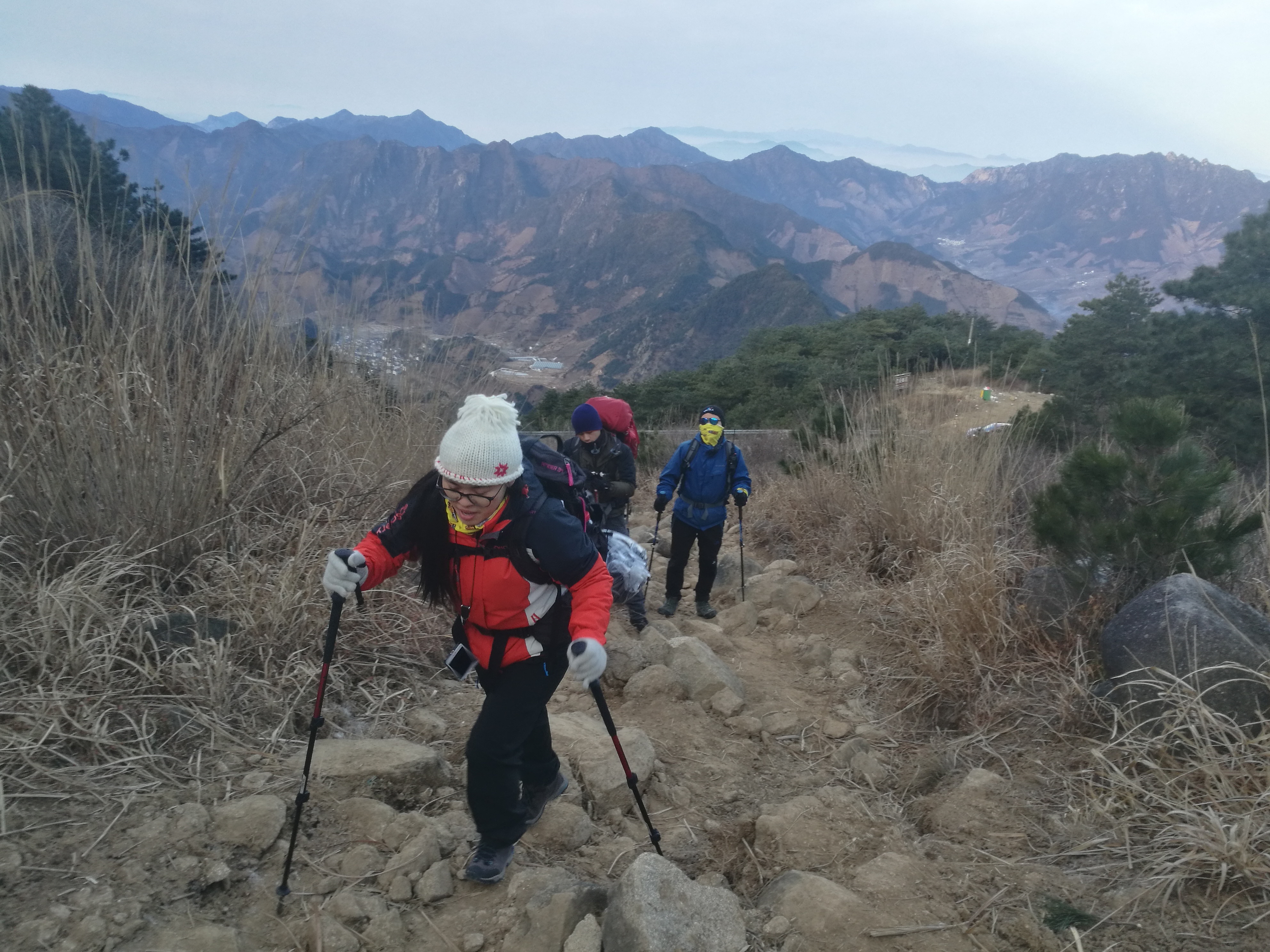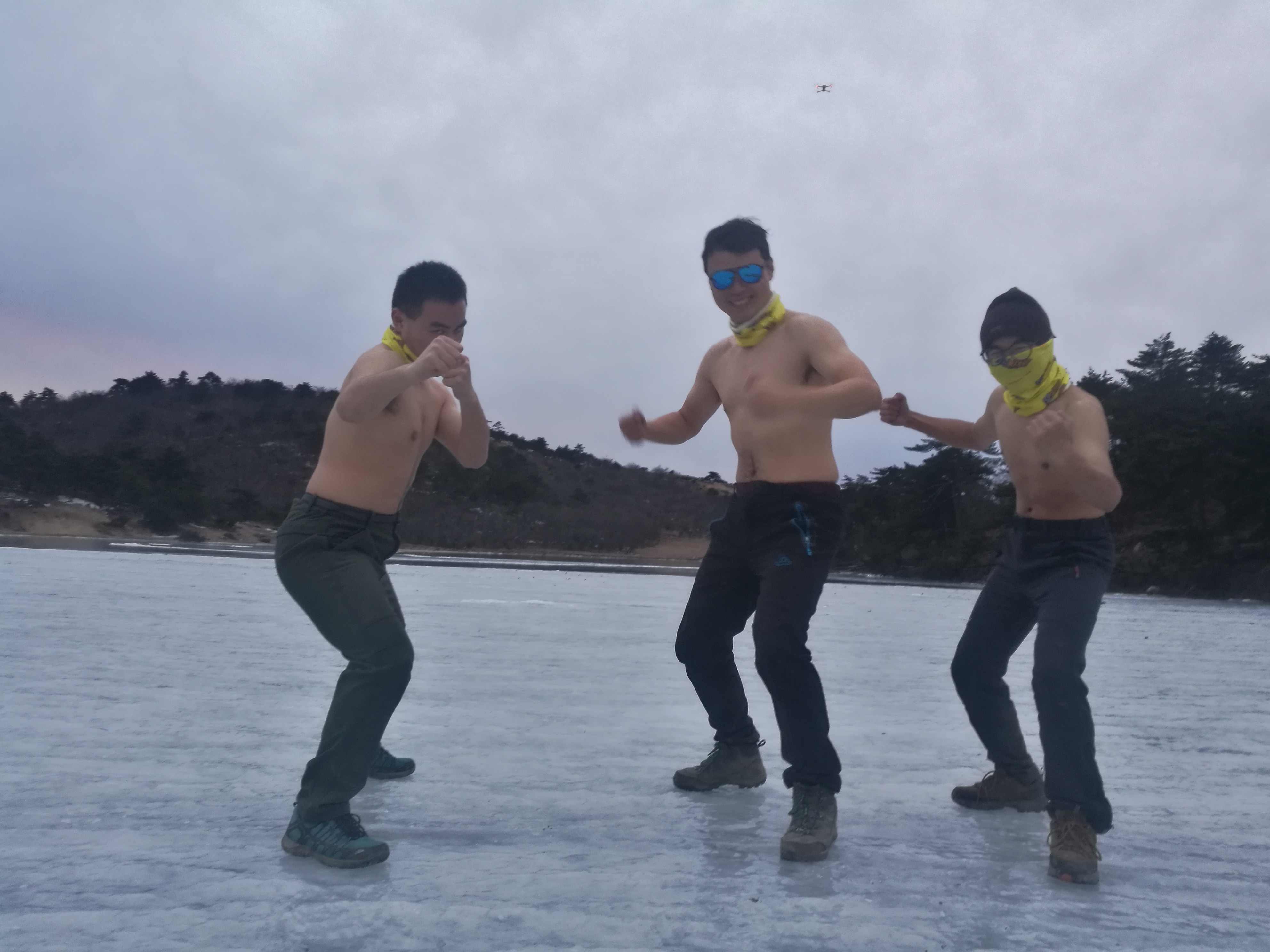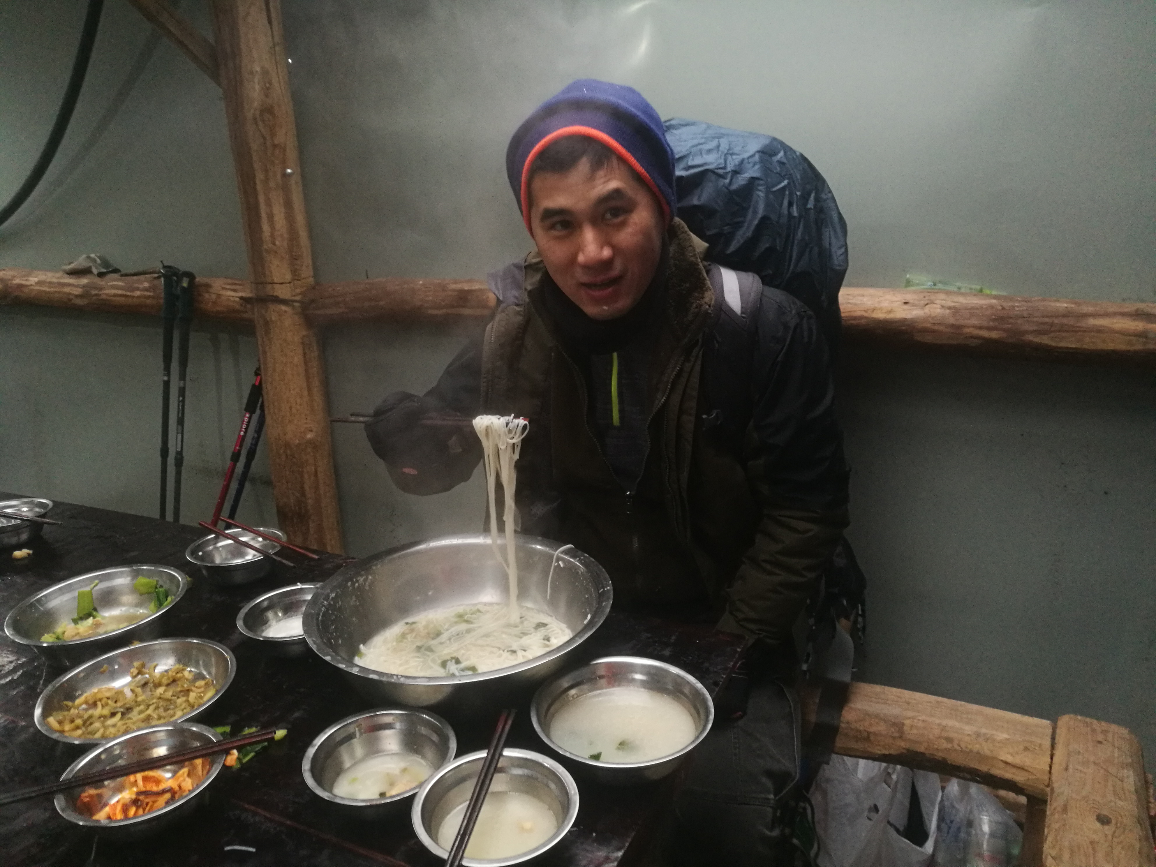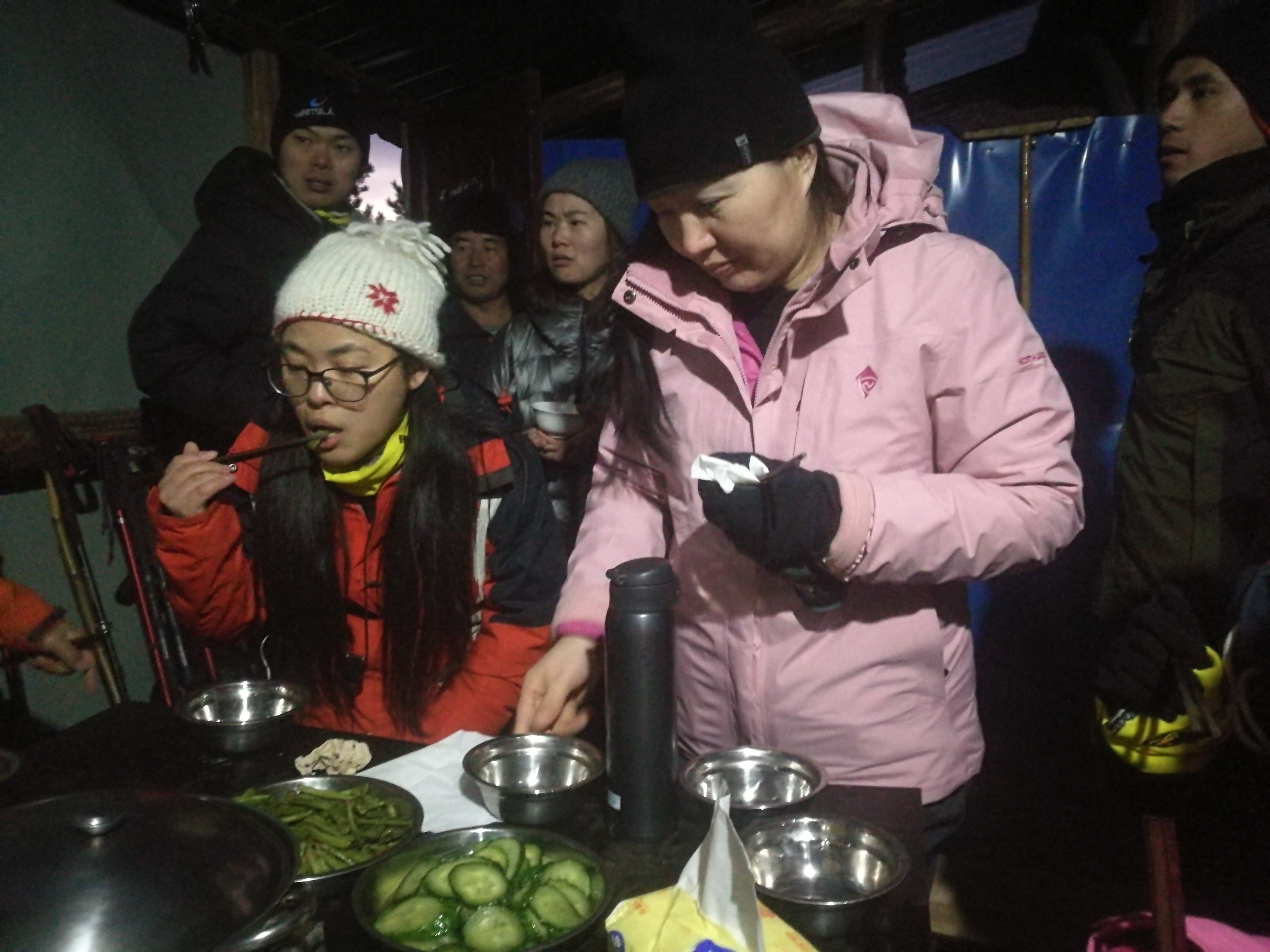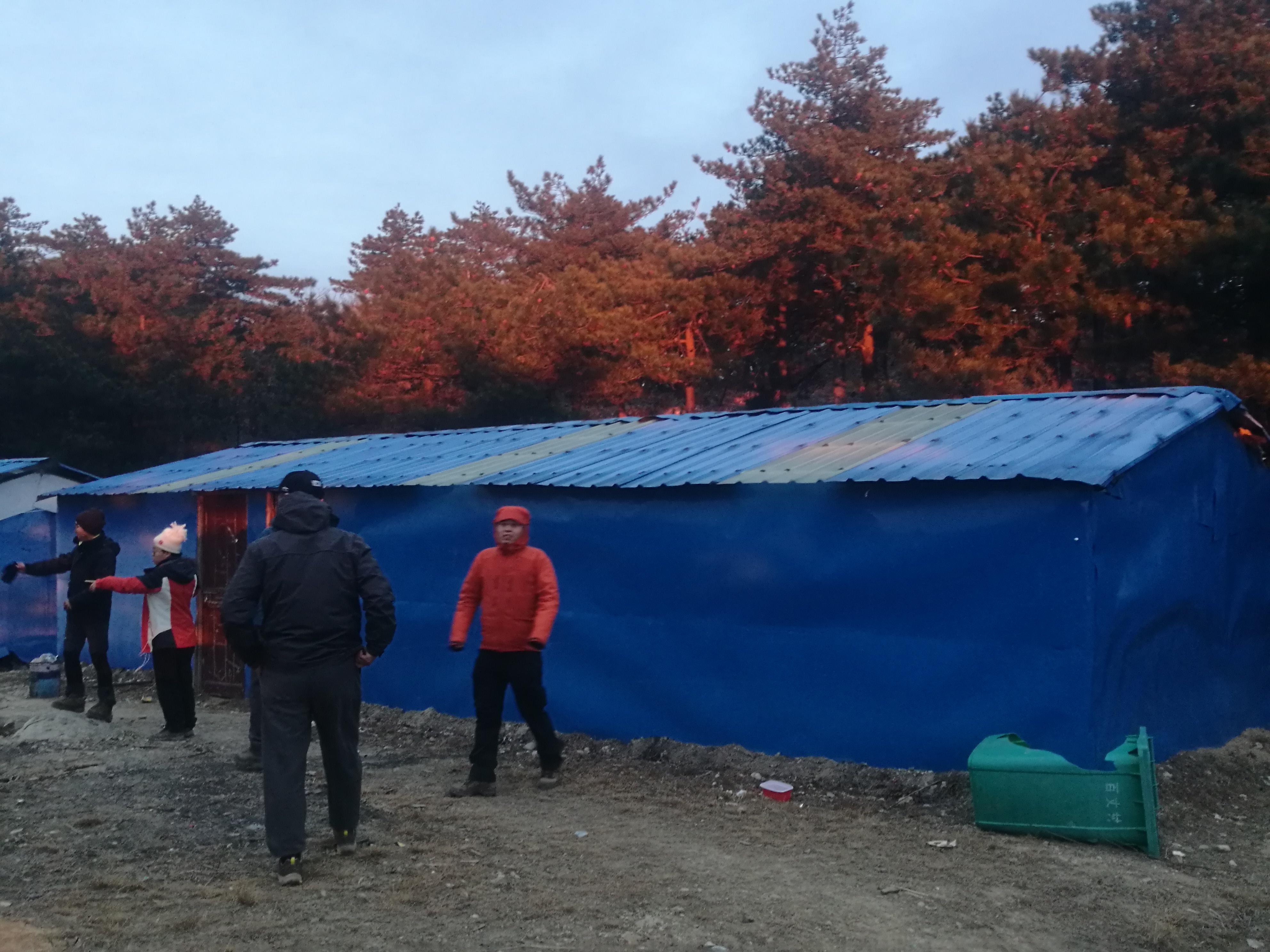 睡了一夜,心里最大的愿望就是第二天早晨可以看到白茫茫的一片,可以看到雾凇,冰挂,云海。然而什么也没看到,但丝毫不影响我们的心情,因为前进的步伐从来没有停止过。
