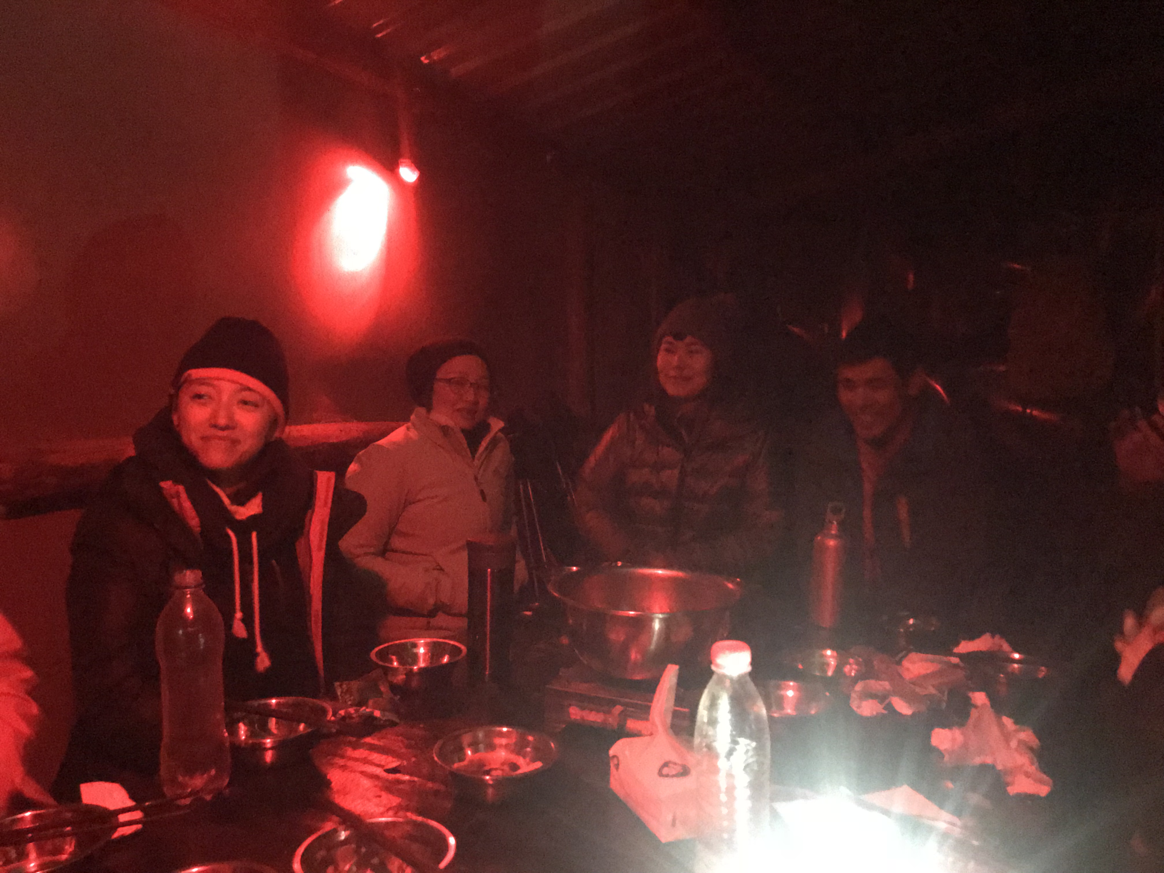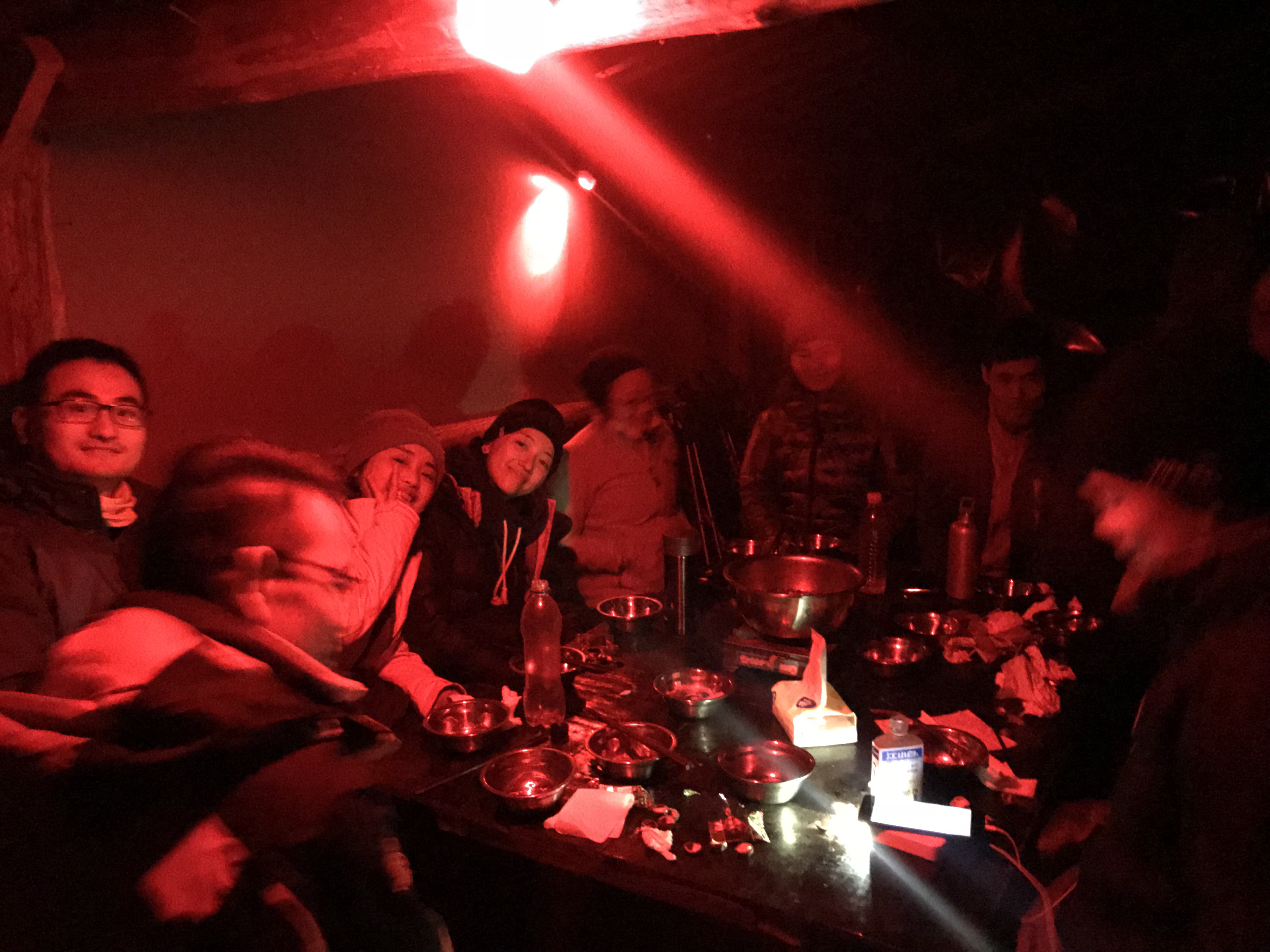 看起来简陋,其实睡得很暖和、很舒适。也是这样的环境造就了我们晚上晚会的氛围。