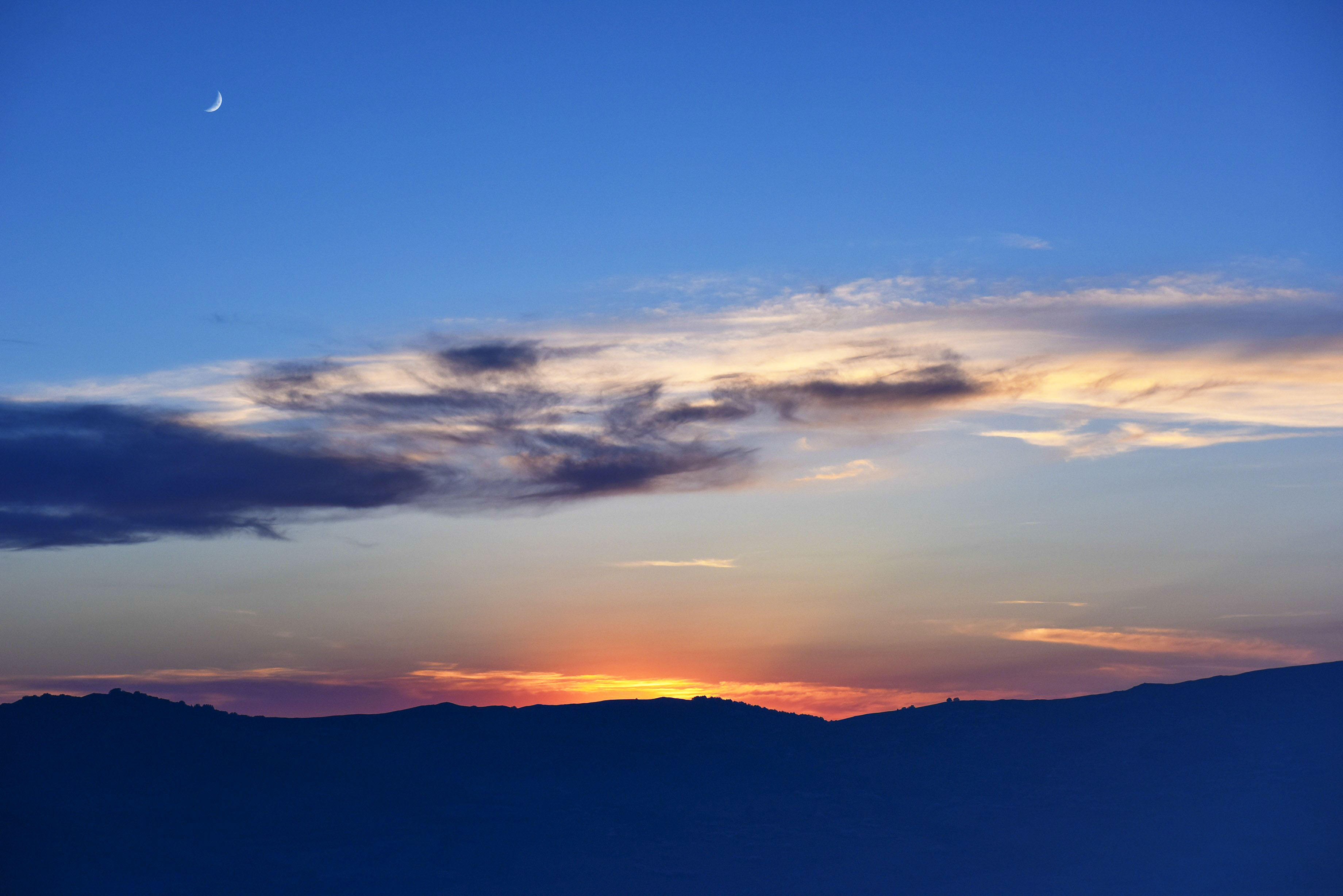 一阵拍摄之后,太阳落山,夜幕降临,代之而出现的是西边天际的月牙。忽然想起今天是端午节,家家插艾条祛邪纳正,寄托对屈原的怀念。