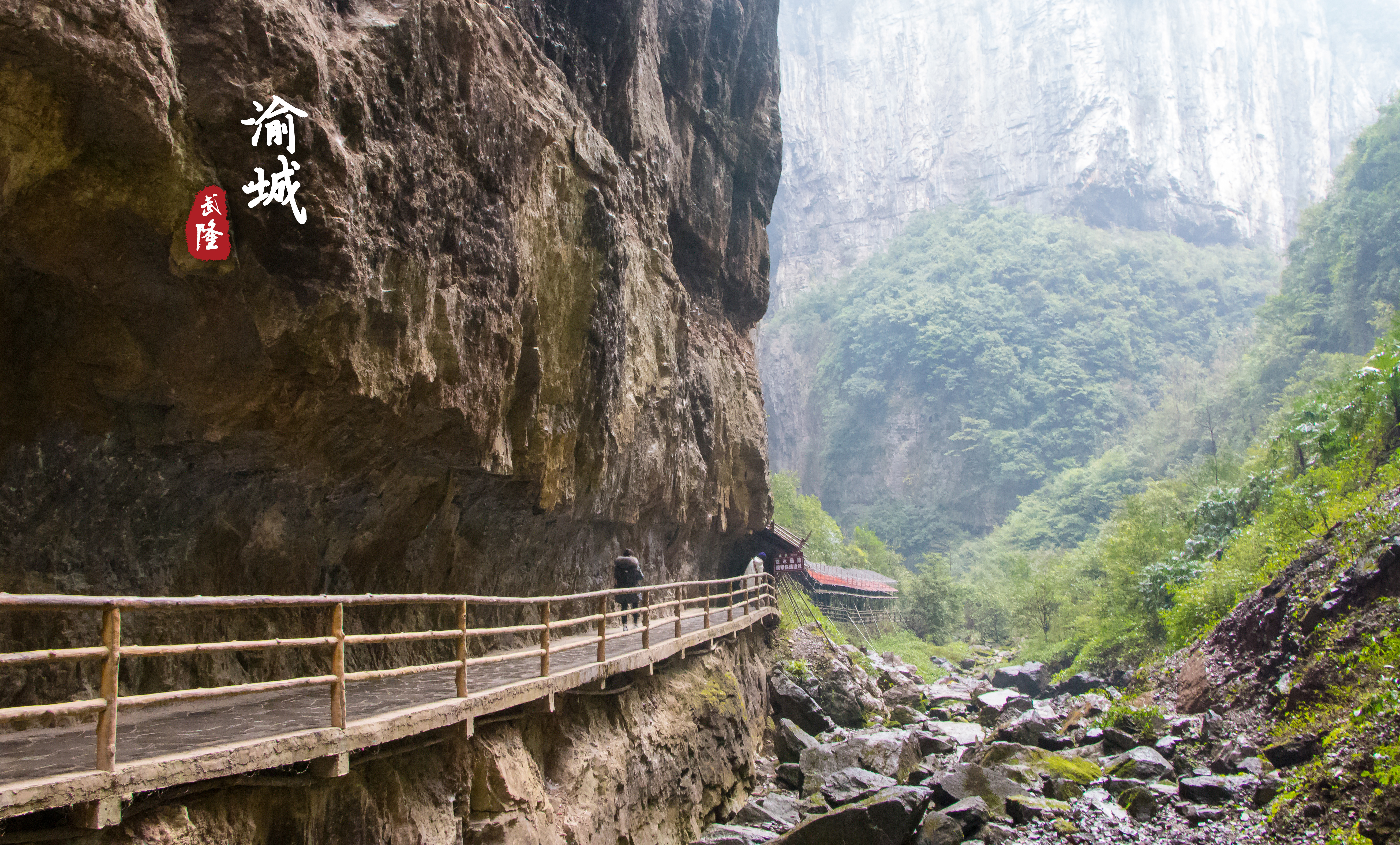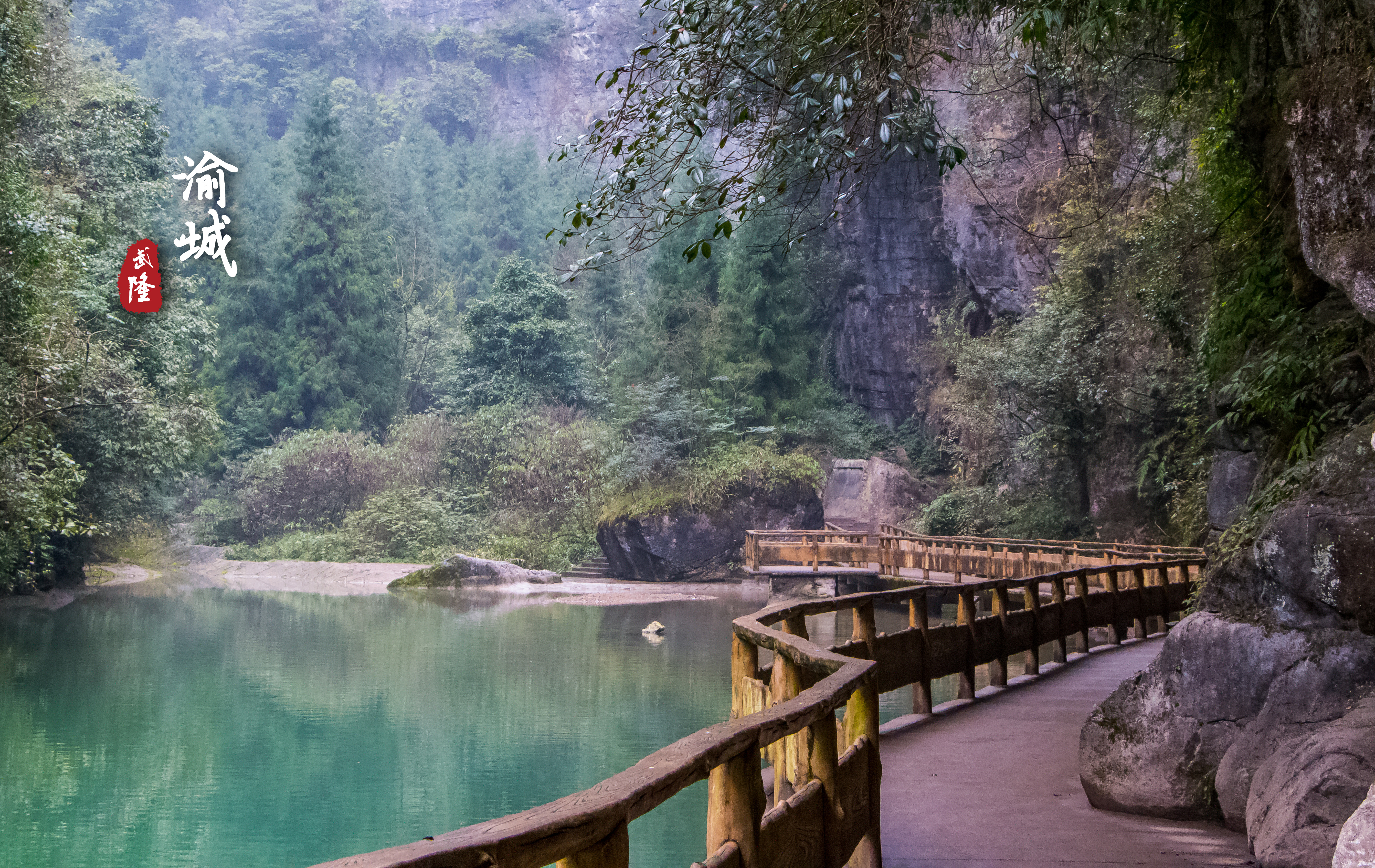 池水清澈,静谧空旷,给人以安宁。天生三桥,由山石铸成,山就成了桥的灵魂,桥也成了山的化身。