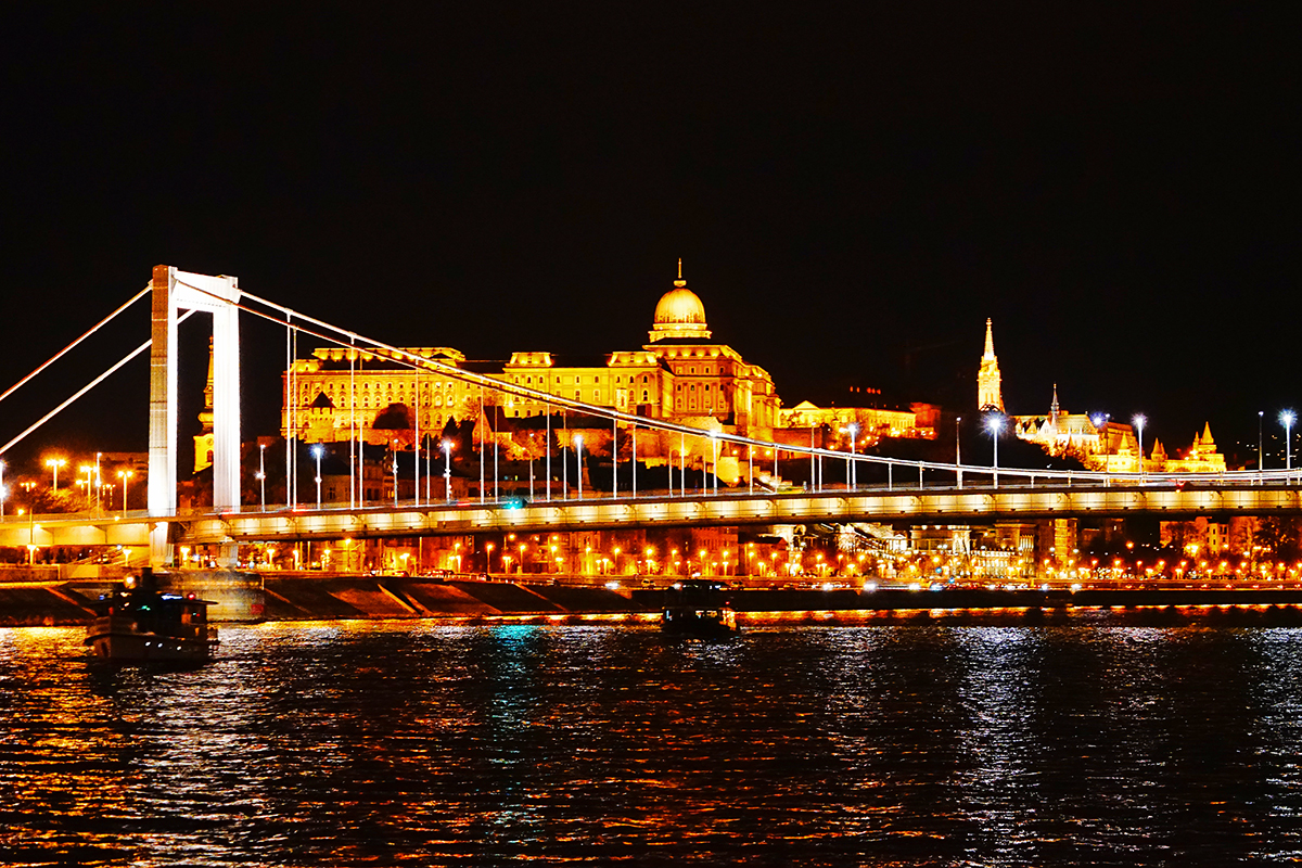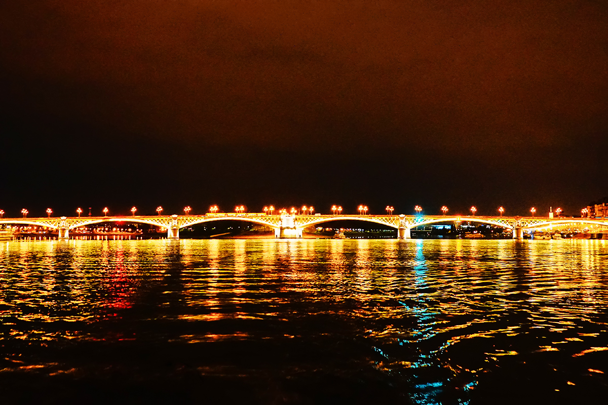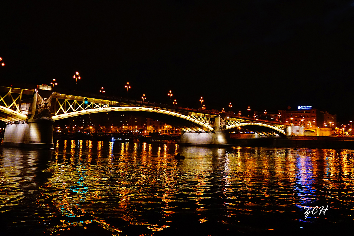 横跨布达佩斯的多瑙河有九座桥,我们游船经过了五座大桥:玛格丽特桥、链子桥、伊丽莎白桥、自由桥、裴多菲桥。它们座座造型优美,静静的跨越美丽的多瑙河,不仅为布达佩斯市民的出行带来了极大的方便,也已成为布达佩斯著名的景点之一,尤其是夜晚,在景观照明灯的配合下,更加光彩夺目,吸引着我们游客赞叹连连。
