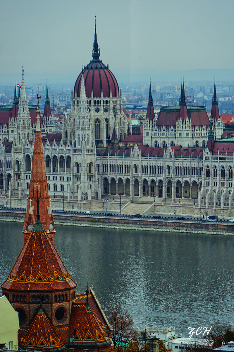 从渔人堡观景平台眺望对面的国会大厦。具有典型新哥特式风格的匈牙利国会大厦建于20世纪初,是匈牙利最宏伟、最庄严的建筑之一,同时也是欧洲大陆第一大的国会大厦。 简直壮观极了!