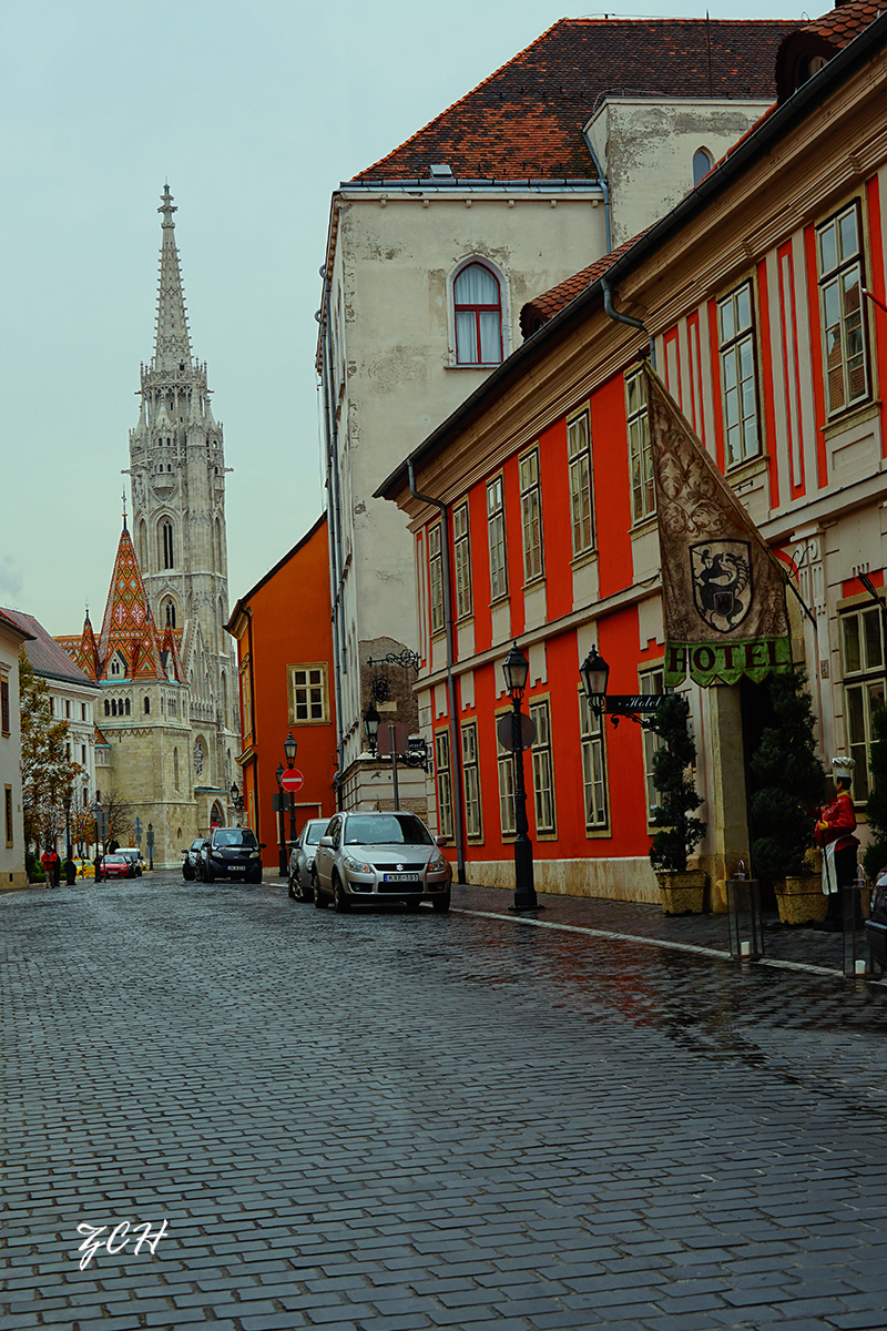 渔人堡上的街景,整齐的石砖路通向白色身彩色顶马加什教堂。凡是到过这里的人,无不为她的秀美、精致,它蕴涵的诗情画意而赞叹不已。
