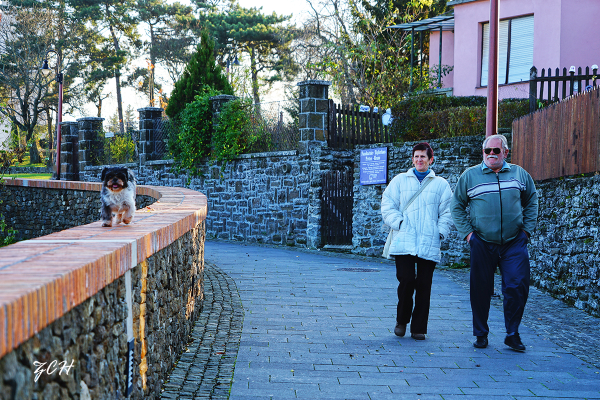 来到蒂哈尼半岛,它位于匈牙利巴拉顿湖的北岸,蒂哈尼半岛深深地伸入湖心,几乎把湖面分割成两半。半岛高出水面约百米,岛上道路崎岖,古木参天,景色幽静秀丽。蒂哈尼半岛是巴拉顿湖上景色最美的地方。蒂哈尼半岛又很小,二个小时的自由活动基本把半岛走遍了。半岛小镇上,哥特式和巴洛克式建筑散落在林木花丛之中,公元11世纪的教堂和城堡遗迹至今可见。蒂哈尼半岛山顶上的标志性建筑是一座白色的修道院,它是座美丽的巴罗克式建筑,据说修道院里的地下教堂已有900多年的历史啦。