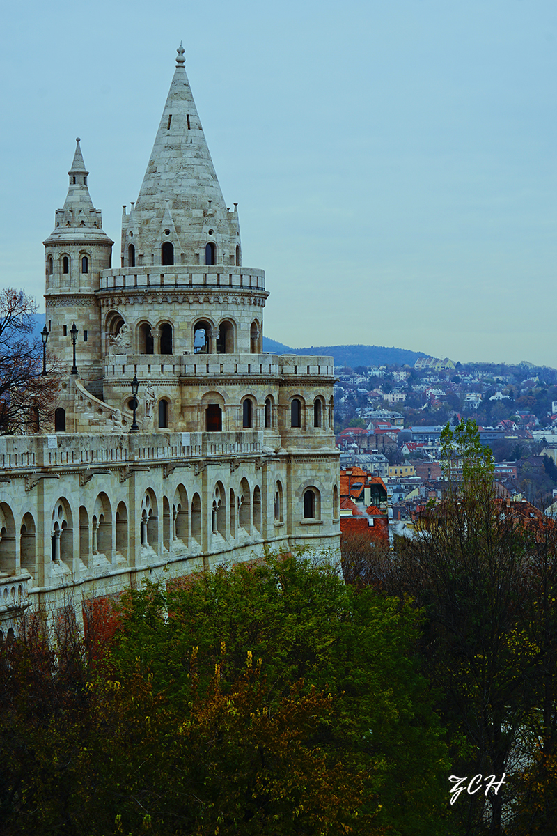 晚上,我们住的酒店离渔人堡不远,第二天清晨,我们俩用手机导航,自己步行,穿过酒店对面有红色椅子的公园,再爬上一座小山坡,哈哈! 我们来到了著名的渔人堡。