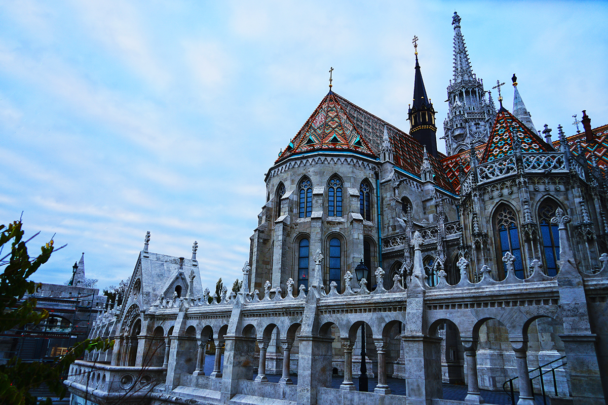 马加什教堂的尖顶意外的出现在我眼前,明艳的色彩让我不得不赞叹它的美丽。马加什教堂位于布达佩斯城堡山,属新哥特式教堂。极富艺术性的南侧的尖塔钟楼,瑰丽的教堂拱顶值得细细品味。可以发现这个外观属新歌德式的教堂,其实蕴含了匈牙利民俗、新艺术风格和土耳其设计等多种色彩,特别是一旁的白色尖塔和彩色屋顶,为整个教堂增加了些许生动。 马加什教堂原本是布达圣母教会,后因匈牙利国王马加什在此举行婚礼而改名。正如同雨果所形容的,马加什教堂是一座“石头的交响曲”。它抛弃了传统哥特式建筑的对称结构,独具匠心地将高高的钟楼修建在教堂的一角,这使得整座建筑一下子变得轻盈,历代匈牙利国王的加冕仪式皆在此举行,故又有“加冕教堂”之称。