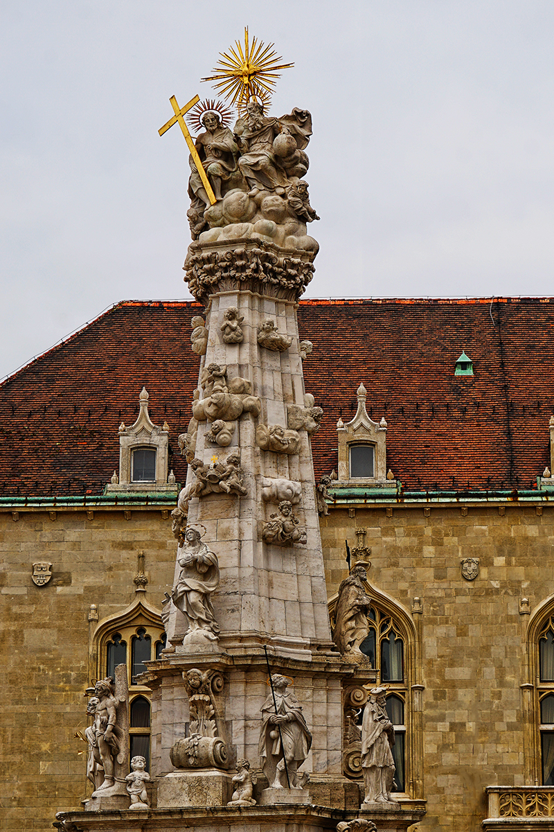 建于1713年的三位一体雕像,即圣父圣子圣灵一体,柱上刻有圣父、耶稣、十字架等,手工极为精致。