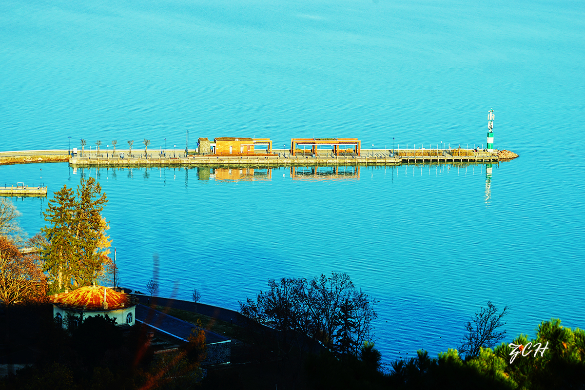 这里的景致十分像瑞士:浩瀚的湖水旁是起伏的山地,风格各异的建筑为苍绿的林木环绕~~风光如画。