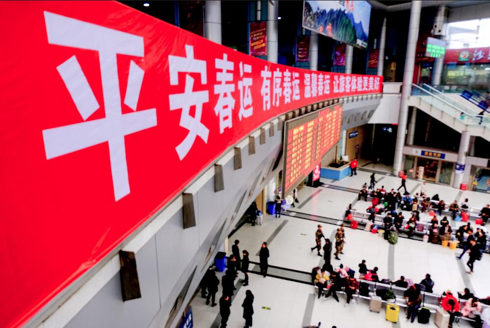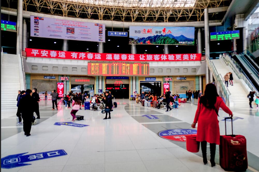 重庆龙头寺火车站春运氛围浓厚。