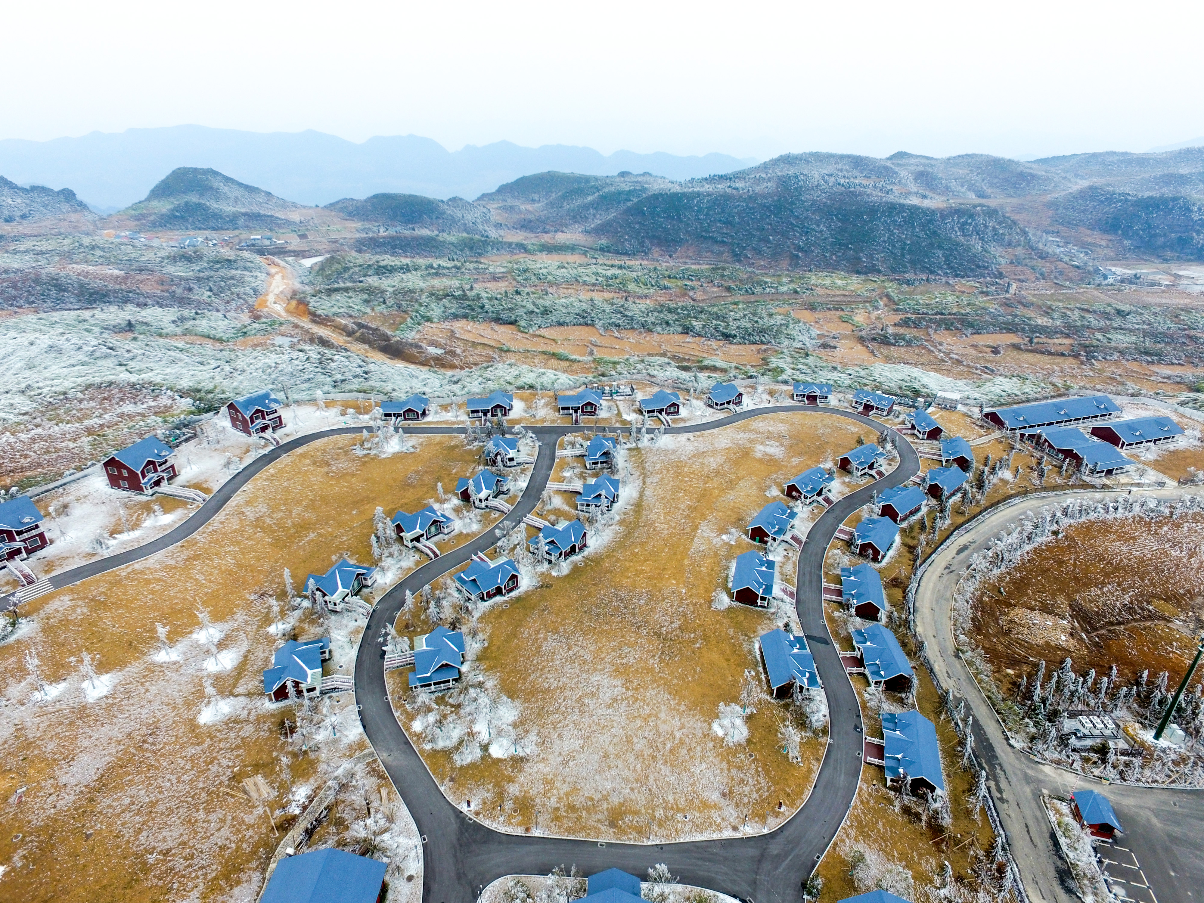 山上的星空酒店被大雪披上银装