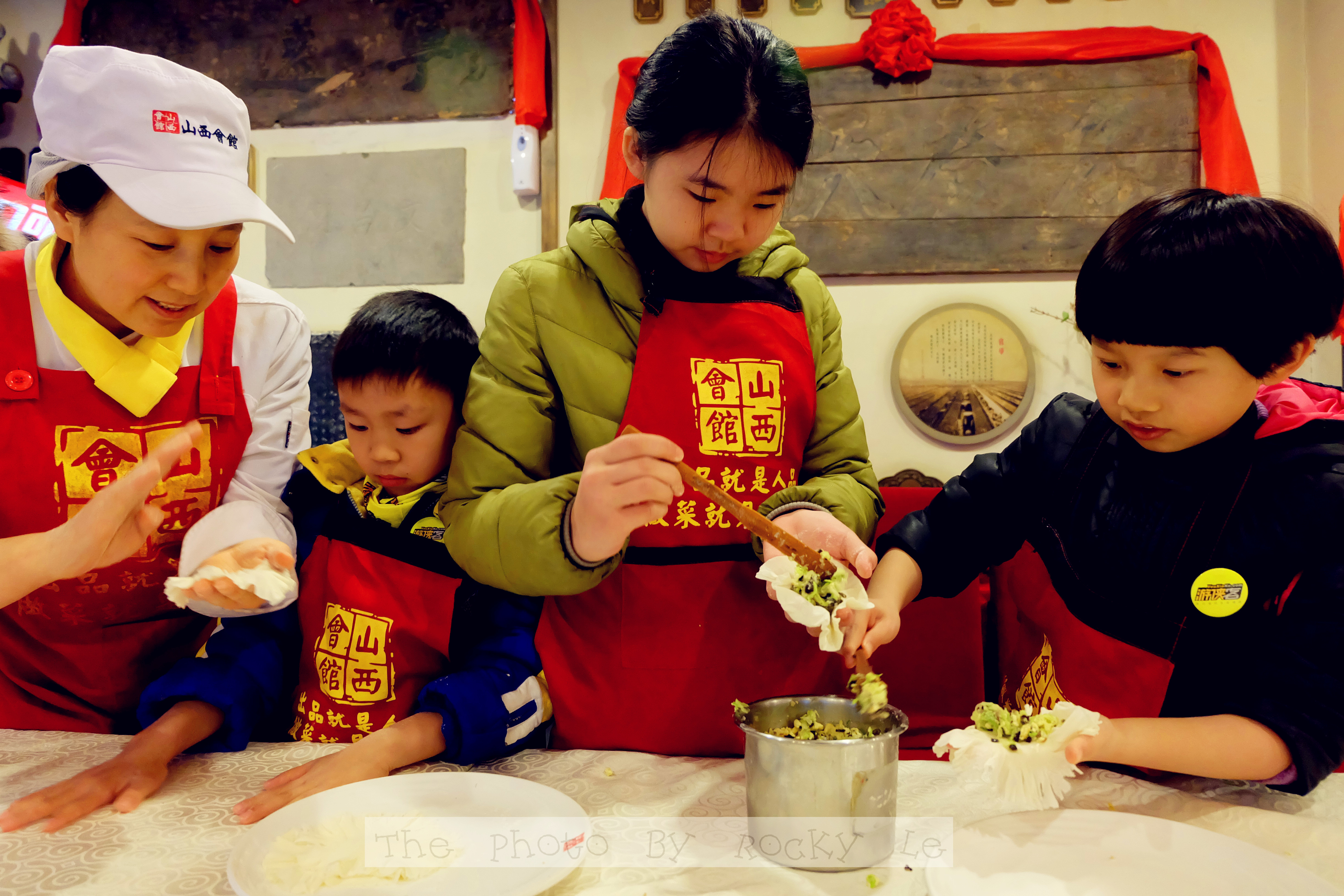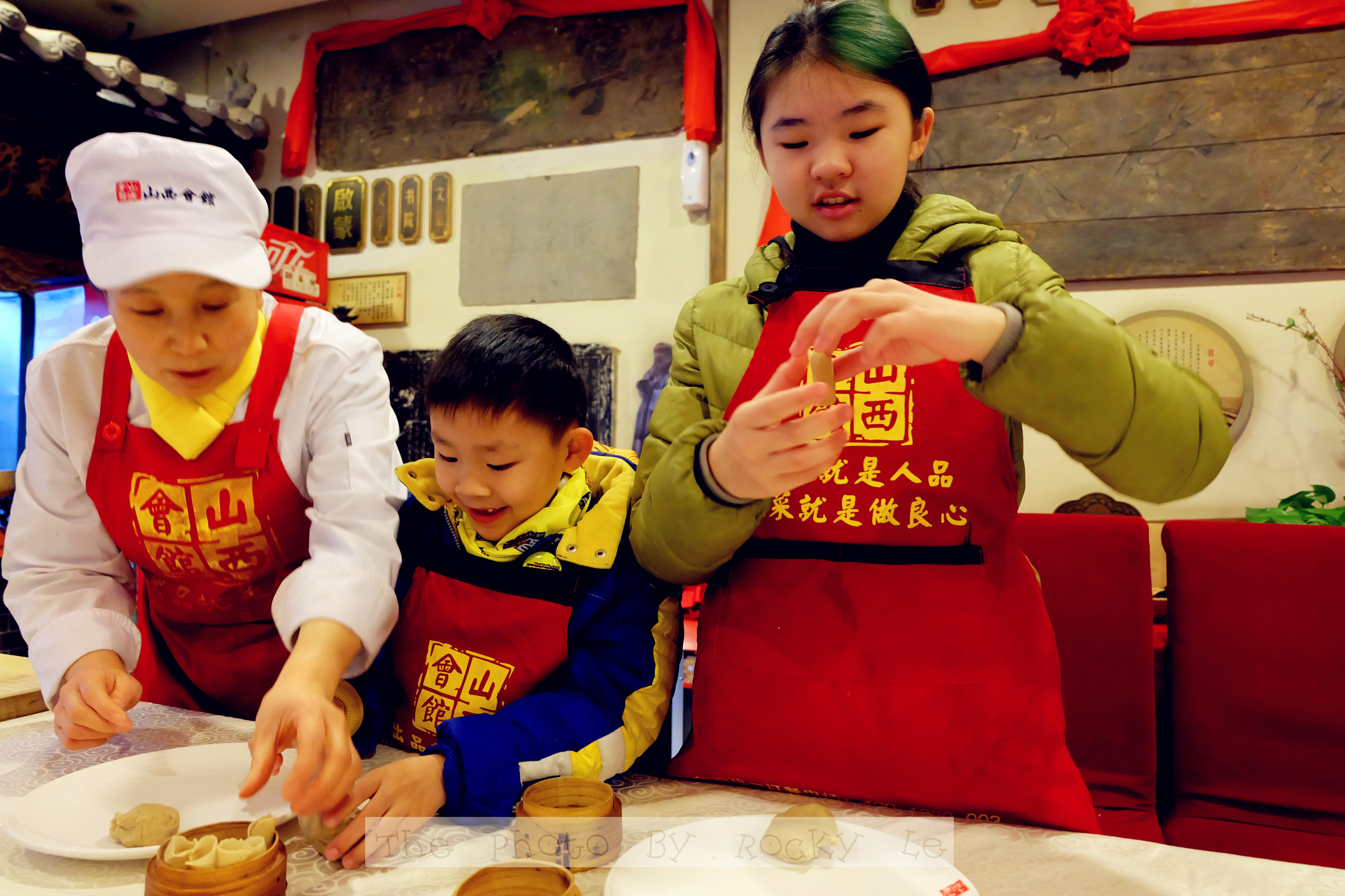 素馅的特色烧麦也是一绝,看我们的小朋友们包的多仔细