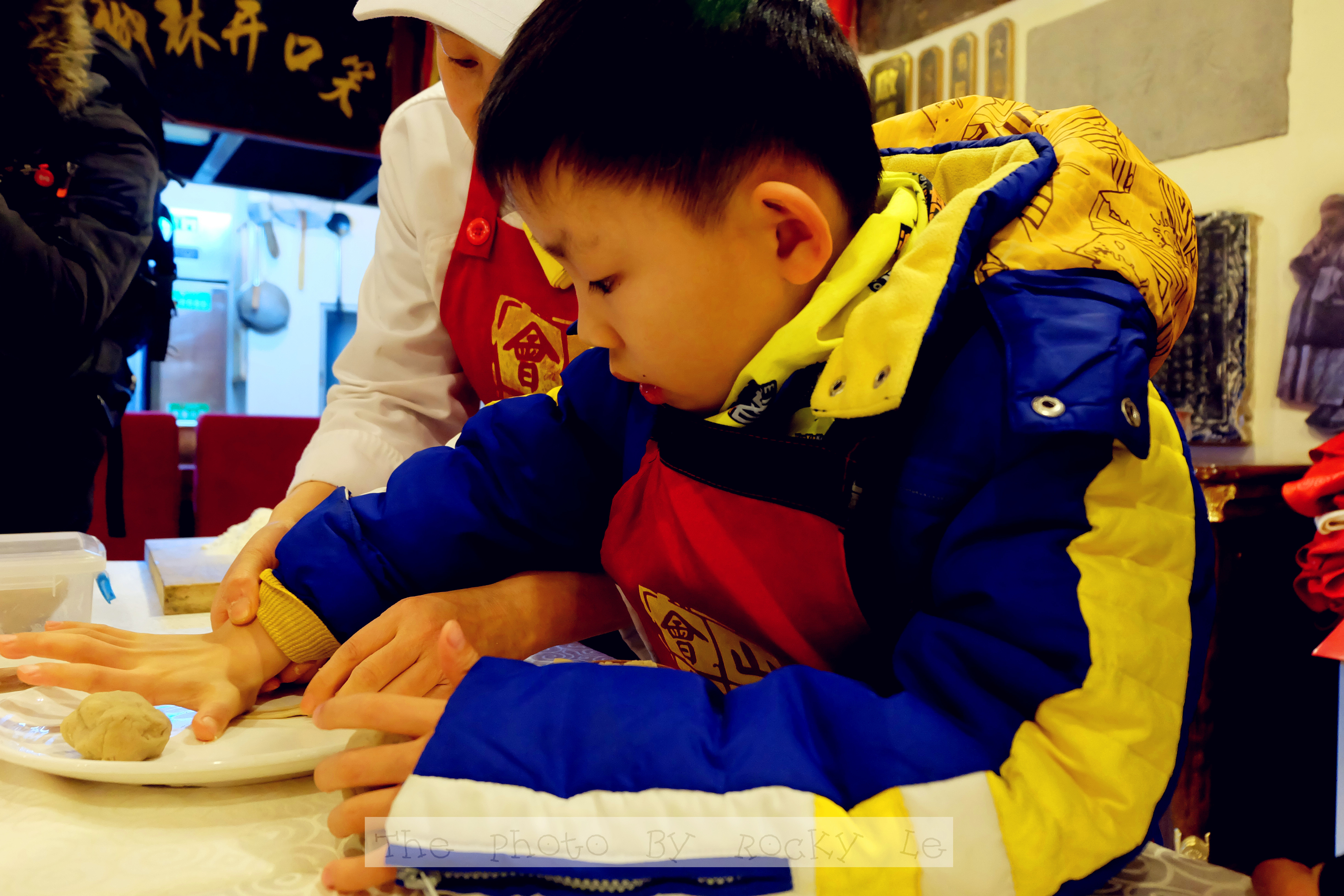 到了这里学面点,当然得敬茶拜师啦!