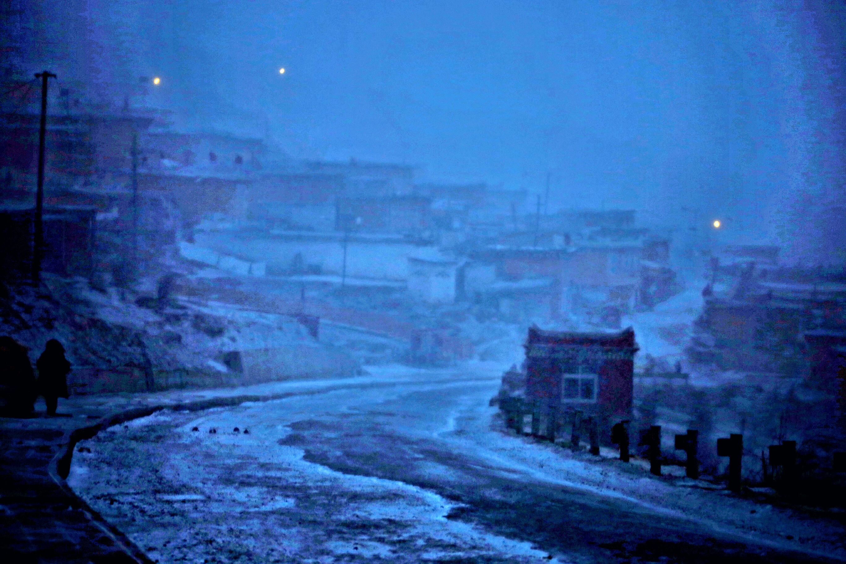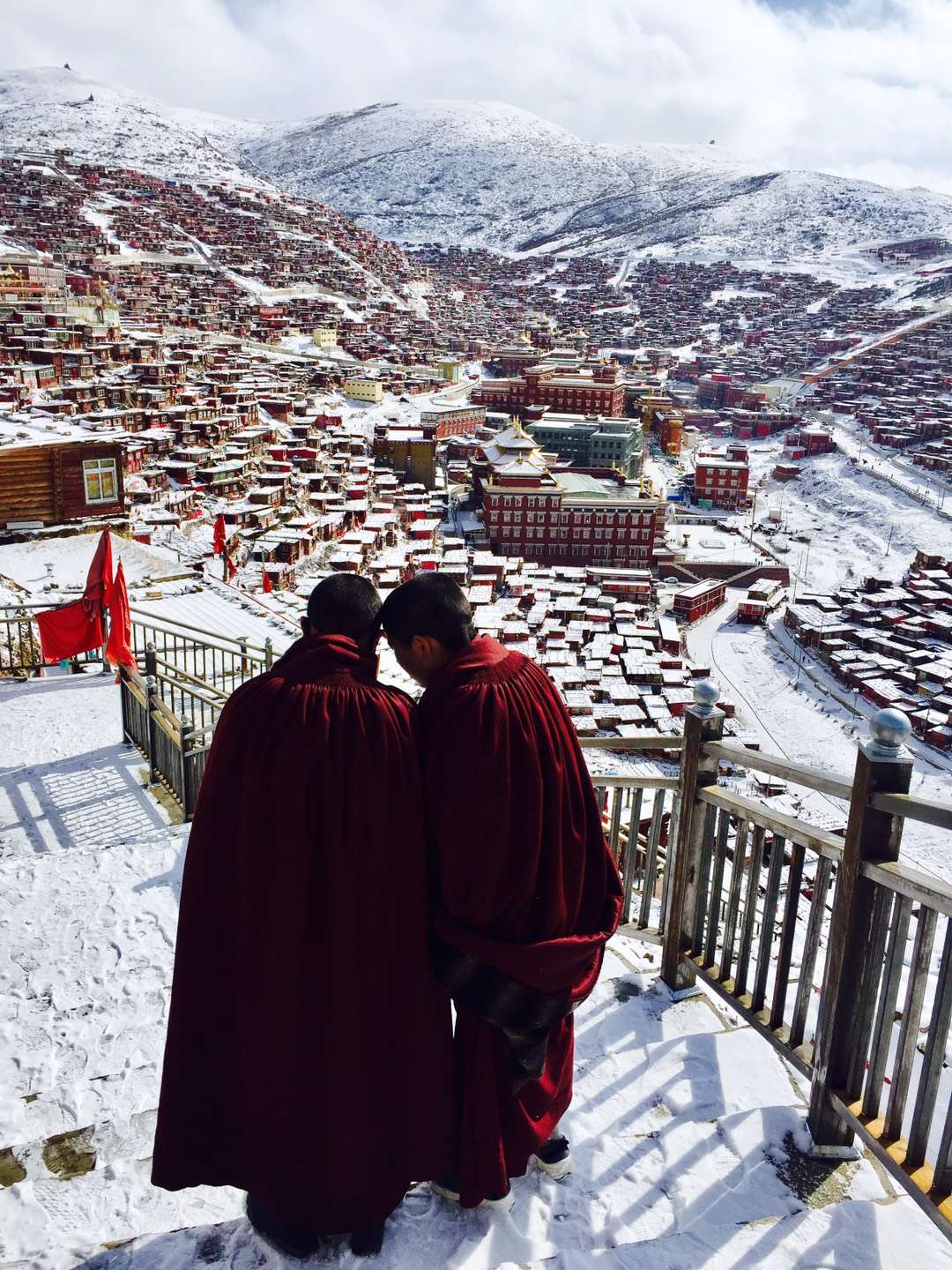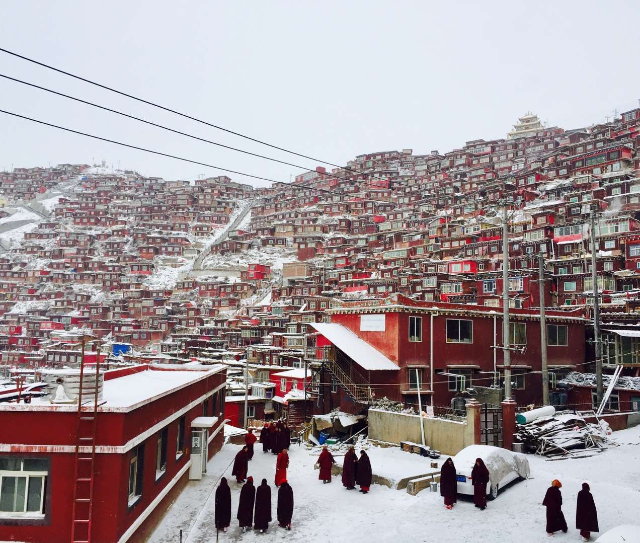 经过一夜大雪洗礼,佛学院完全变了一个样子,在白雪茫茫中透露着斑斑红迹,更显这片土地的圣洁和神圣!