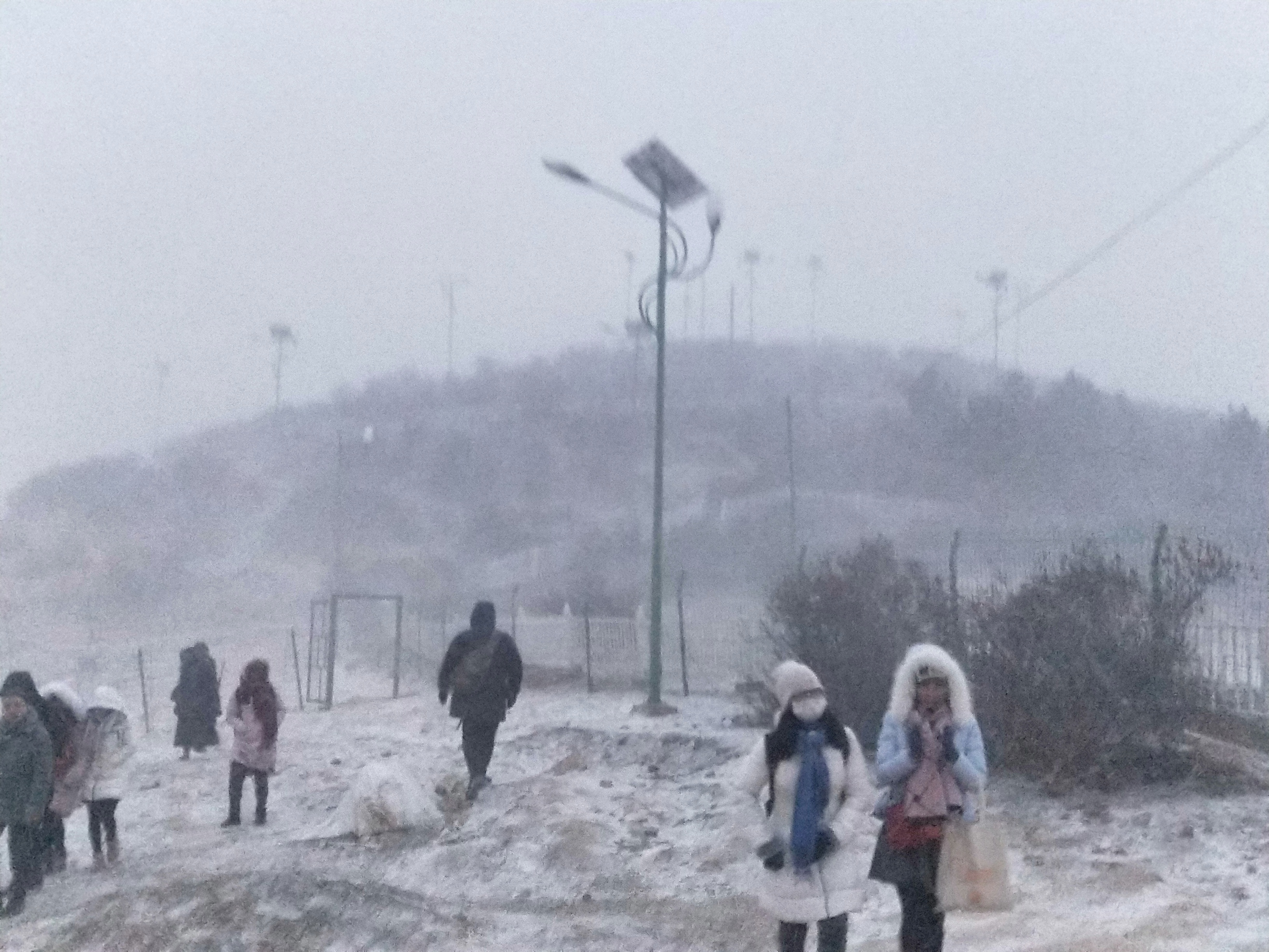 下山途中我极其紧张,路窄弯道多,雪越来越大,还伴随着狂风,能见度很低,目测不超过3米,这是我目前带队出来最紧张害怕的一次,万幸我们遇上的是车技好、熟悉路的老司机,安全把我们带到了自己的大巴车旁,再跟着我们自己的老司机慢慢驶向酒店,到了酒店我才算是真正放了心,在这里,感谢我们全程的司机师傅以及带我们下山的师傅,感恩!