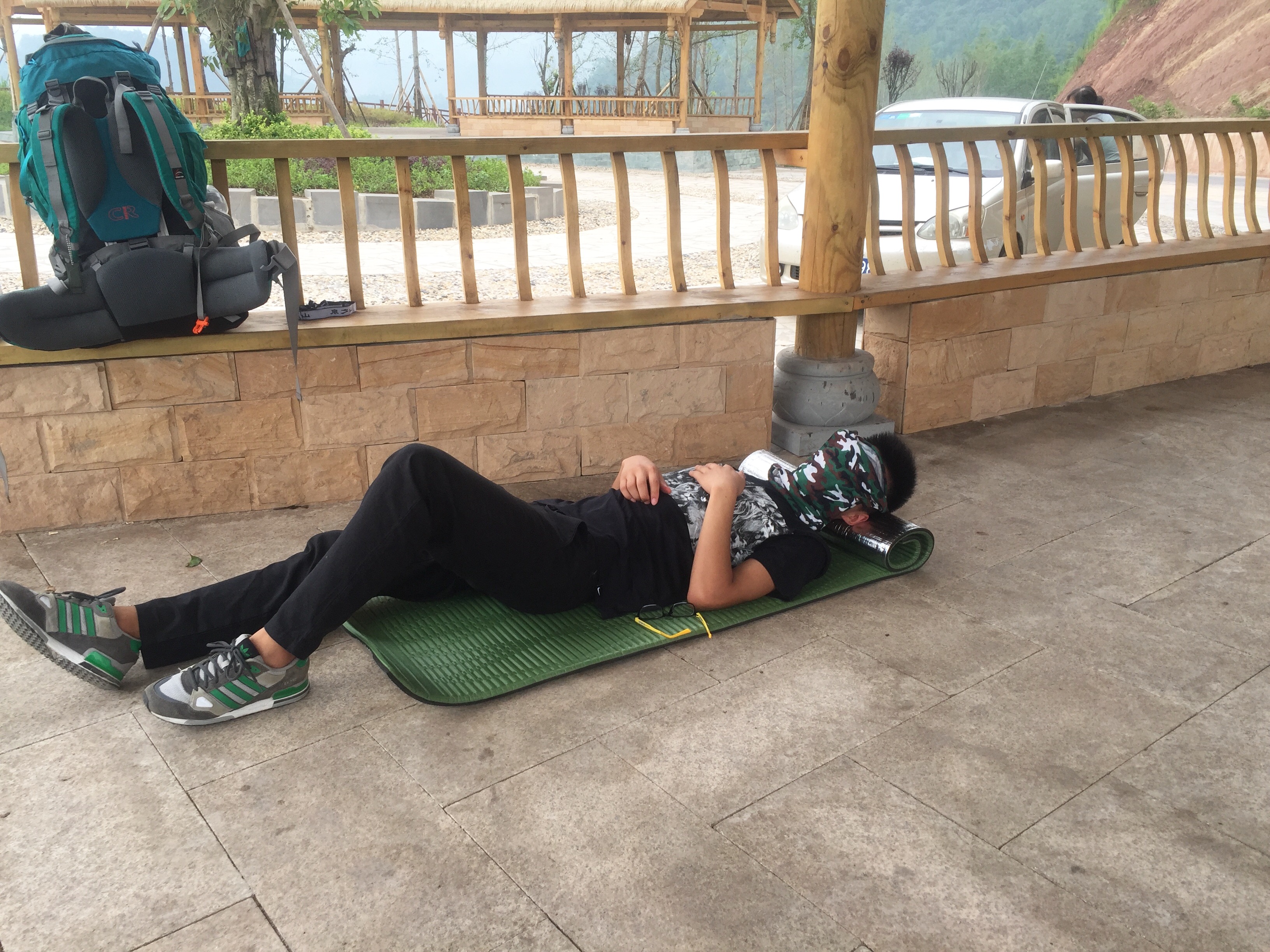 一大早起来翻越天路十八弯,休息的时候还弄丢了帽子。