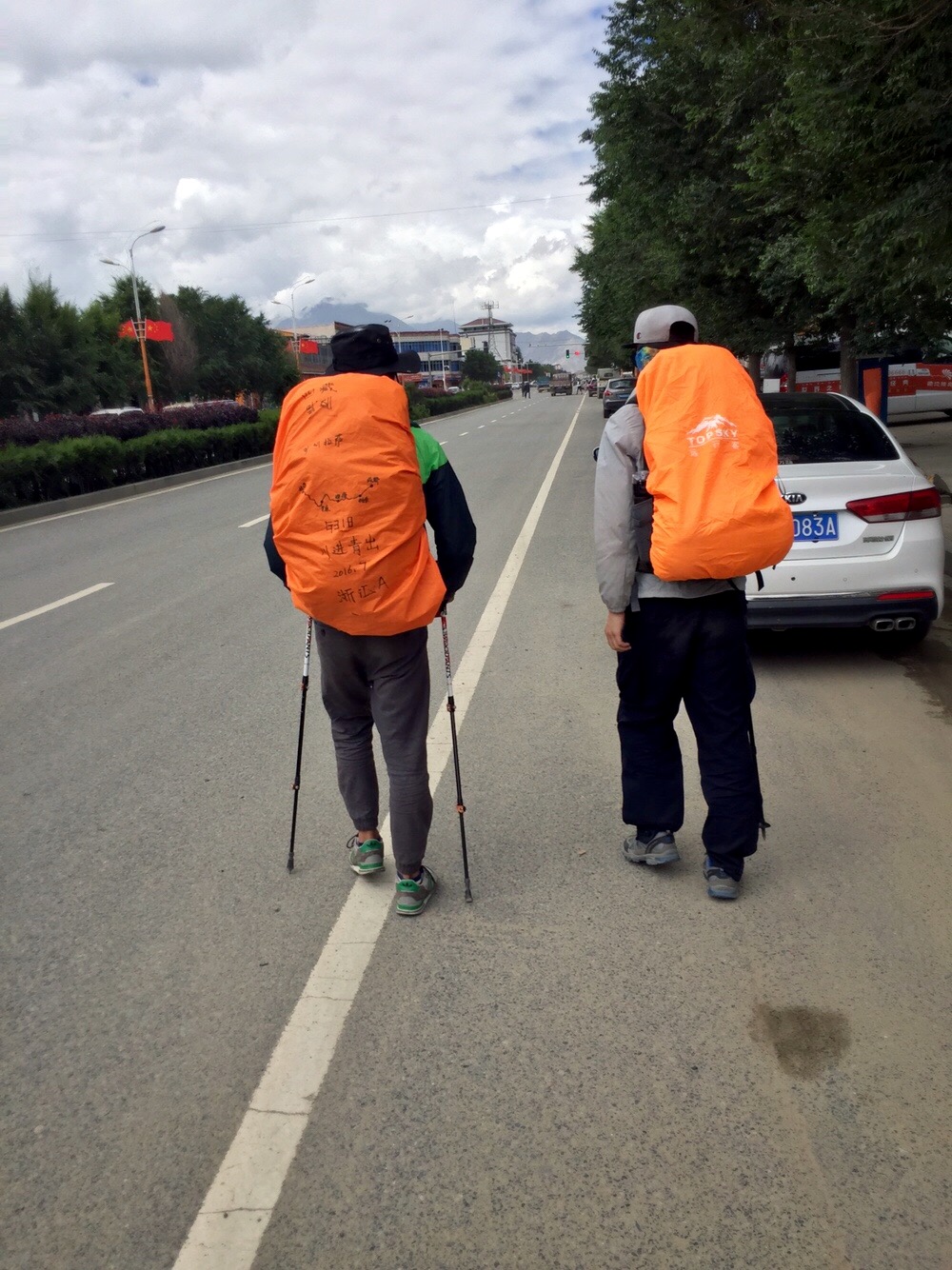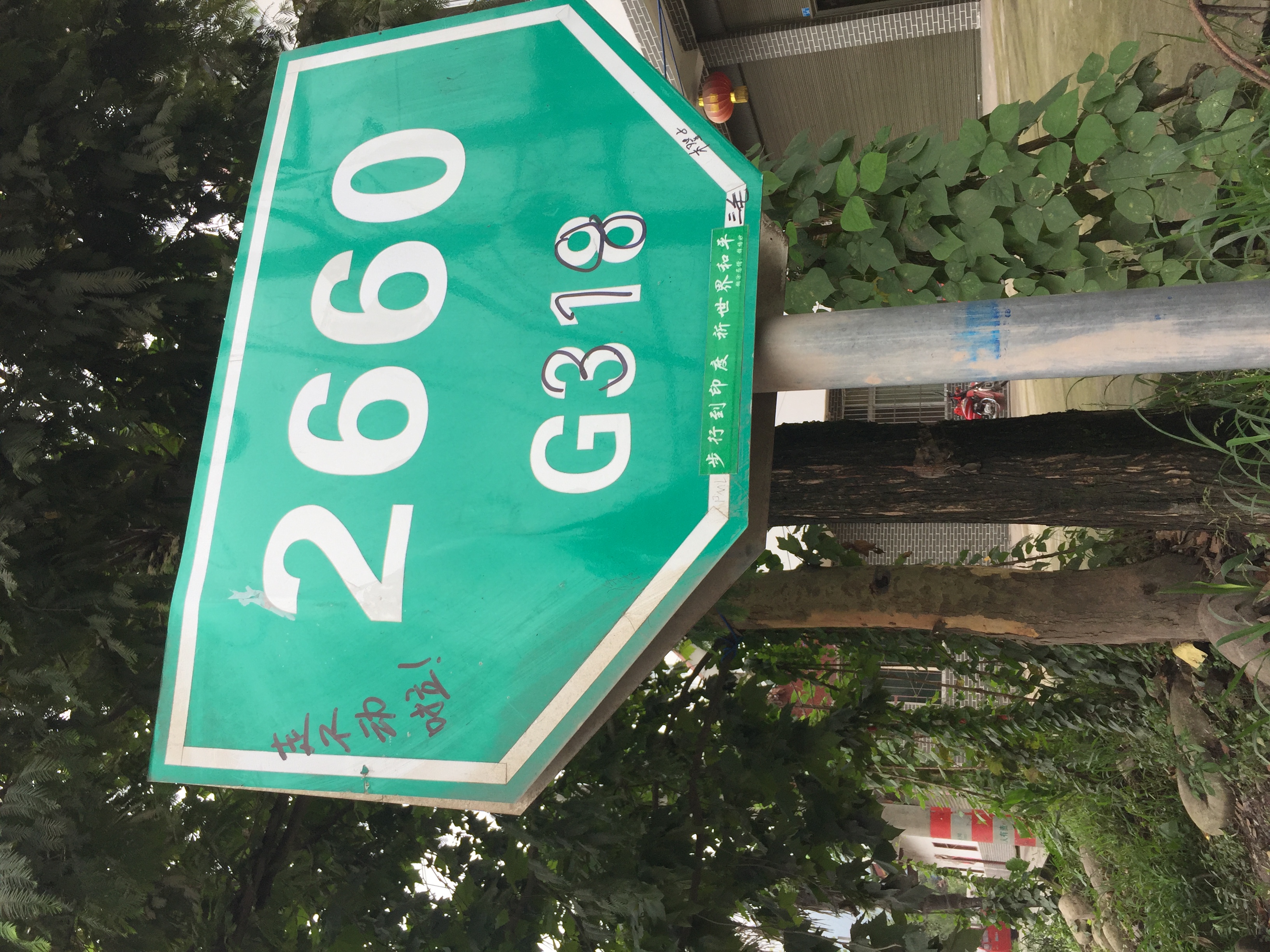 毕竟是第一天行走,印象还是挺深的,背着65 10升的包,走了30KM,除了走还是走。一大早吃了客栈的早餐,老板把我们载到雅安城外的茶马古道起点,也就是G318川藏线起点,就开始走,不停地走。上午还遇到好多骑行的朋友,擦肩而过会对我们竖大拇指,嘴里喊着加油,呼啸而过。自驾的也会停下车来要我们合照,哈哈,估计丑照都传在他们朋友圈了。也算是川藏线上的一道人文风景了吧。风景一般,除了走还是走,脚都走破了。