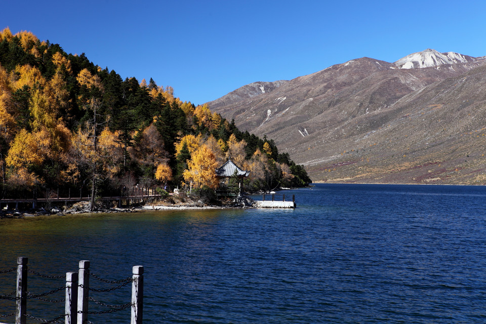 木格措距离康定市区约17公里,汉名野人海,又名大海子,是川西北最大的高山湖泊之一。水域面积近4平方公里,水深逾70米,海拔3700米。因水源大部分来自身后女娲雪山的融化积雪水,因而能见度很高,一般为6-10米左右。木格措四周被群山、森林、草原环抱,红海、黑海、白海等几十个小海子围绕着她,犹如众星捧月。