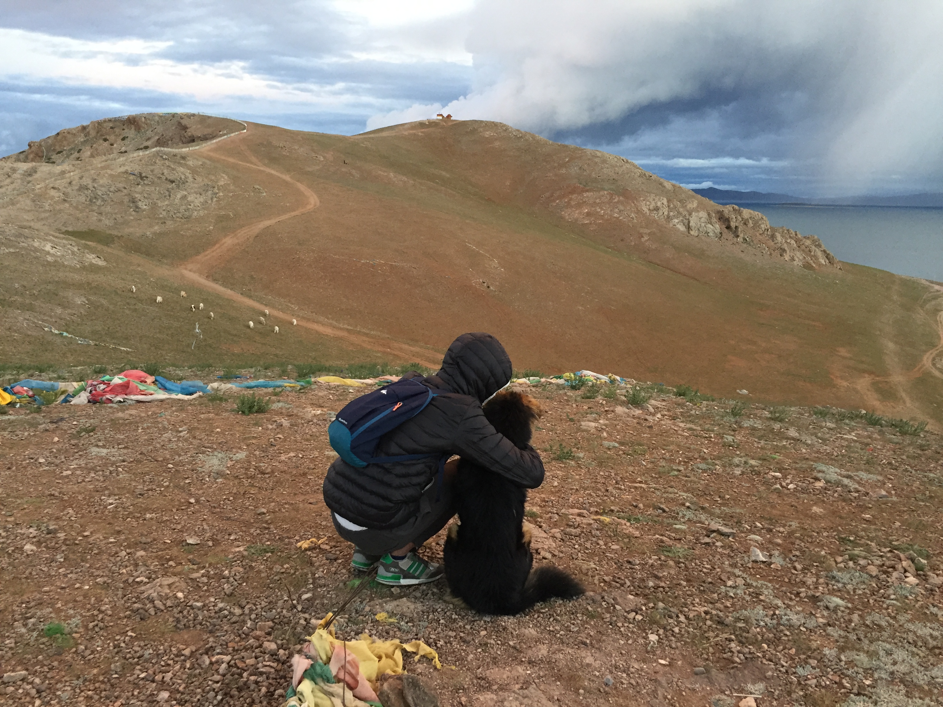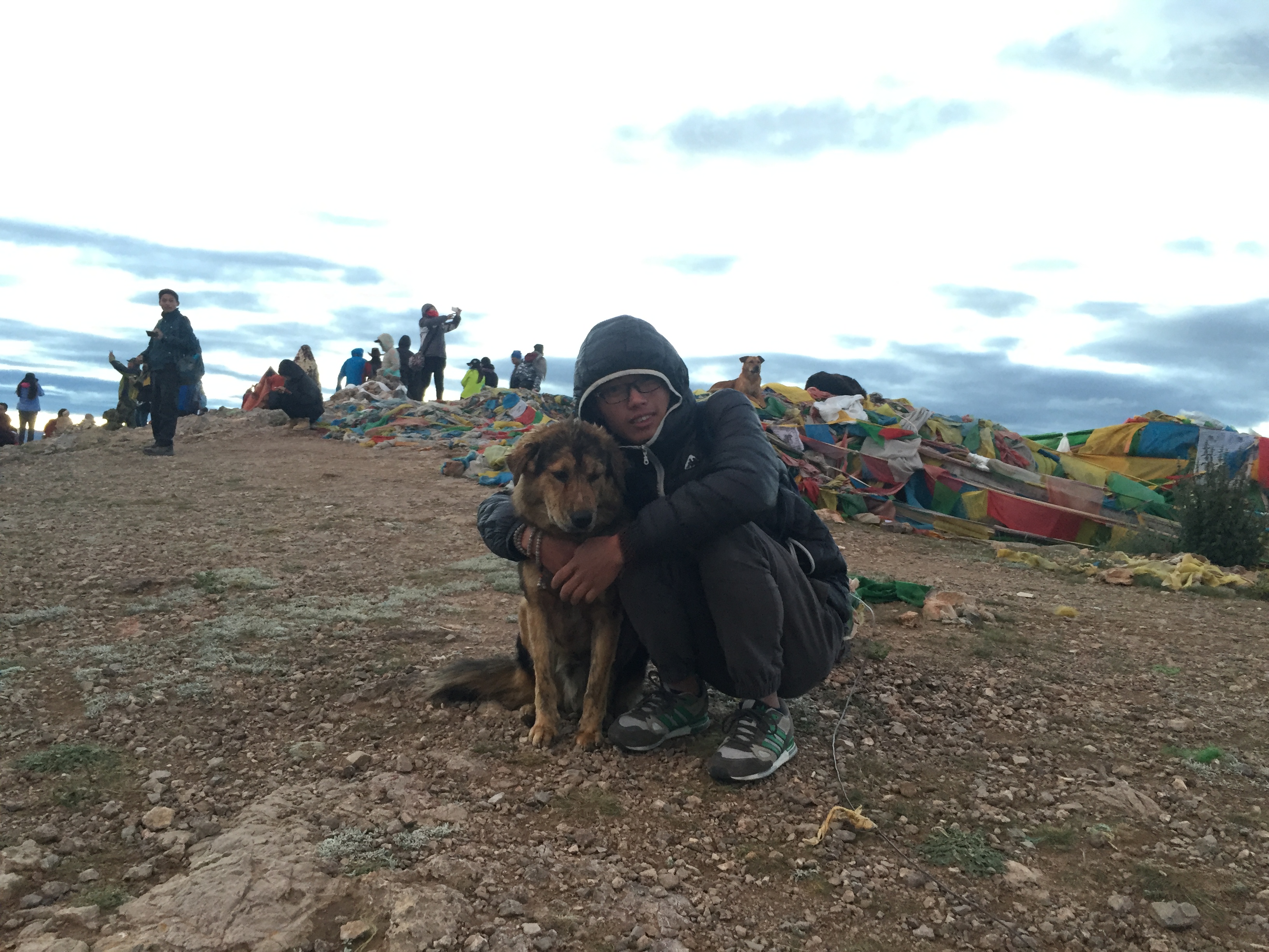 山顶有一只狗,应该是没人养的,我喘得不行坐在山顶,它看我就走过来舔舔我,我俩相互依偎,取暖。它可以不可爱,可以不干净,但是它有灵性。我喜欢一切有灵性的事物,就像理塘草原的孩子,长青春科尔寺的小喇嘛,还有路上跟着我走的小猫等等,一路上太多了。灵性的互通,不分物种,不分民族。
