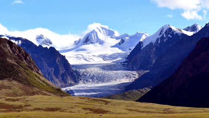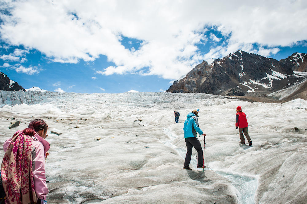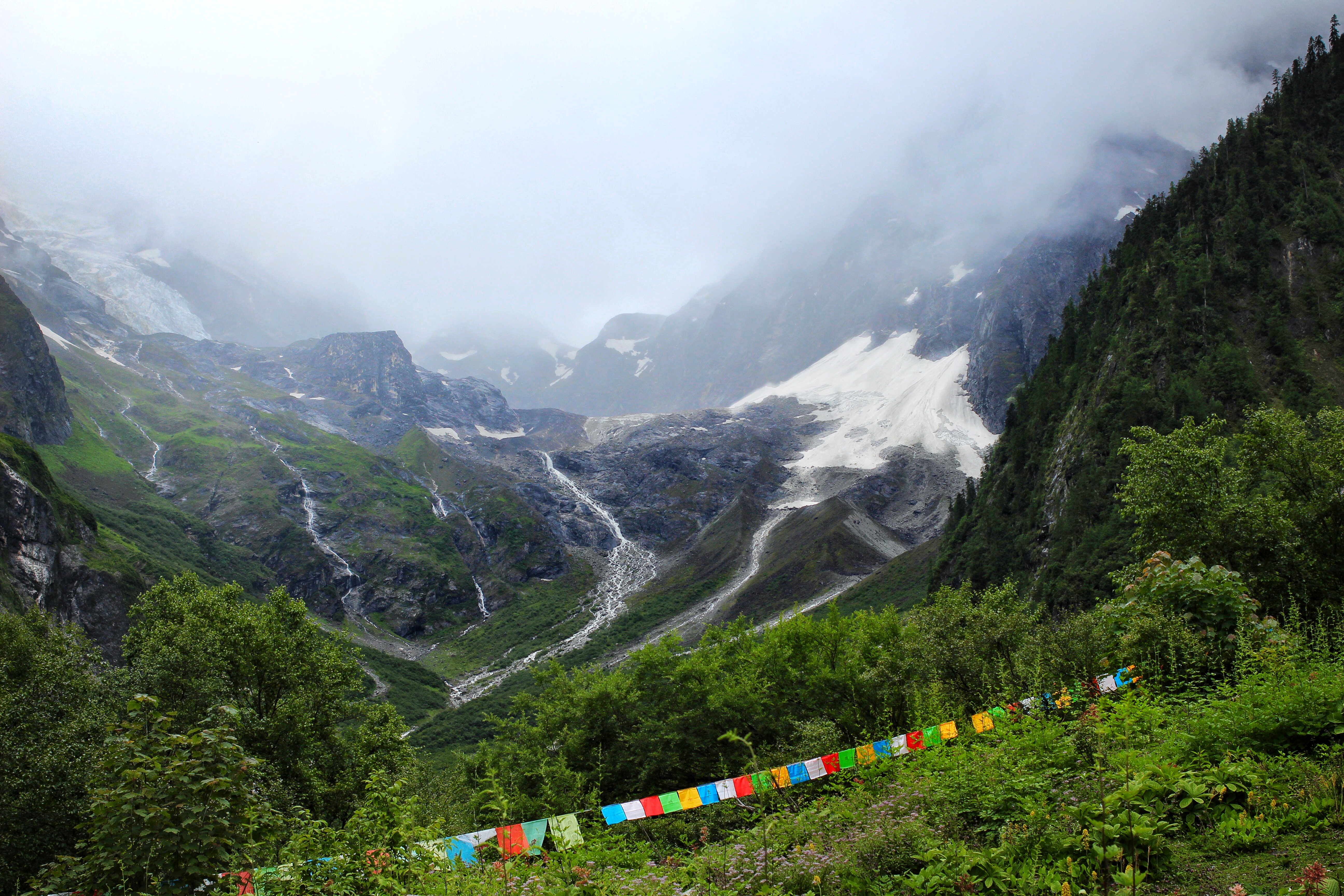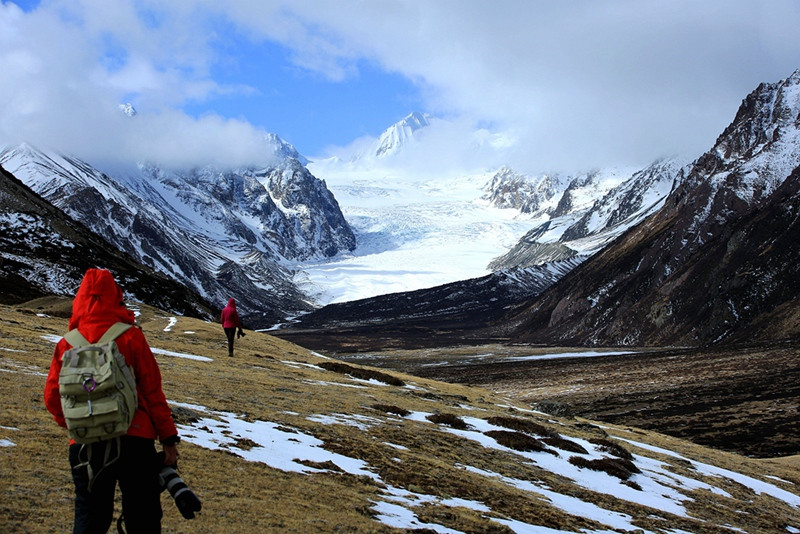 不像“来古冰川”,“米堆冰川”那么被驴友所知,也没有被开发,很少有人知道,需要请当地人载到入口处,徒步经过草甸,溪流来到冰川脚下,和冰川亲密接触。那天我们来回徒步了6个多小时。