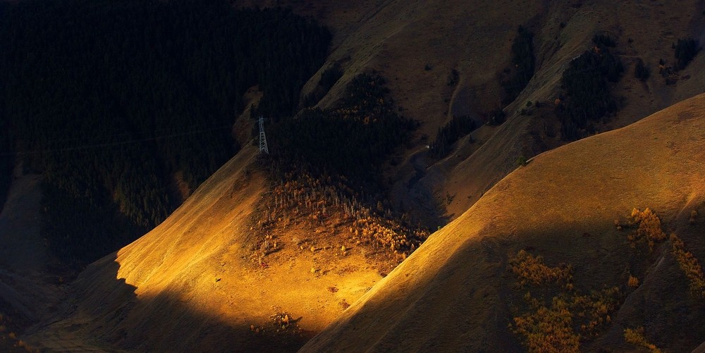晚秋的新都桥,金灿灿的山野,不打折的黄金季节