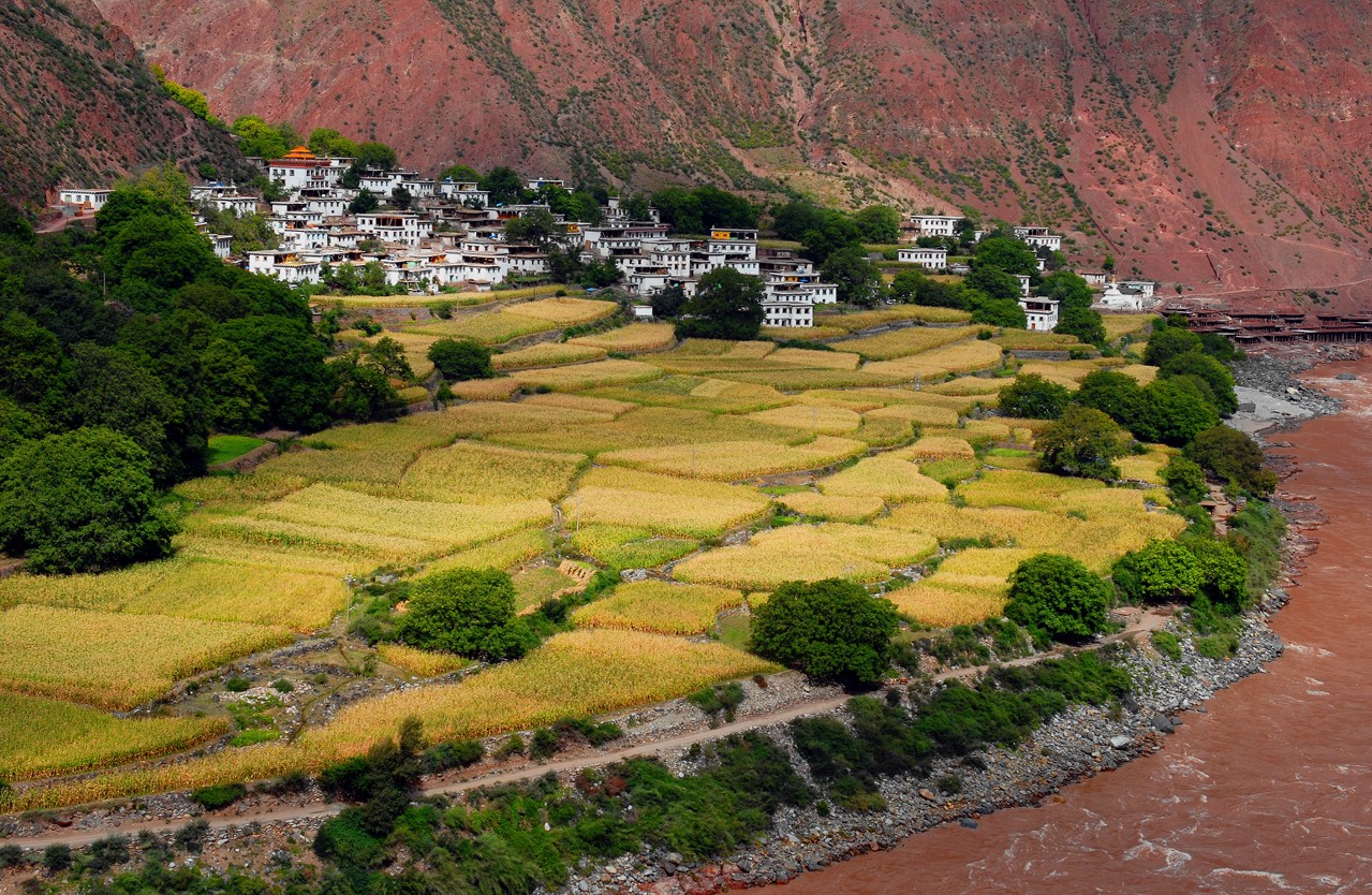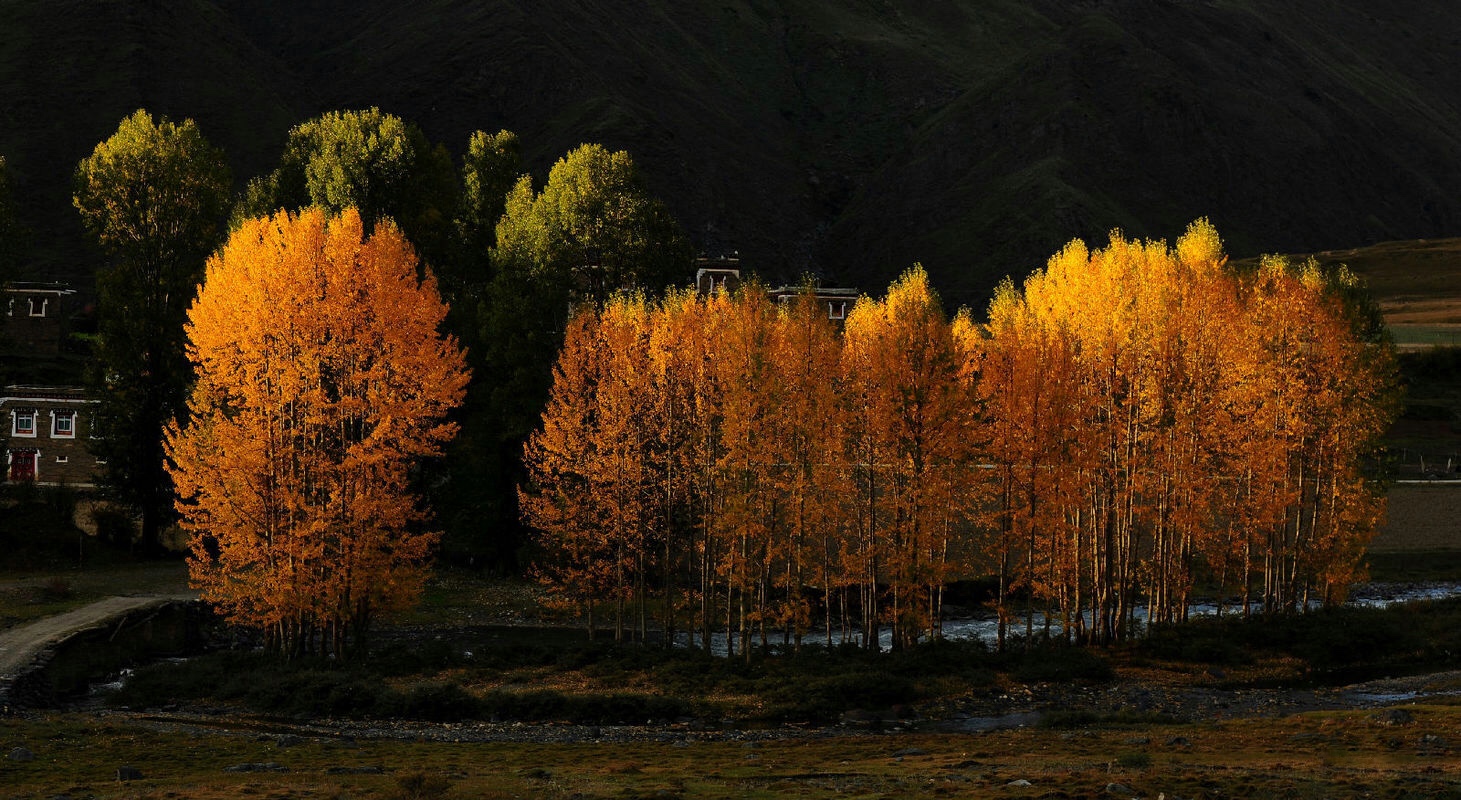沿帕隆藏布一路向西,离然乌镇十千米处有一村名“瓦村”。村里的房屋是典型的藏东南林区建筑,大量采用木材建造,连屋顶都是用木材铺就。晨昏时分,斜射的阳光下黑亮的木屋顶反射着光线,村落里弥漫着浓郁的藏家韵味,是拍摄的好地方。