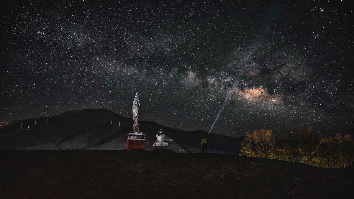 酒意微醺,扑摸打滚,穿着羽绒服拍星空。银白的星空像一丝面纱,铺满了新都桥。