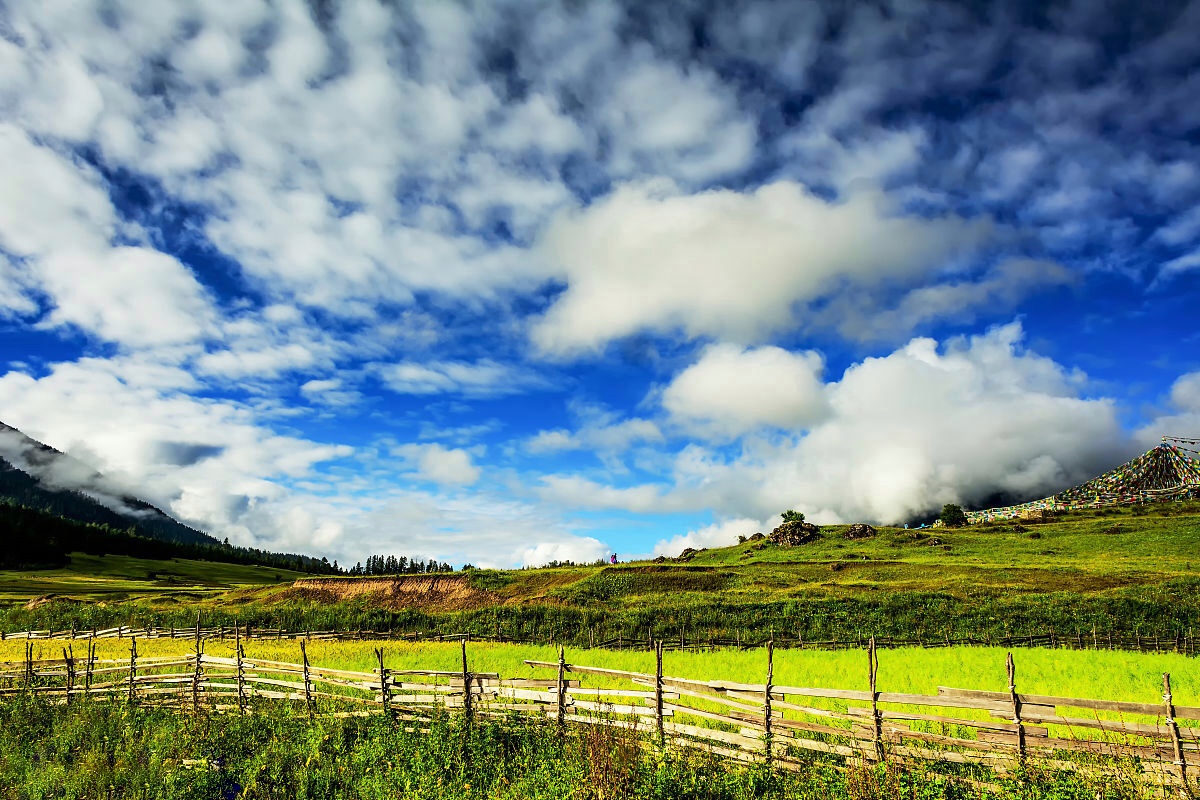 翻越折多山就到了传说中的摄影者天堂——新都桥。新都桥是令人神往的“摄影天堂”,地处在公路318国道南、北线分叉路口,是一片如诗如画的世外桃源。神奇的光线,无垠的草原,弯弯的小溪,金黄的柏杨,山峦连绵起伏,藏寨散落其间,牛羊安详地吃草... ... 川西的平原风光美丽地绽放。这,就是新都桥,令人神往的“光与影的世界”、“摄影家的天堂”。