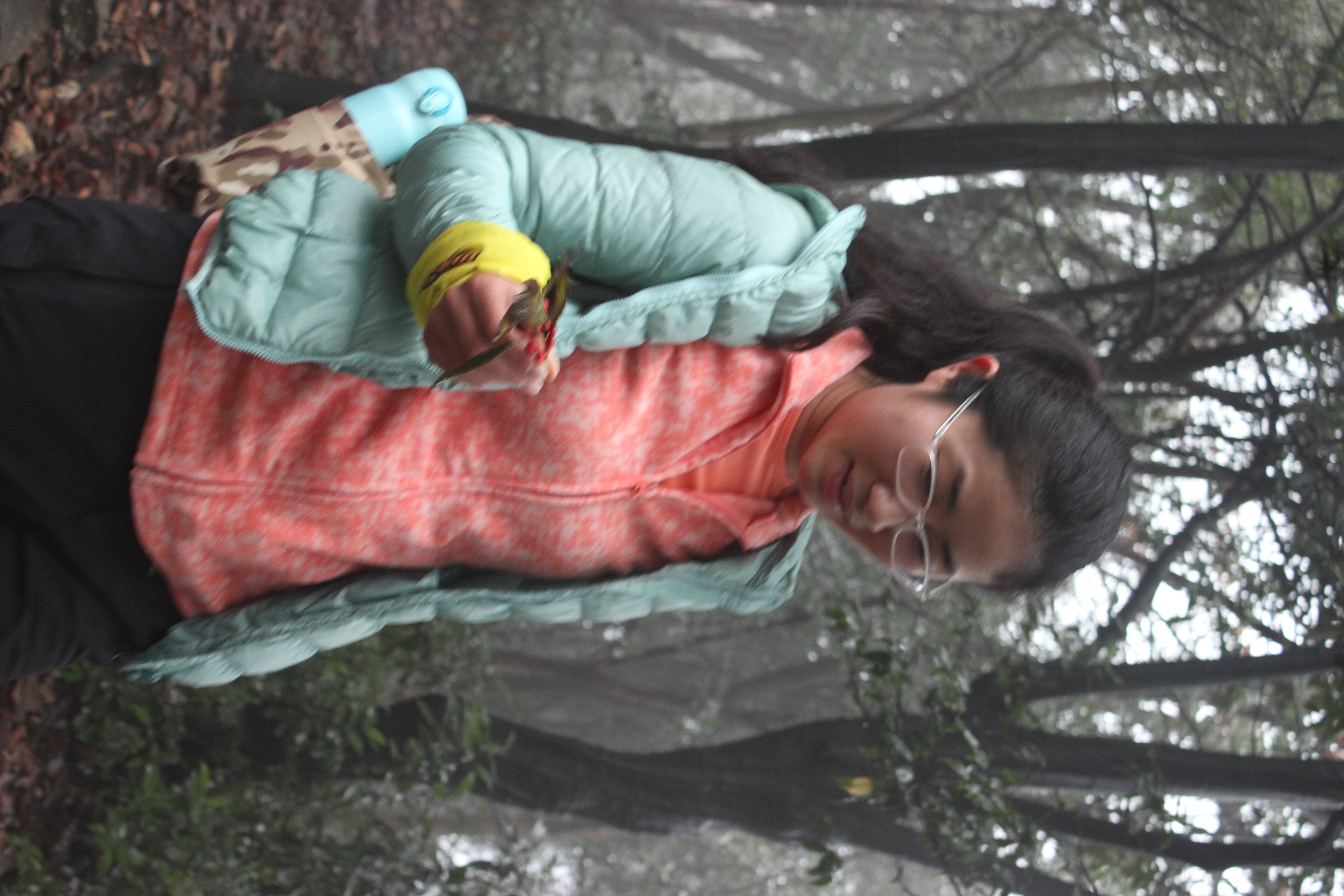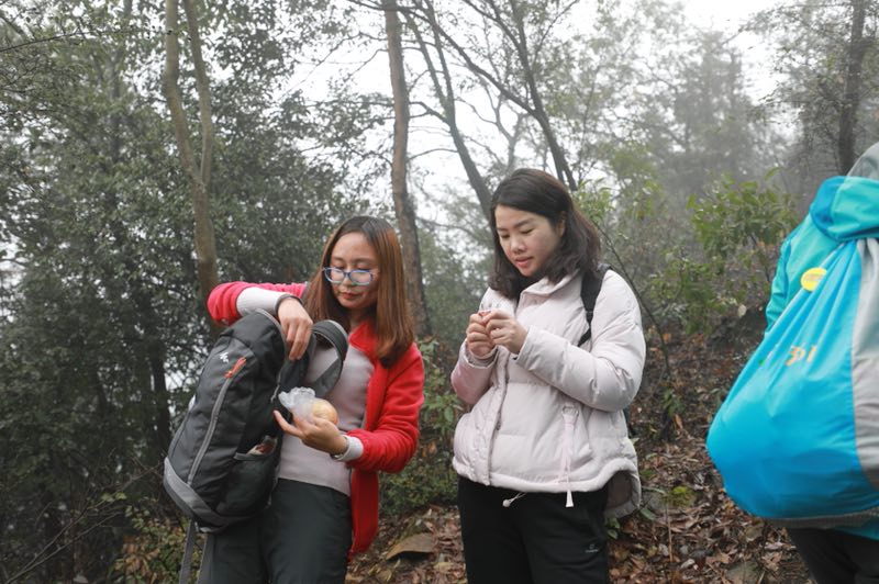 台阶有些许滑,最后姐姐拿了头巾做护膝 还另外借了两天做鞋底摩擦