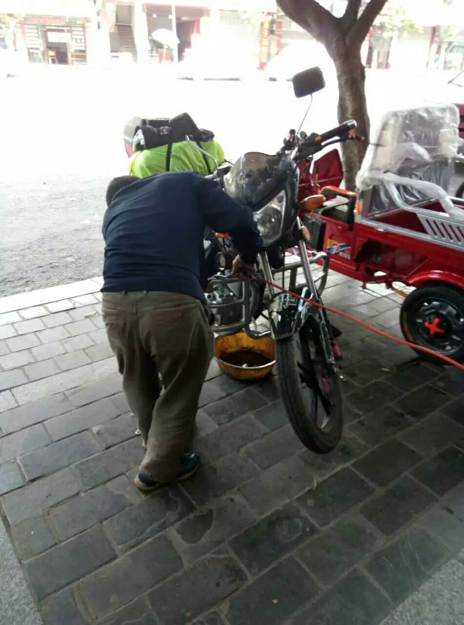 看了一下码表,已经有了2000多的行程了,感觉车也有点问题,加上即将要翻越海拔3000多的泥巴山,便前往一个修理店,换了一下机油(远程,最重要的就是机油,关系到机车的寿命),仔细检查一番,出发。