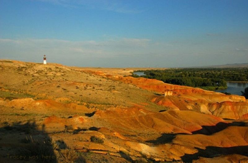 五彩湾:五彩湾并不仅仅是一个地方,它被人们泛指在东准葛尔一片彩色斑斓的风蚀地~有著名的五彩城,火烧山,白天红的,黄的,白色的土地滩,山头,傍晚的落霞加上艳红的石头土地,构成美丽的花卷,我让司机小肖给我们照了很多美丽的艺术照