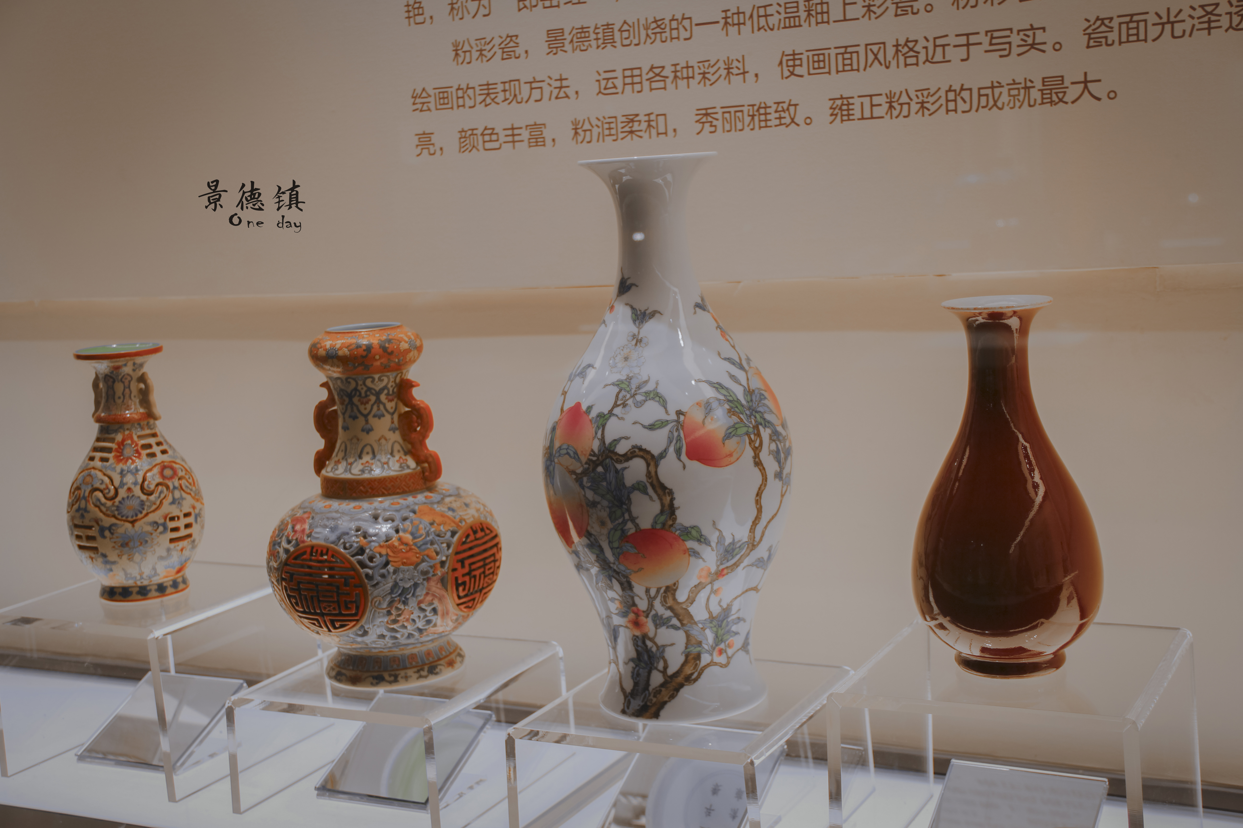 瓷器博物馆,记录了历史上瓷器的发展与不同样式。中国的四大名瓷为:青花瓷、玲珑瓷、粉彩瓷、颜色釉瓷。景德镇的瓷器有青花、釉里红、古彩、粉彩、斗彩、新彩、釉下五彩、青花玲珑等,其中尤以青花、粉彩产品为大宗,颜色釉为名产。这里所烧制的瓷器多为生活用瓷和陈设用瓷,以自瓷为著,素有“白如玉,明如镜,薄如纸,声如磐”之称。
