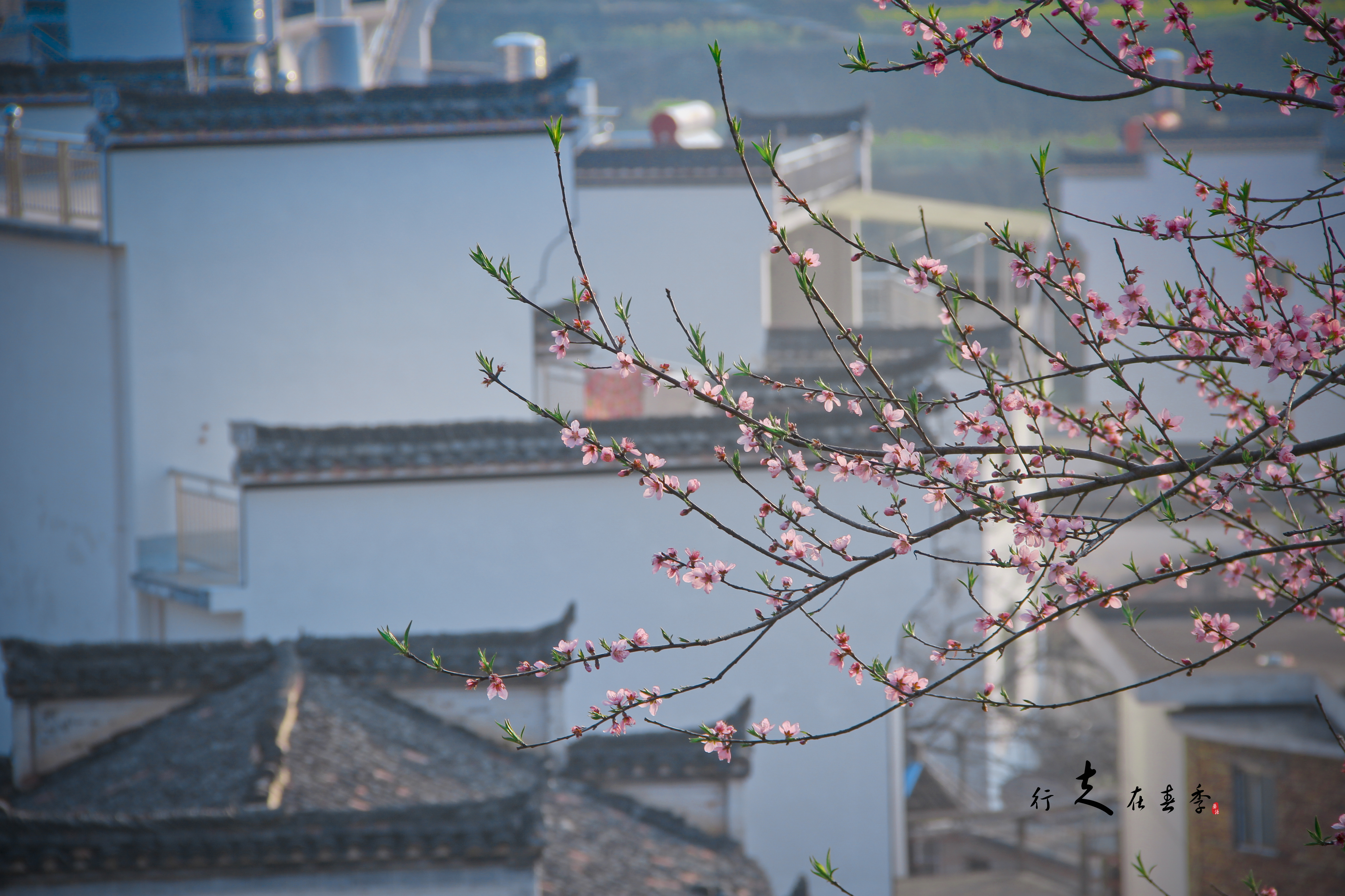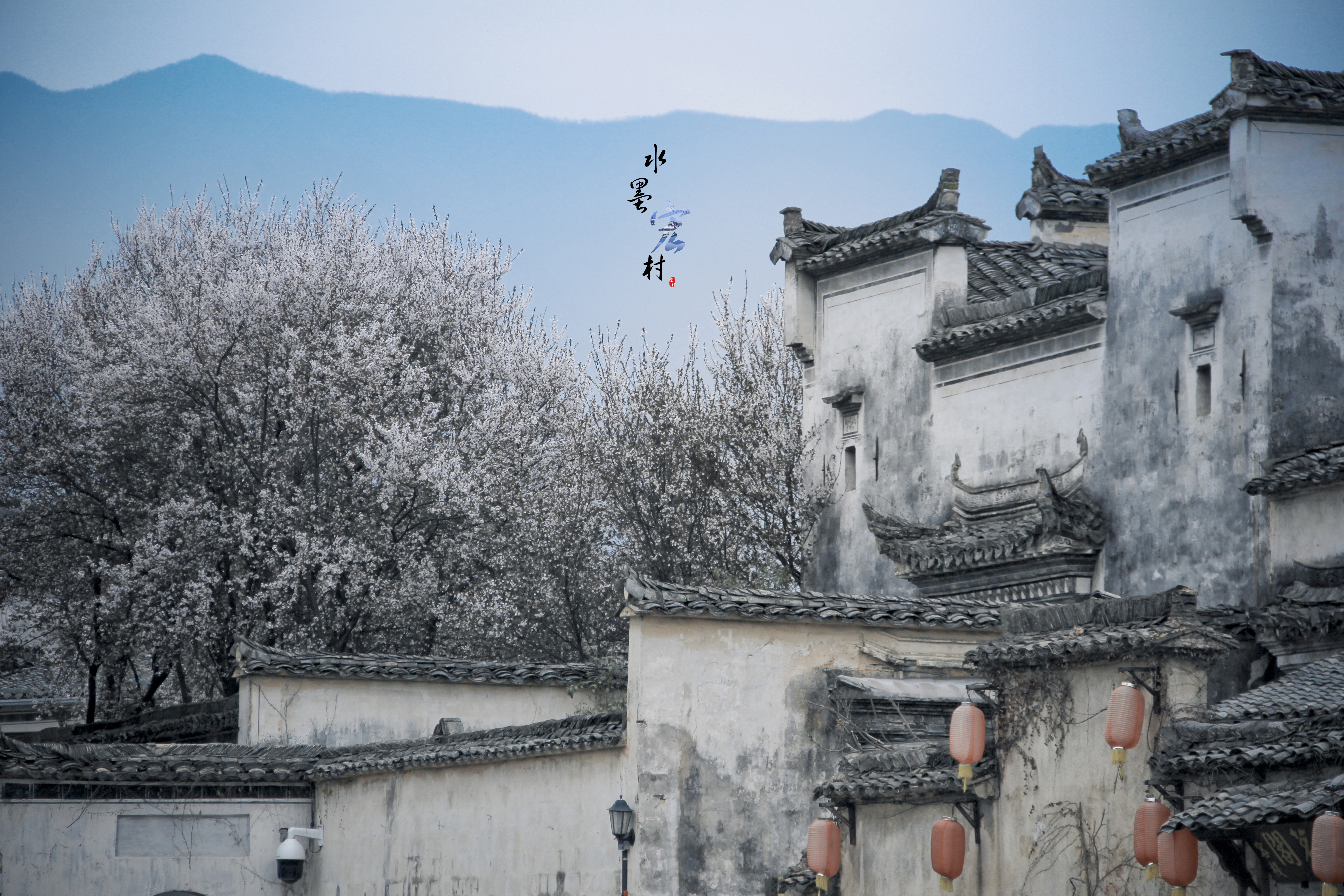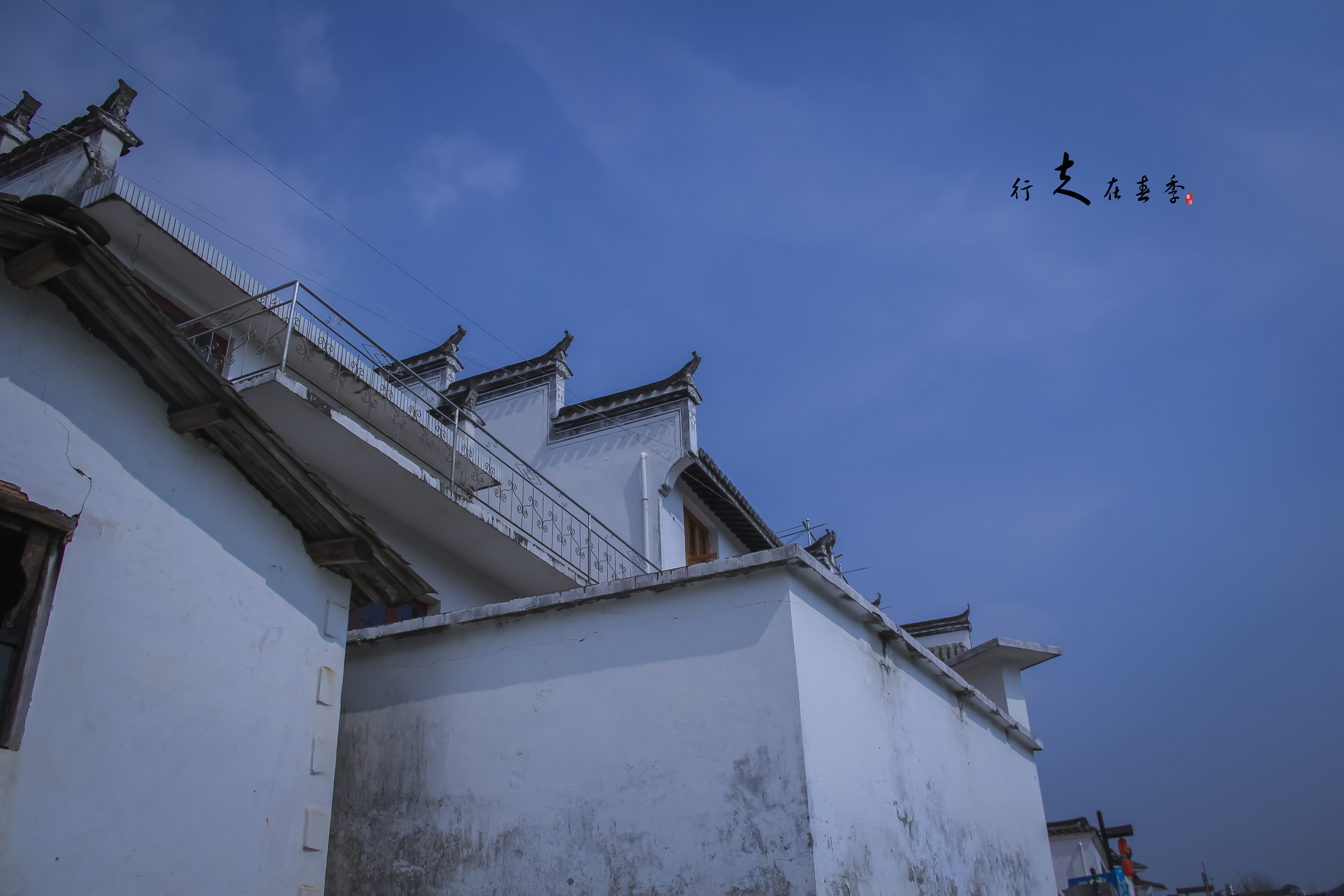 拍完汪口的全景后继续前行,下一站江湾。江湾,最出名的便是其徽派建筑。清一色的白墙黑瓦,有皖南特色的飞檐与村中盛开的梨花树相得益彰。