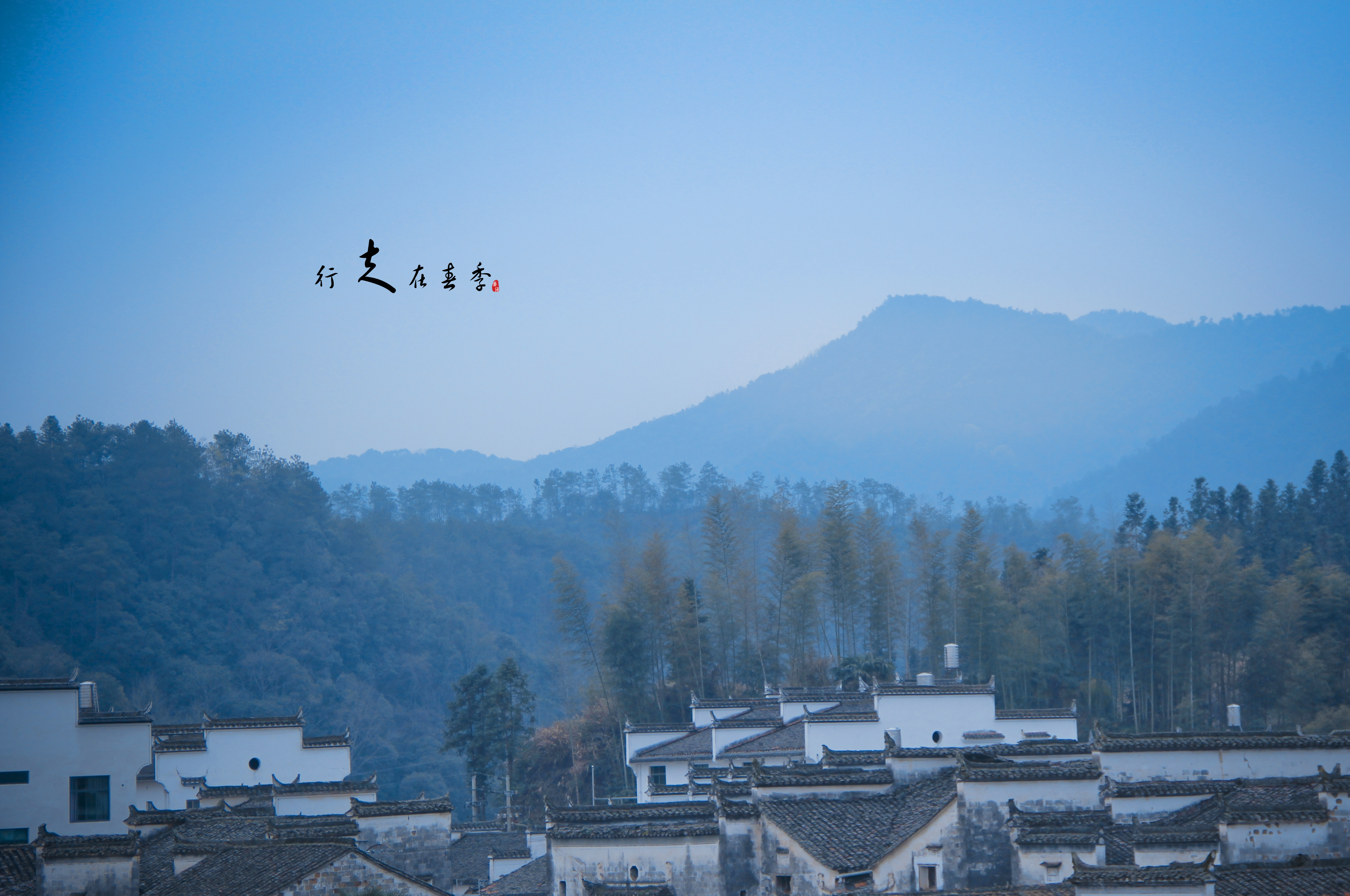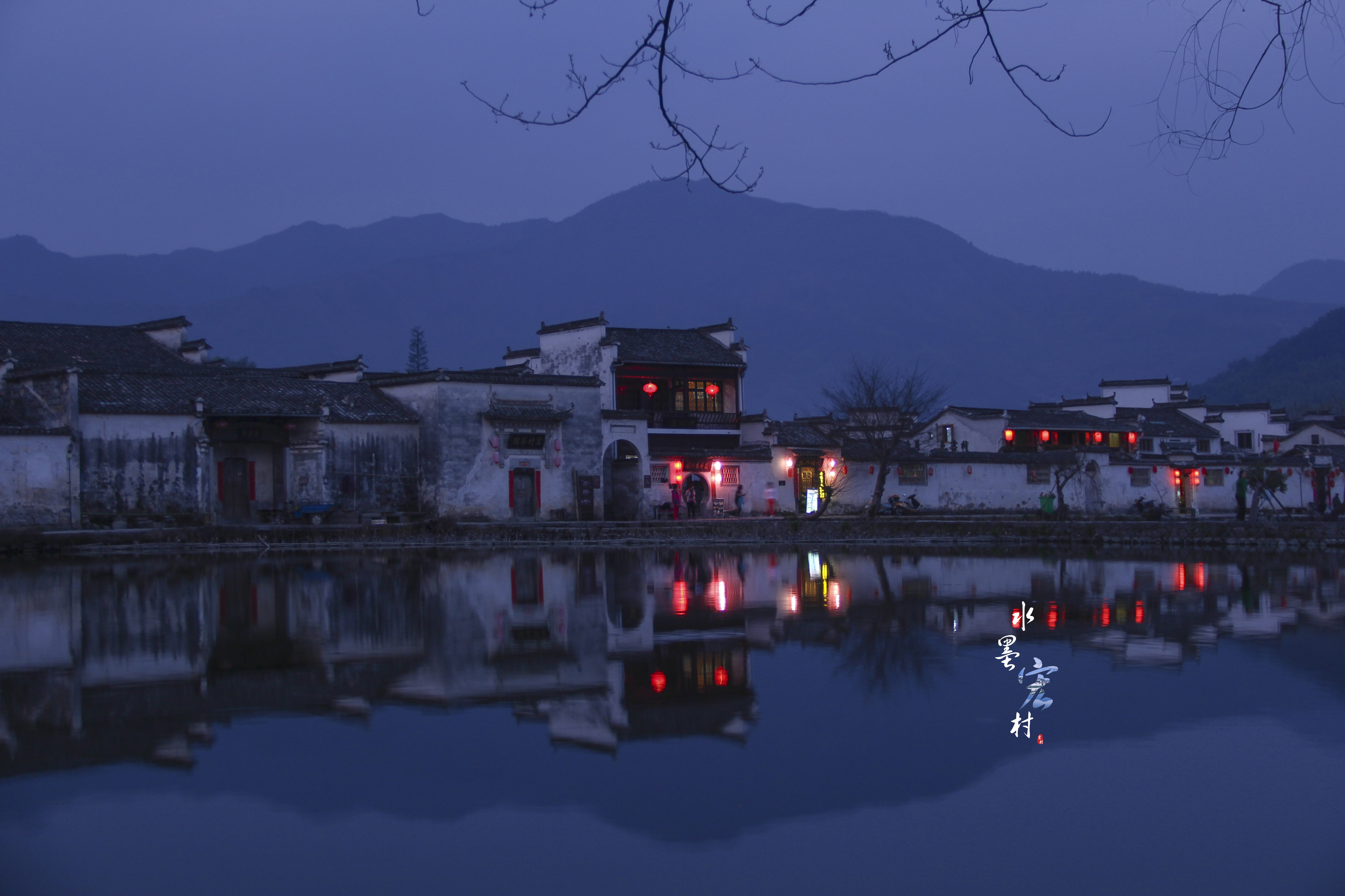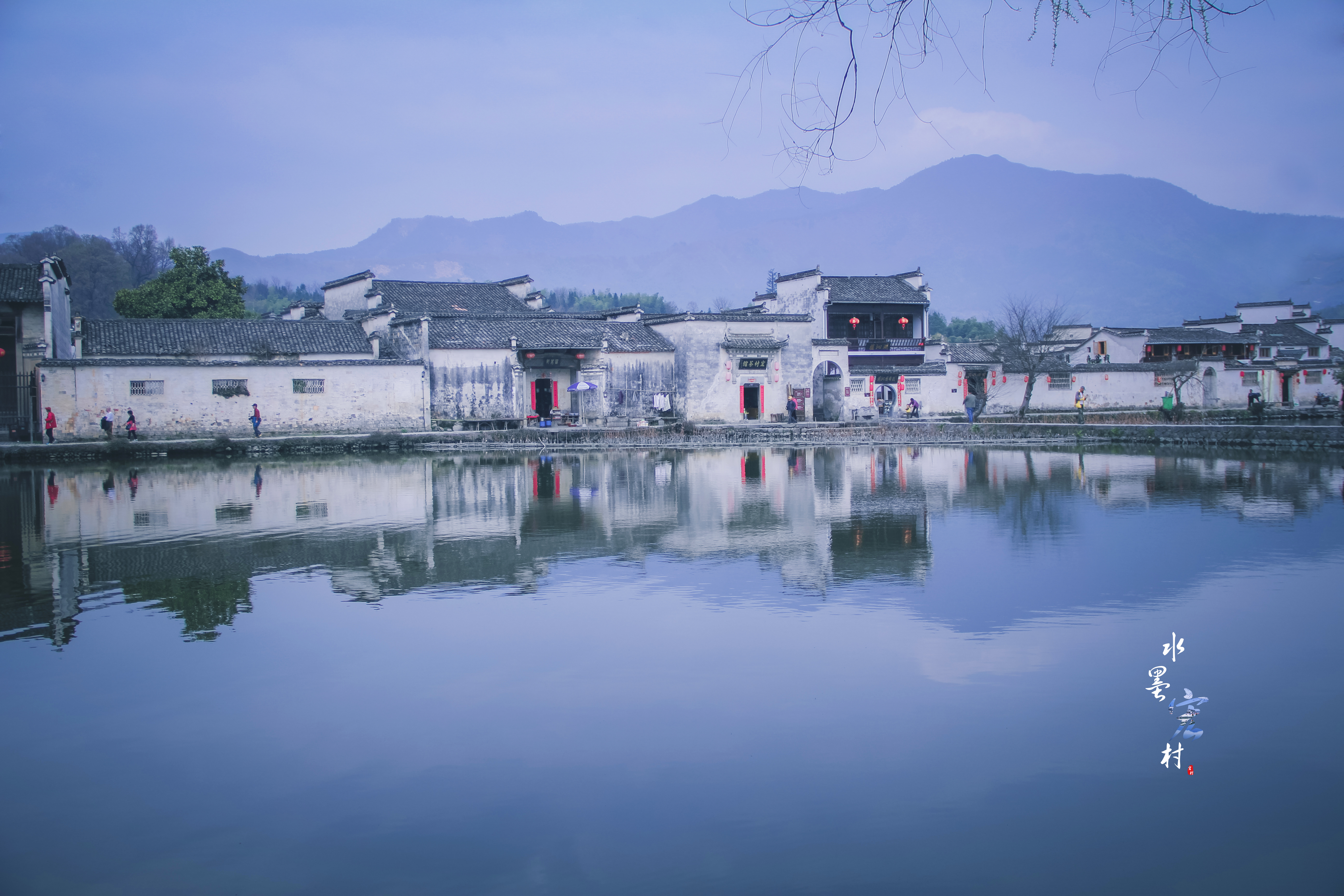几笔浓重的蓝色,再涂上白色,点缀几笔红与黑,便成这水墨宏村。