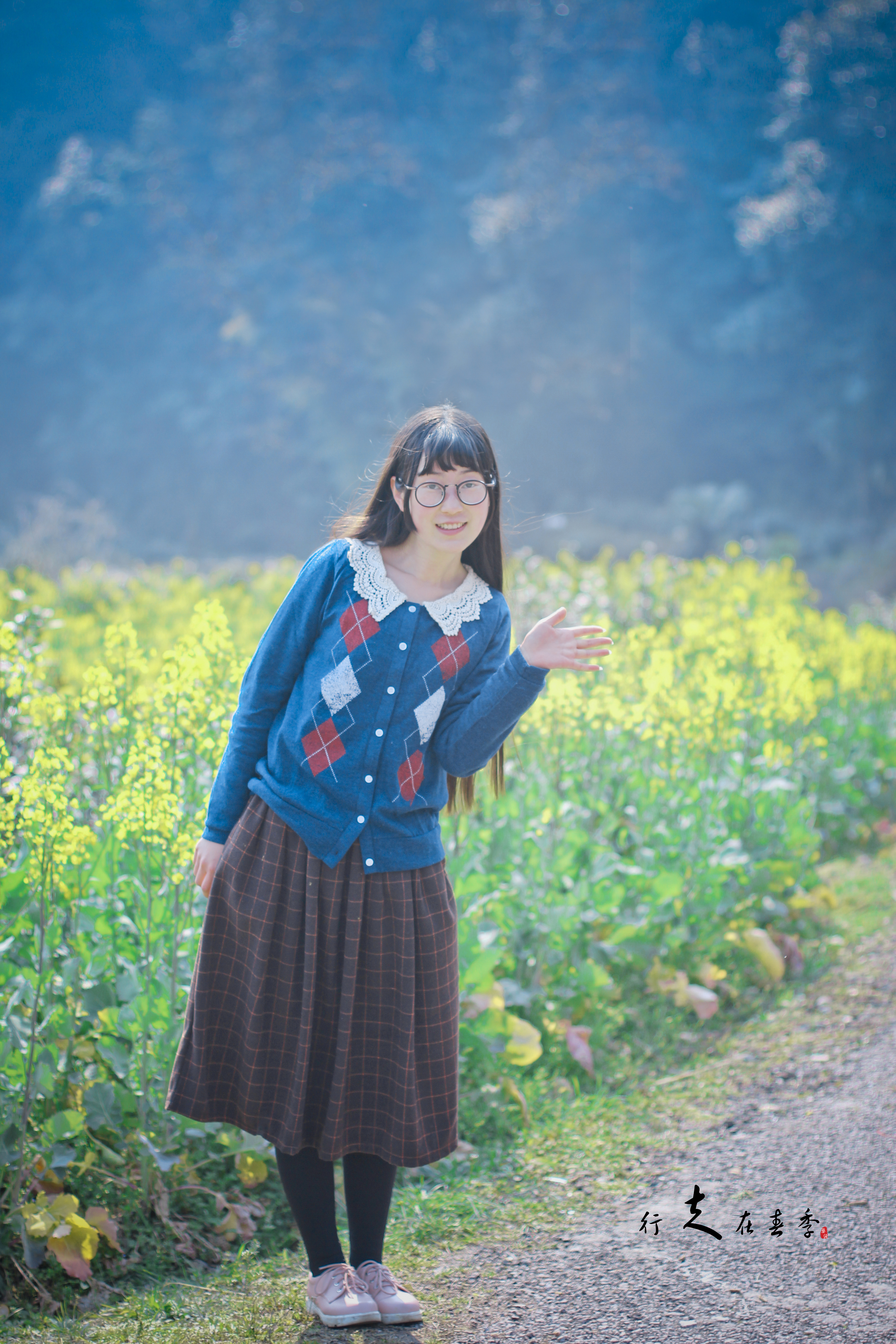 一路都是金黄的油菜花绽放。两个人心花怒放的走着。