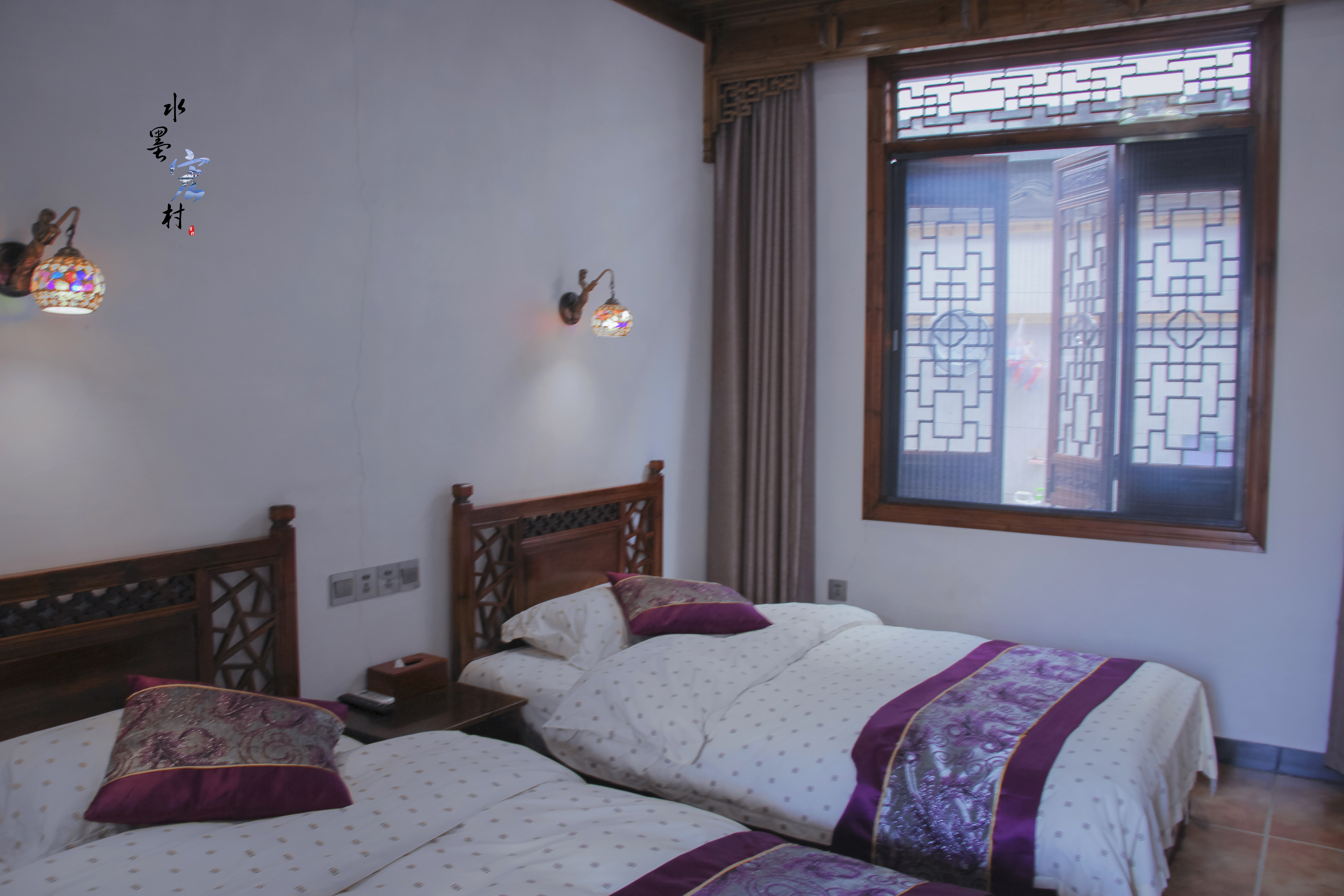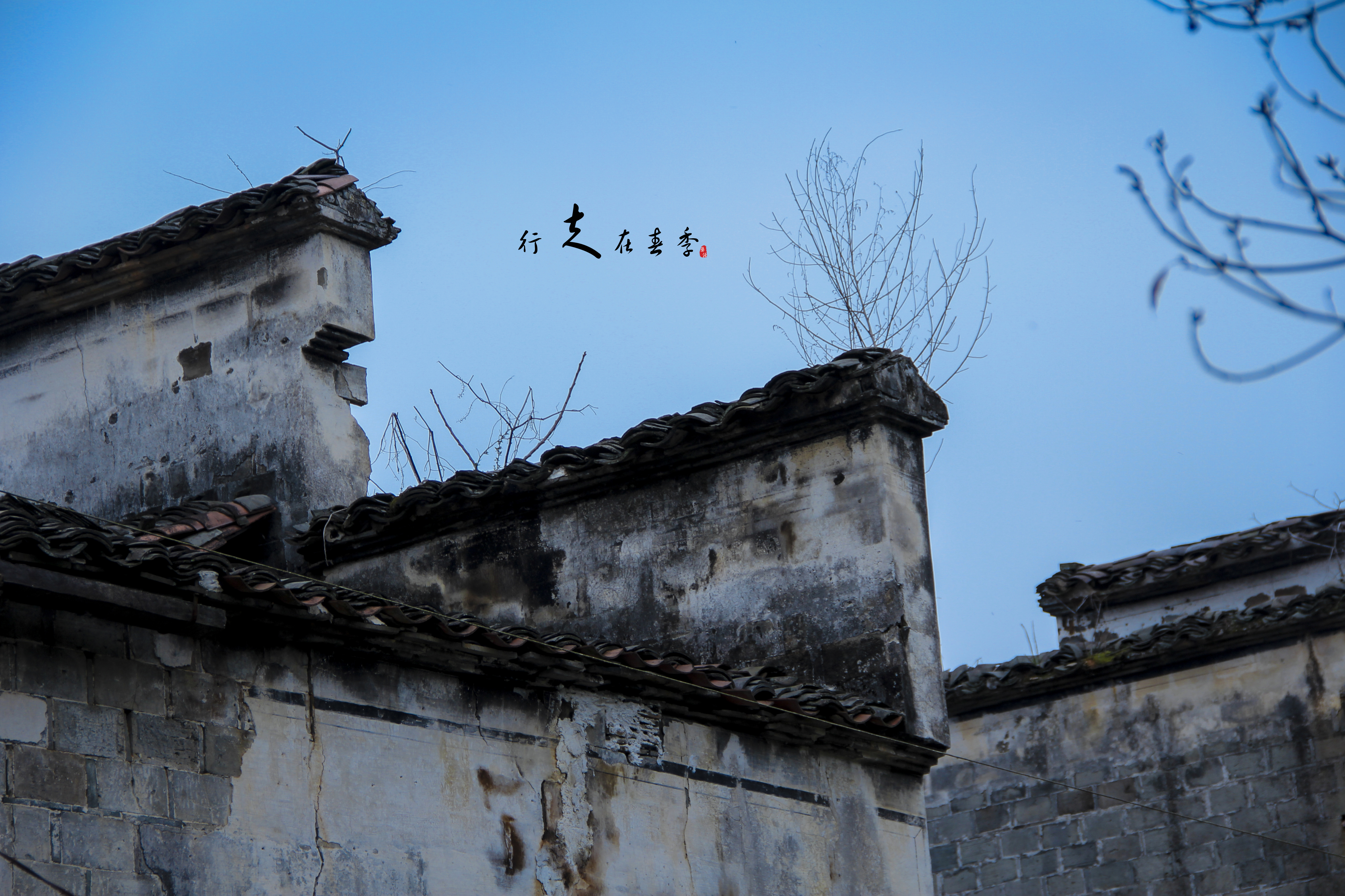 不若仿古建筑的精致,这里的一切都是古朴自然的,正所谓天然去雕饰。走近看那白墙上早已因多年的风吹雨打而泛黄发黑,但正是这样,却好像更能够融入这山水之间。