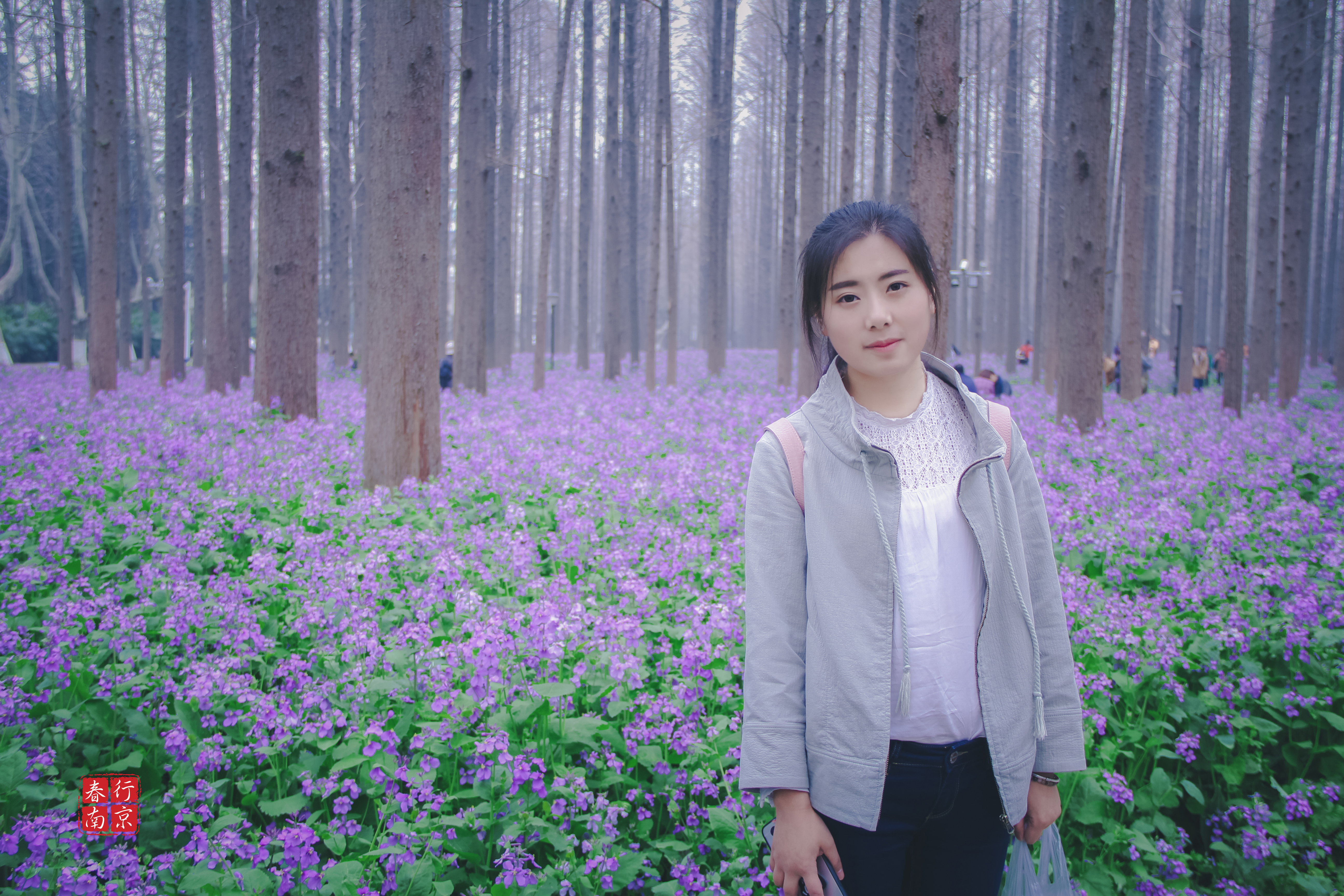 花丛中种满了杉树,只是还未发芽长叶,后来看到过一张杉树抽绿,二月兰如紫海的照片,这一切在阳光的照耀下煜煜生辉。若有机会,希望还能再来,卡到阳光中的紫海。