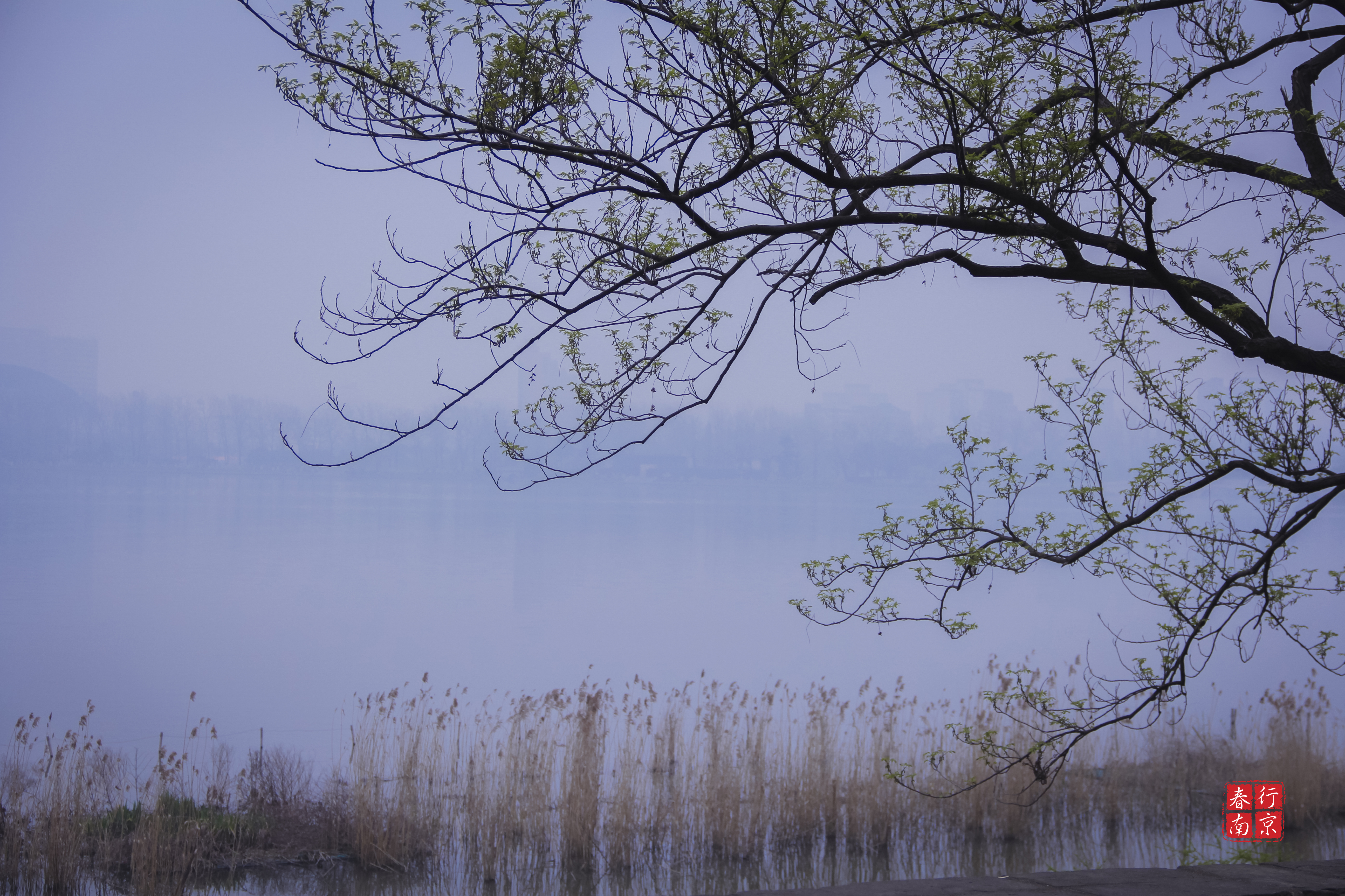 茫茫的玄武湖,远方的一切并不那么清晰,突然爱上了这样的朦胧美,近处新发枝芽的树、芦苇、飞鸟,如同一幅信手拈来的丹青画。