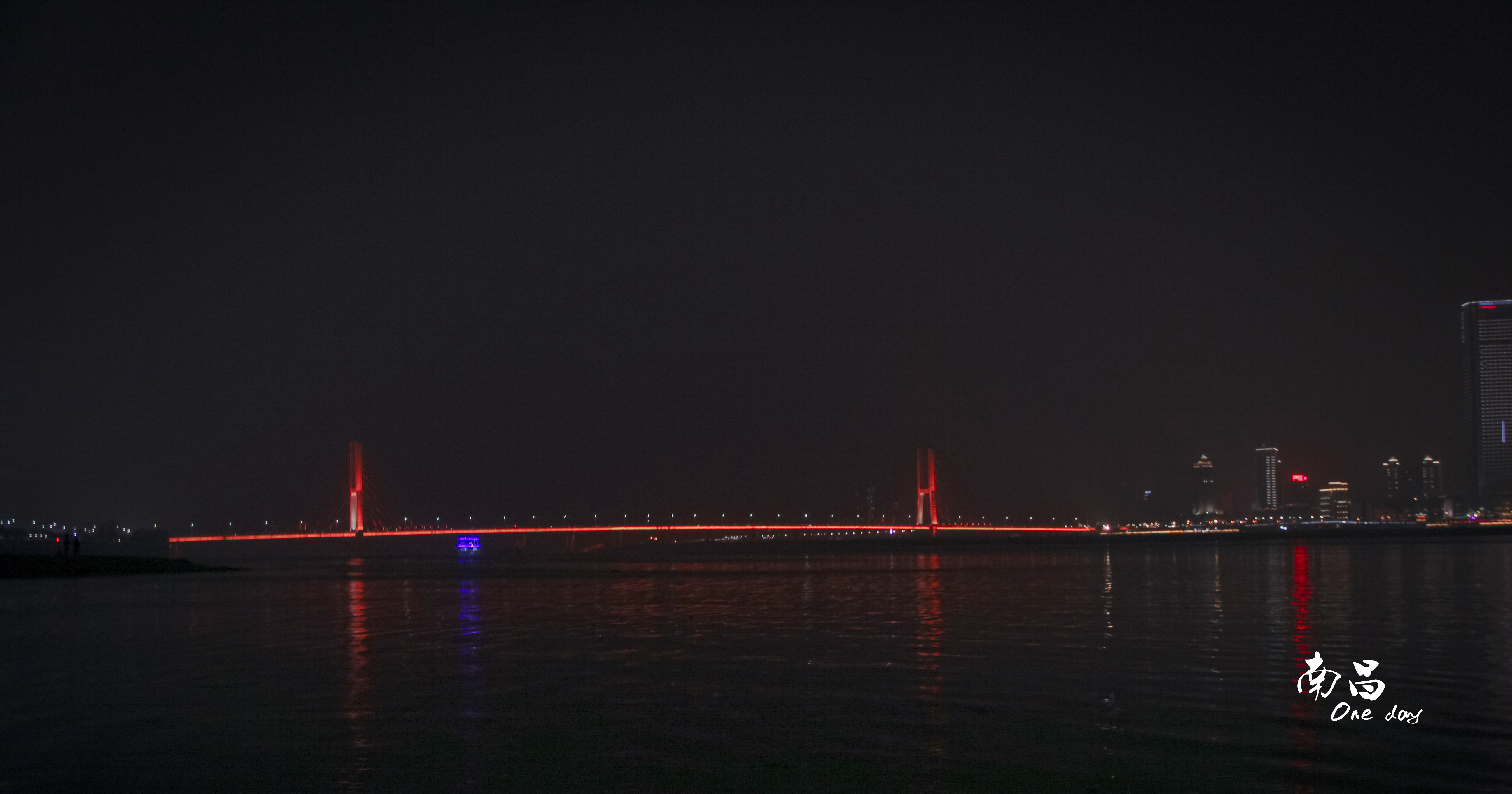 在秋水广场的美食街吃过饭后,散步至赣江边,隔岸相望的是滕王阁。“秋水广场”也正是因王博一句“秋水共长天一色”而得名。在江边的沙滩上,是散步的人群,是聚在一起唱歌的青年,是卖着好看的夜灯的商贩。并不很吵闹,断断续续有歌声传来,春分的夜还残留着凉意。夜渐深,灯光阑珊,信步返回。